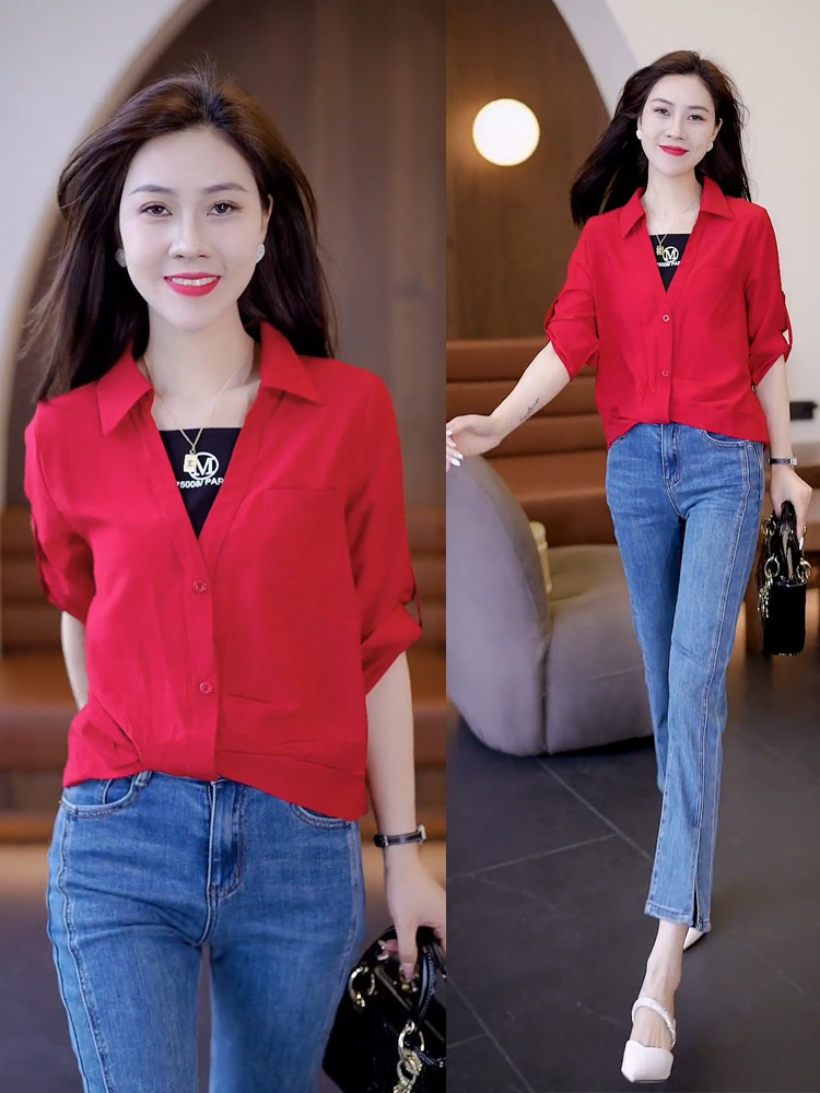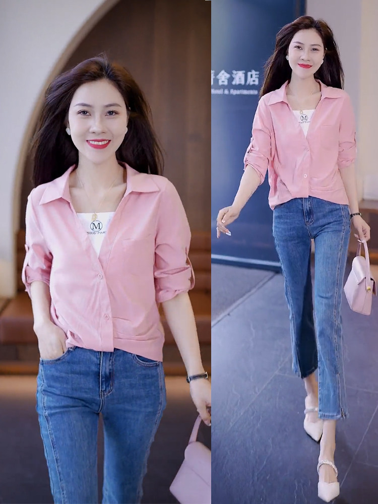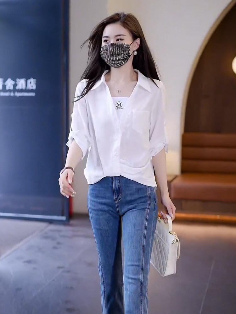 Fake Two-Piece White Shirt for Women, New Spring Design, Sun-Protective Shirt, Loose Fit, Tummy-Covering, Slimming Top for Spring and Autumn