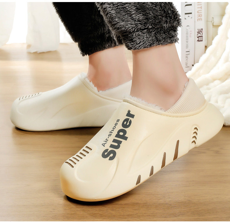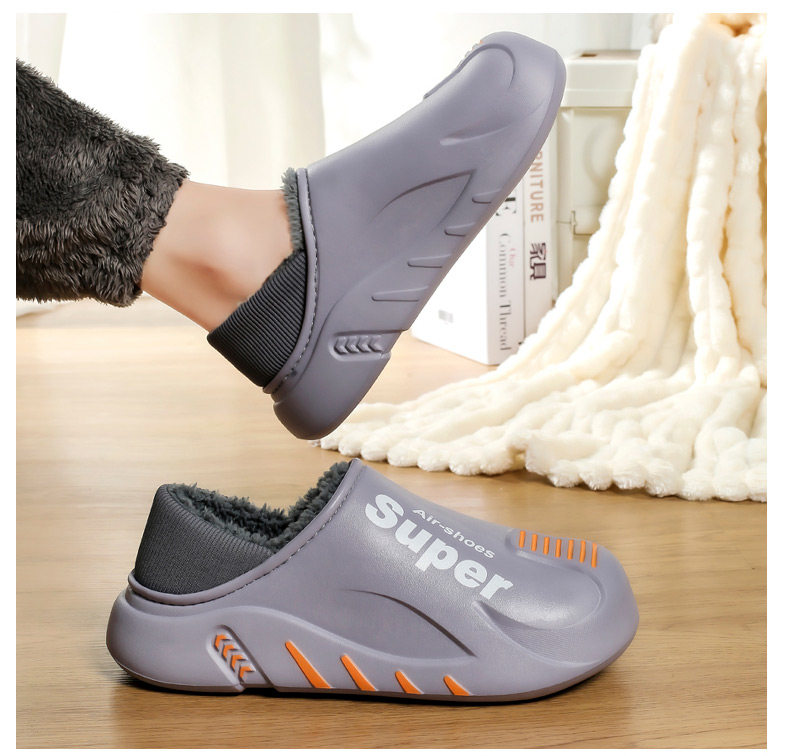 Men's Cotton Slippers for Winter, with Added Fleece for Warmth, Indoor Home Slippers with Closed Heel, Waterproof, Non-Slip, Thick-Soled, Super Soft Slippers