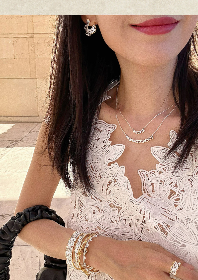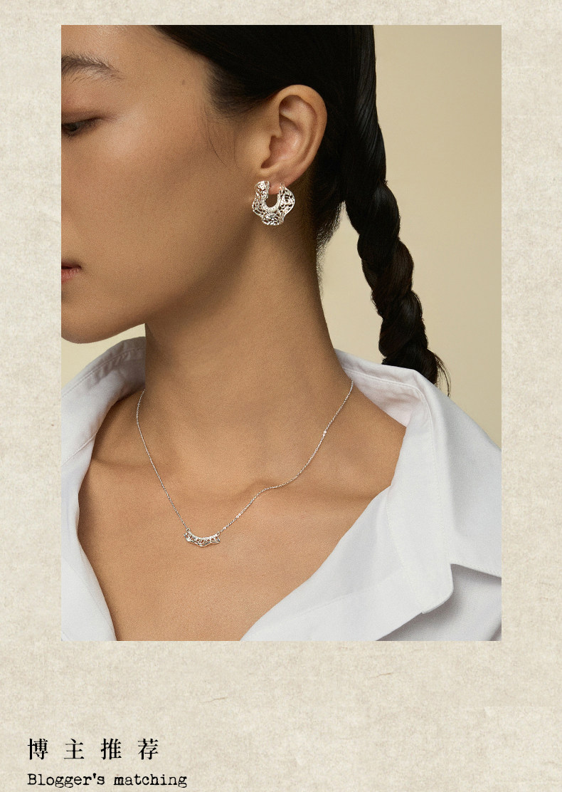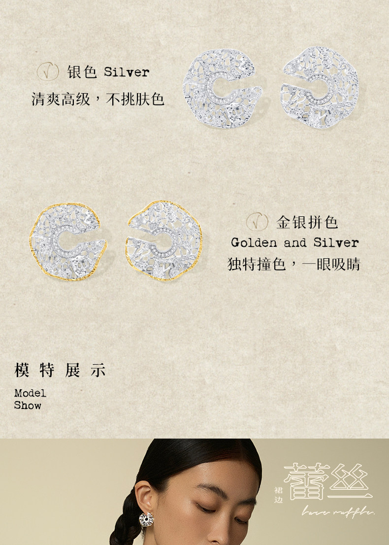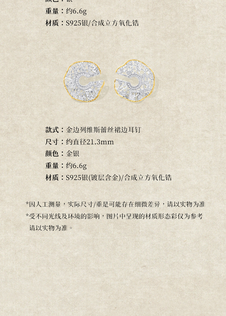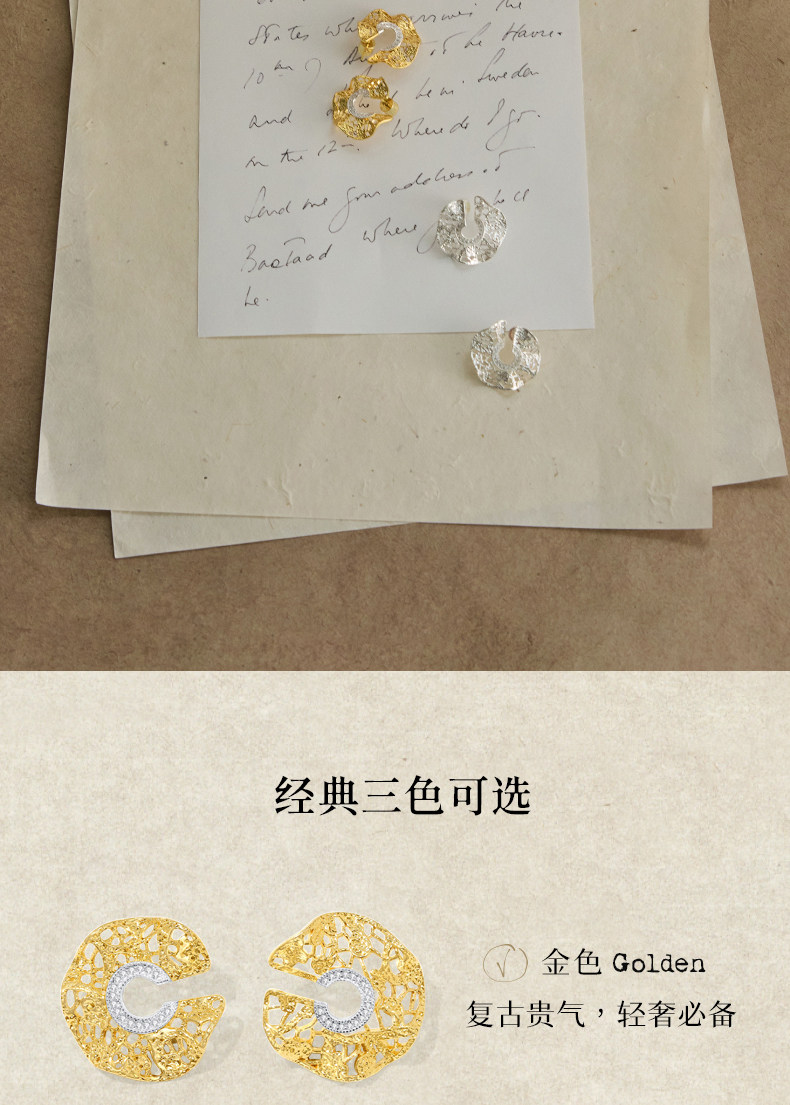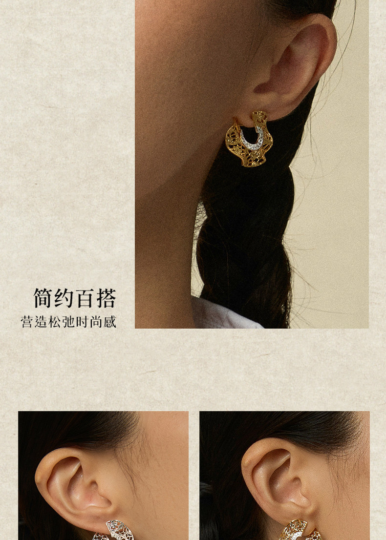 Ooak Levi's Lace Trim Series High-End Niche Lace Earrings Hollow Vintage S925 Silver Plated with Gold