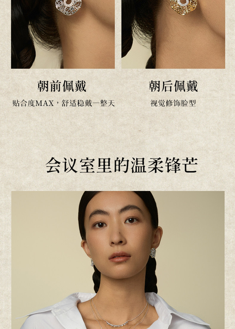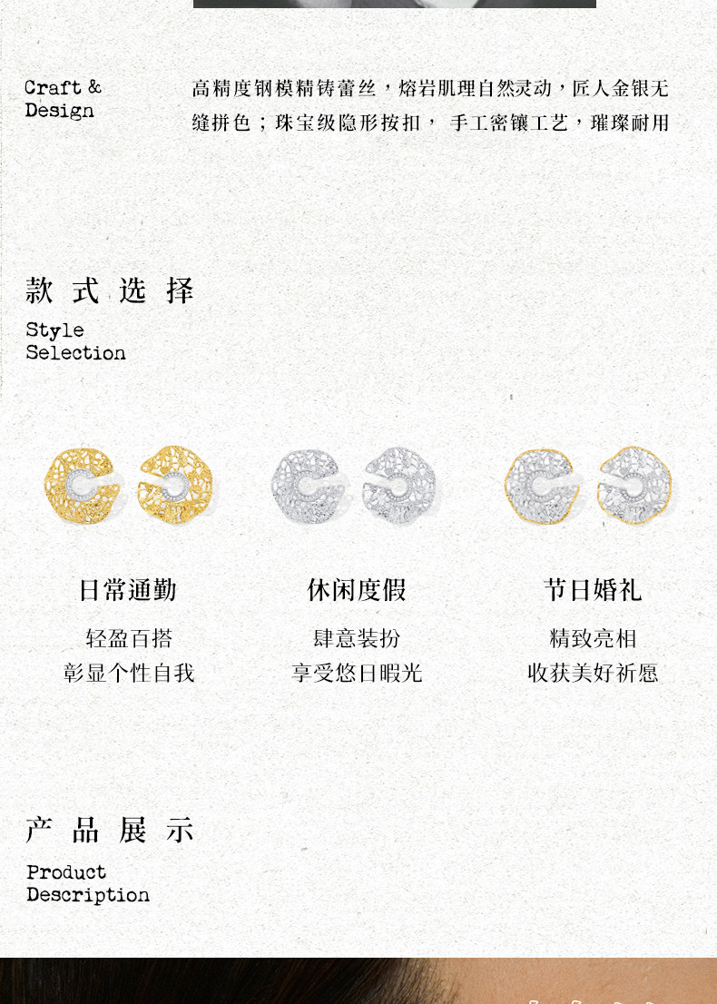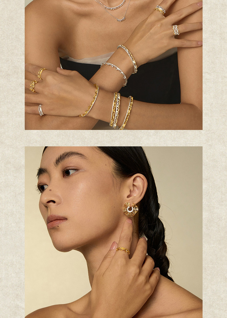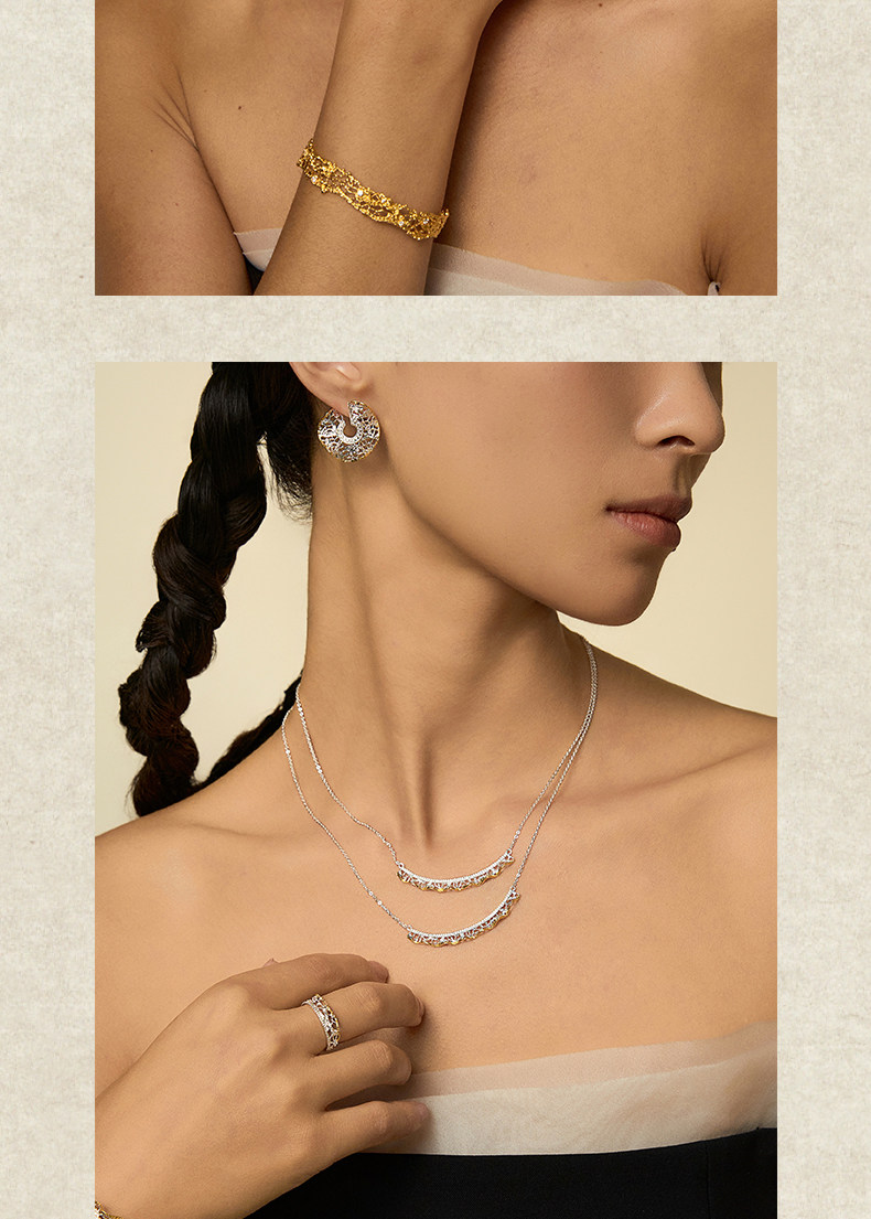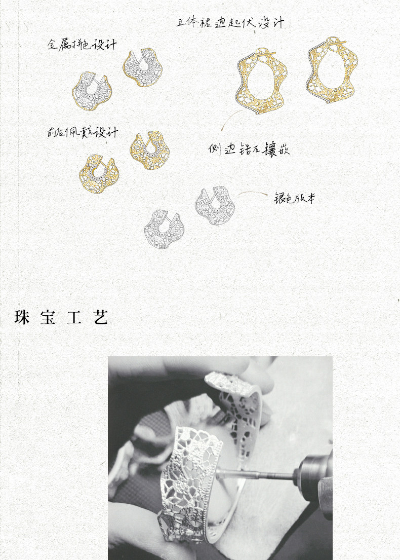 Ooak Levi's Lace Trim Series High-End Niche Lace Earrings Hollow Vintage S925 Silver Plated with Gold