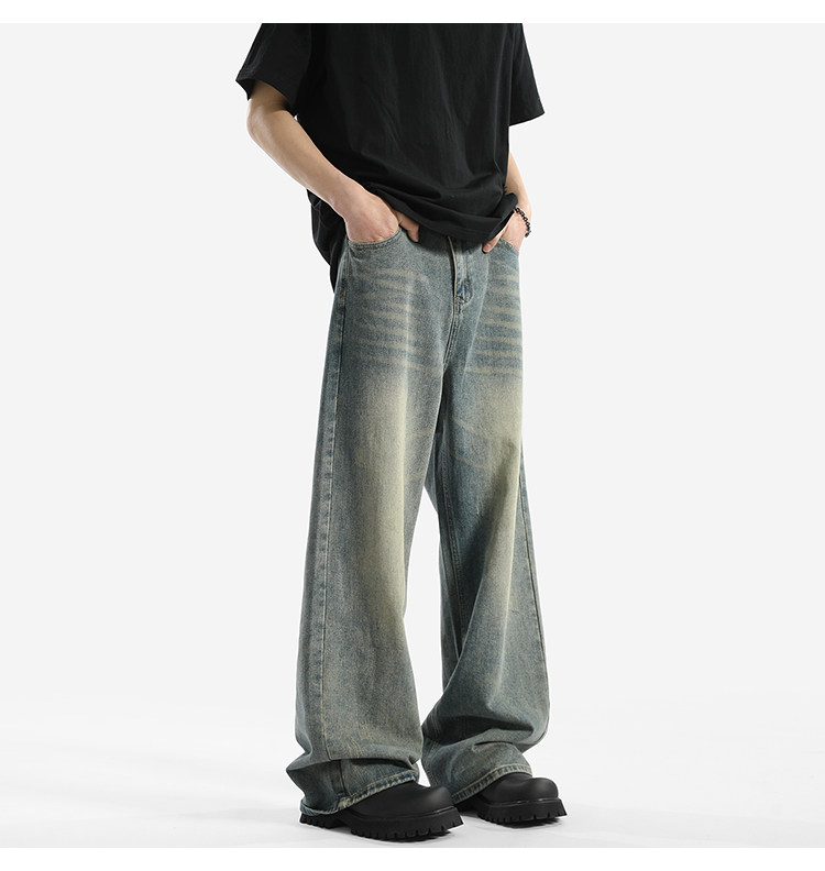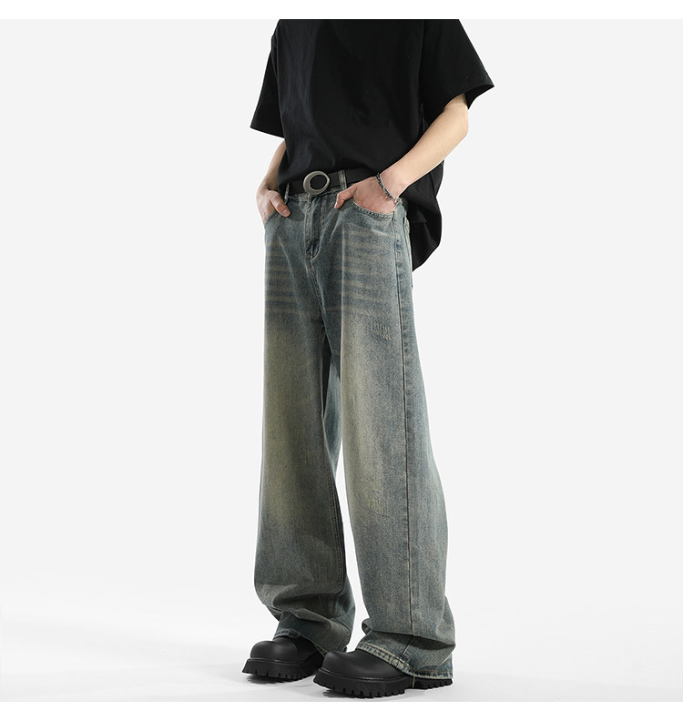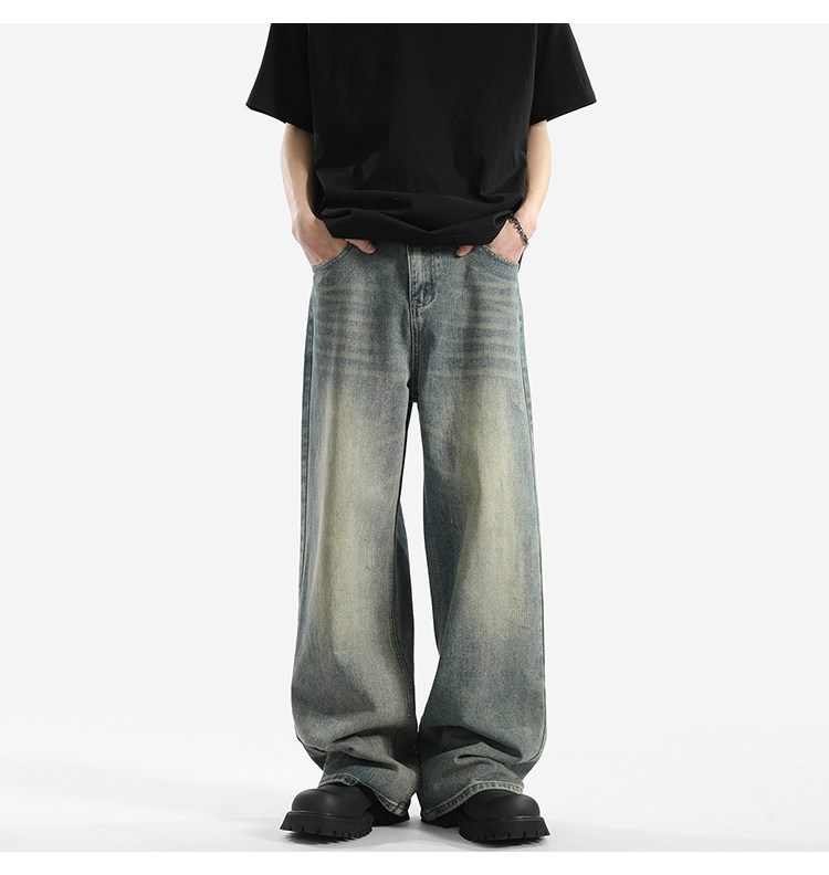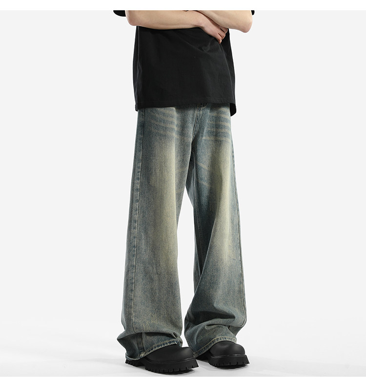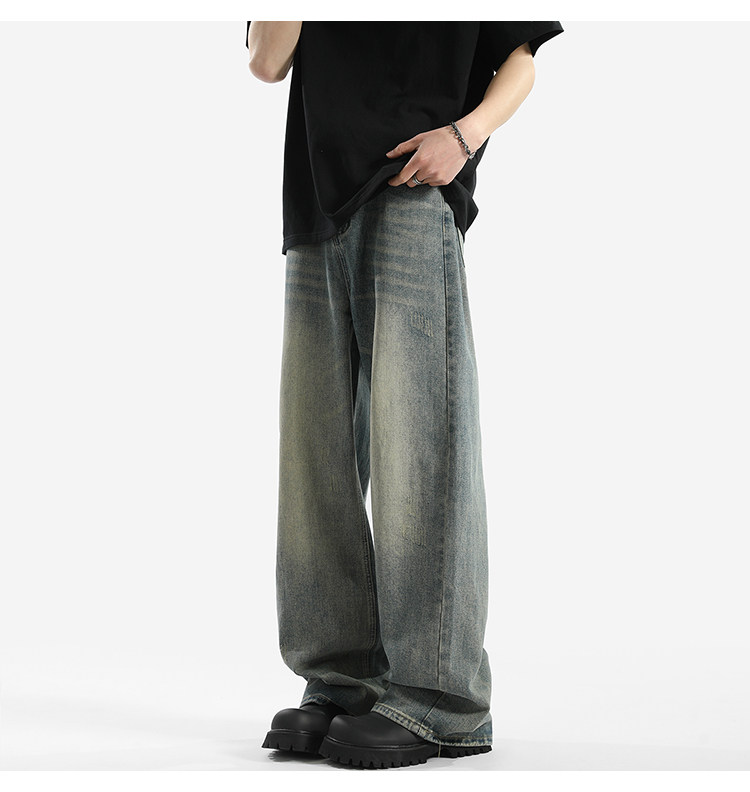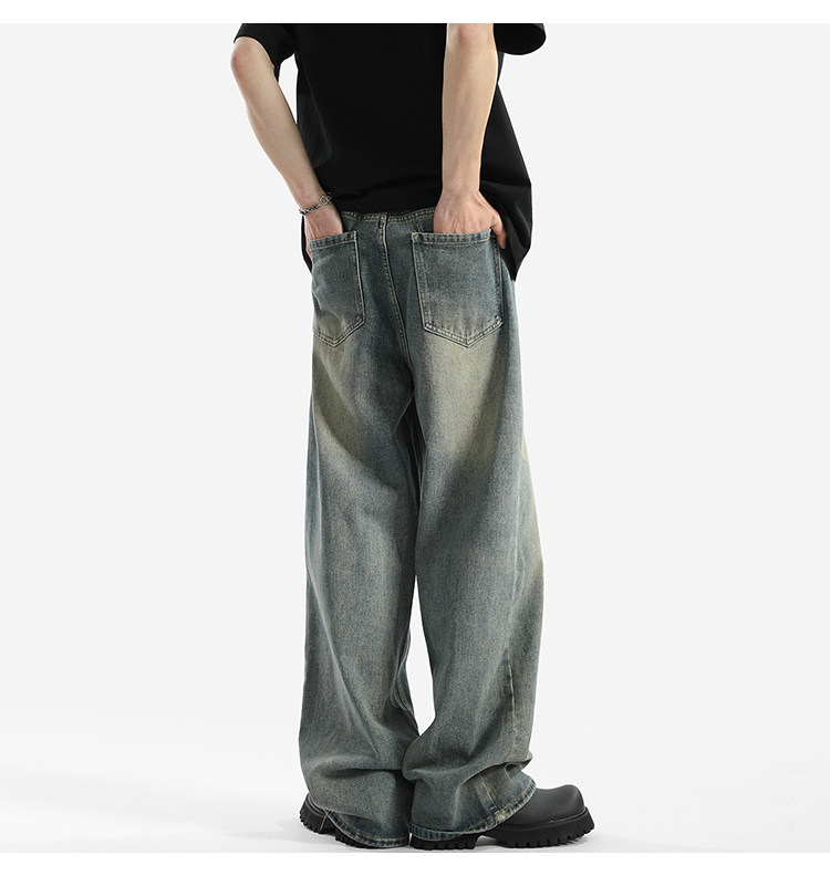 Blry American Retro Washed Drape Jeans for Men, Spring and Summer Trendy Brand Loose Long Pants, Straight-Leg Drape Wide-Leg Pants