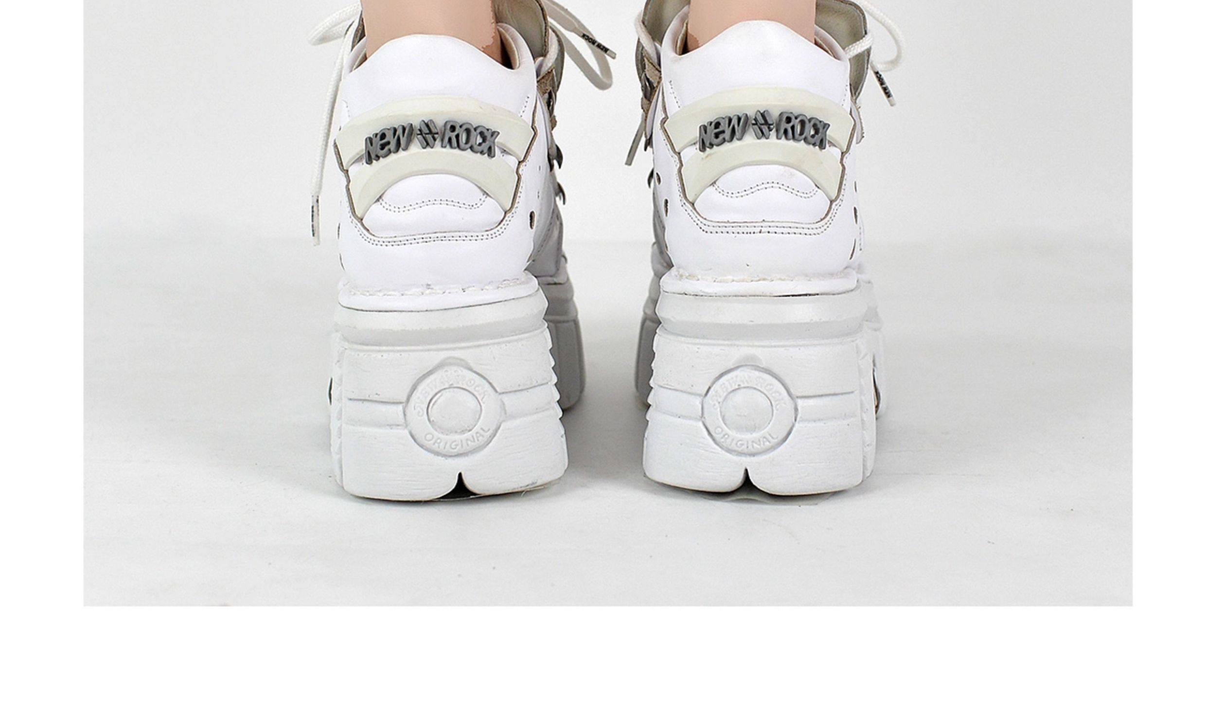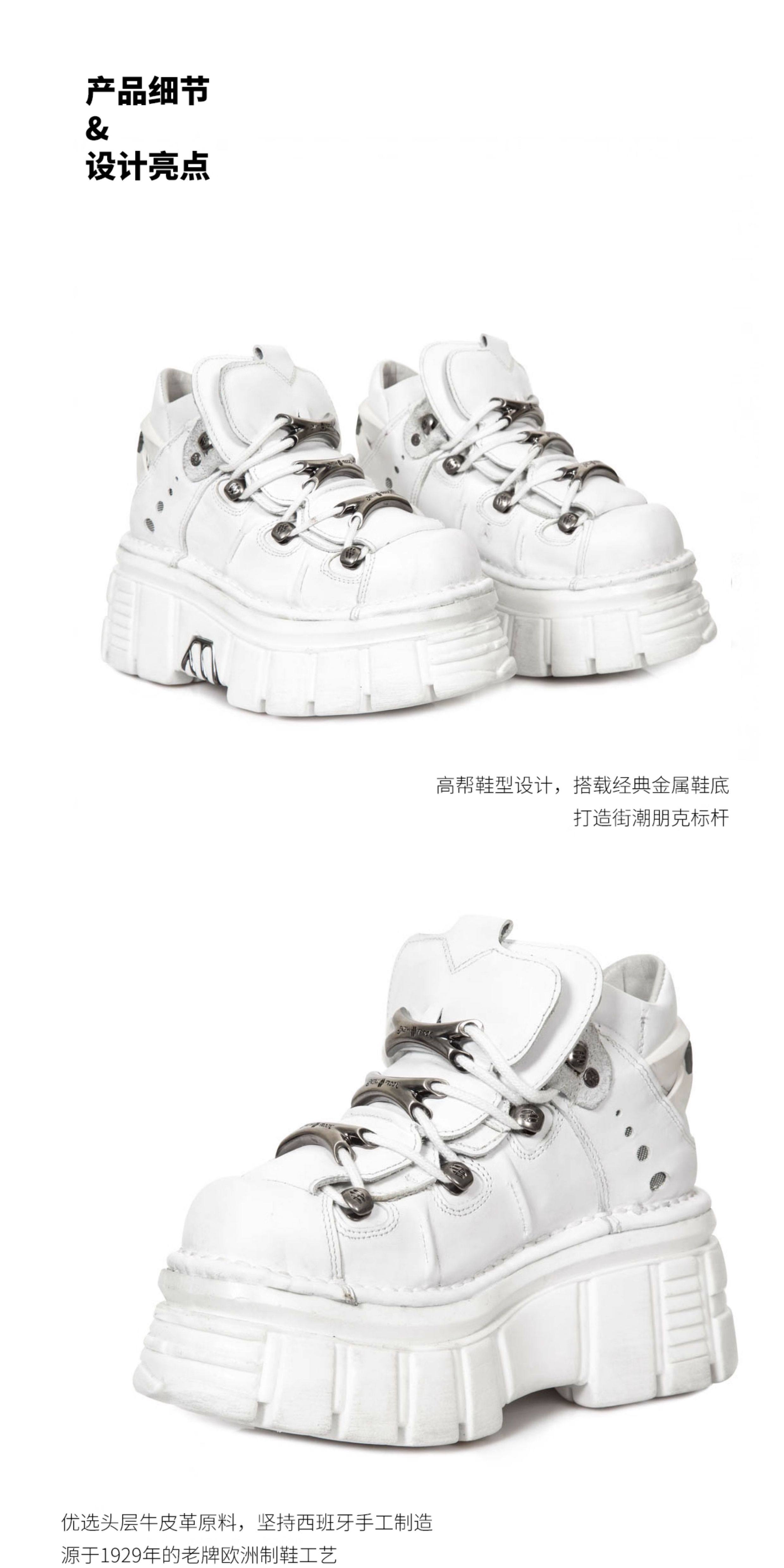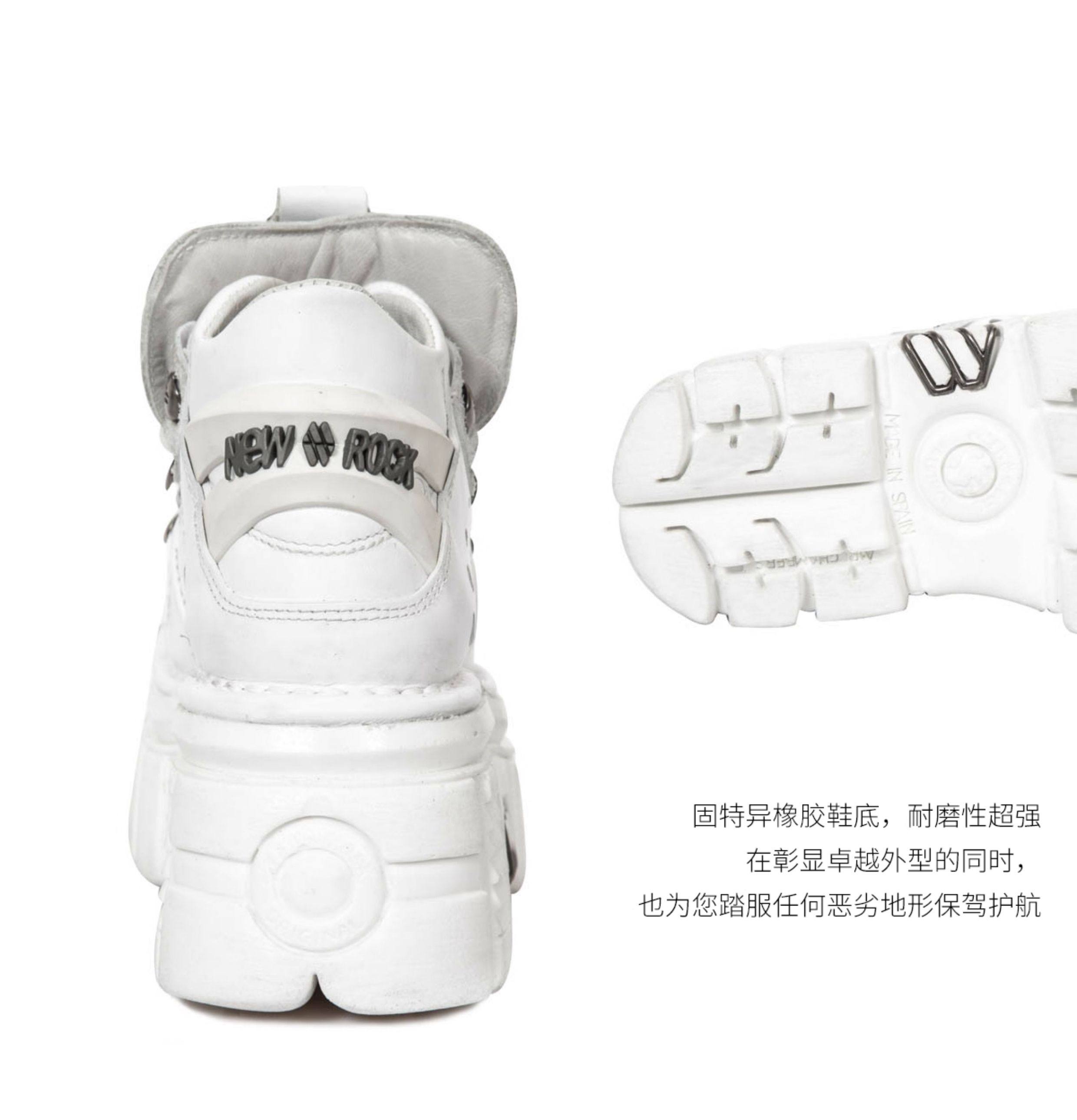 New Rock Official Authentic Niche Punk Trendy Pure White Genuine Leather Thick-Soled Metal High-Top Shoes Height-Increasing White Sneakers