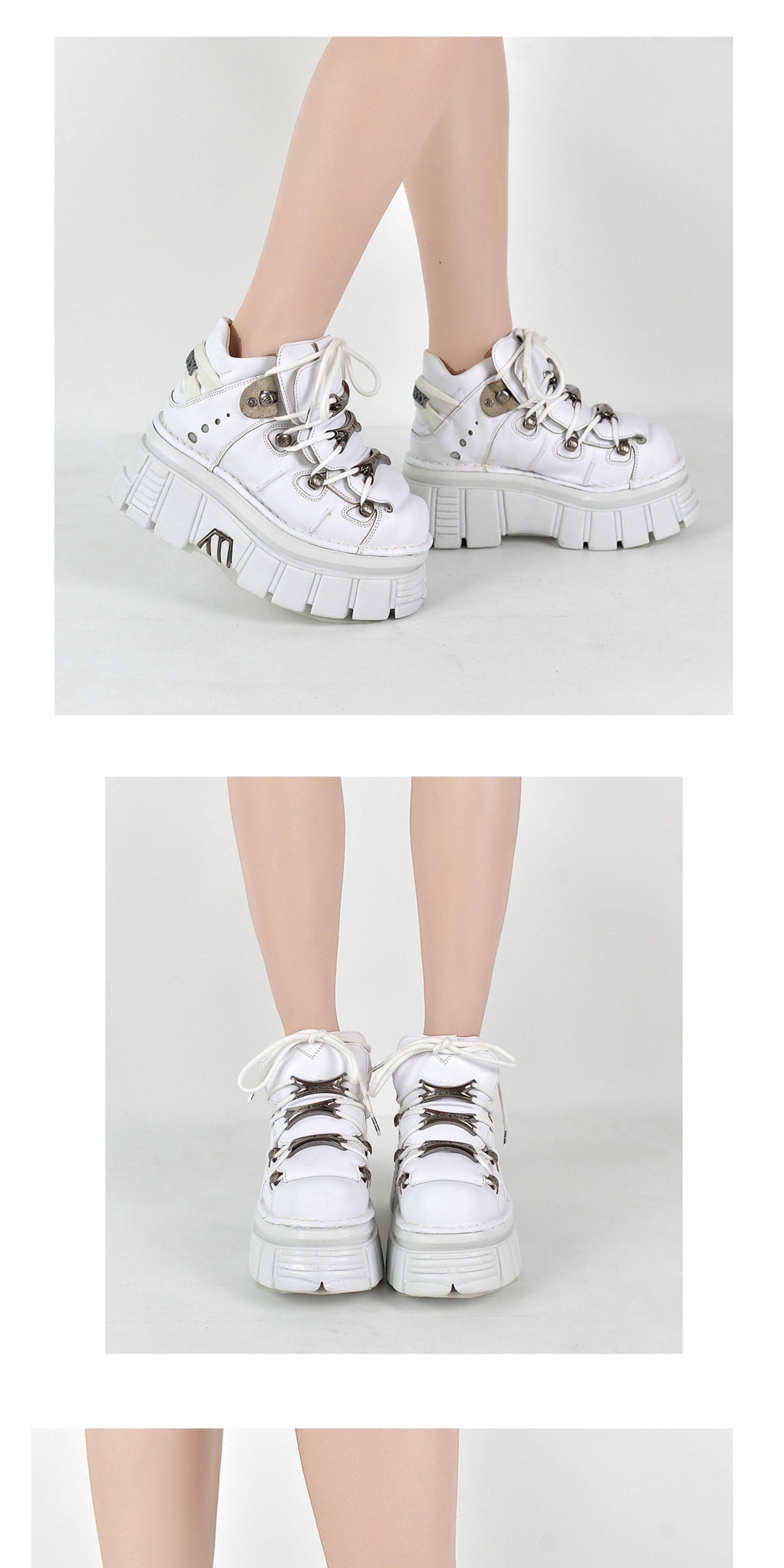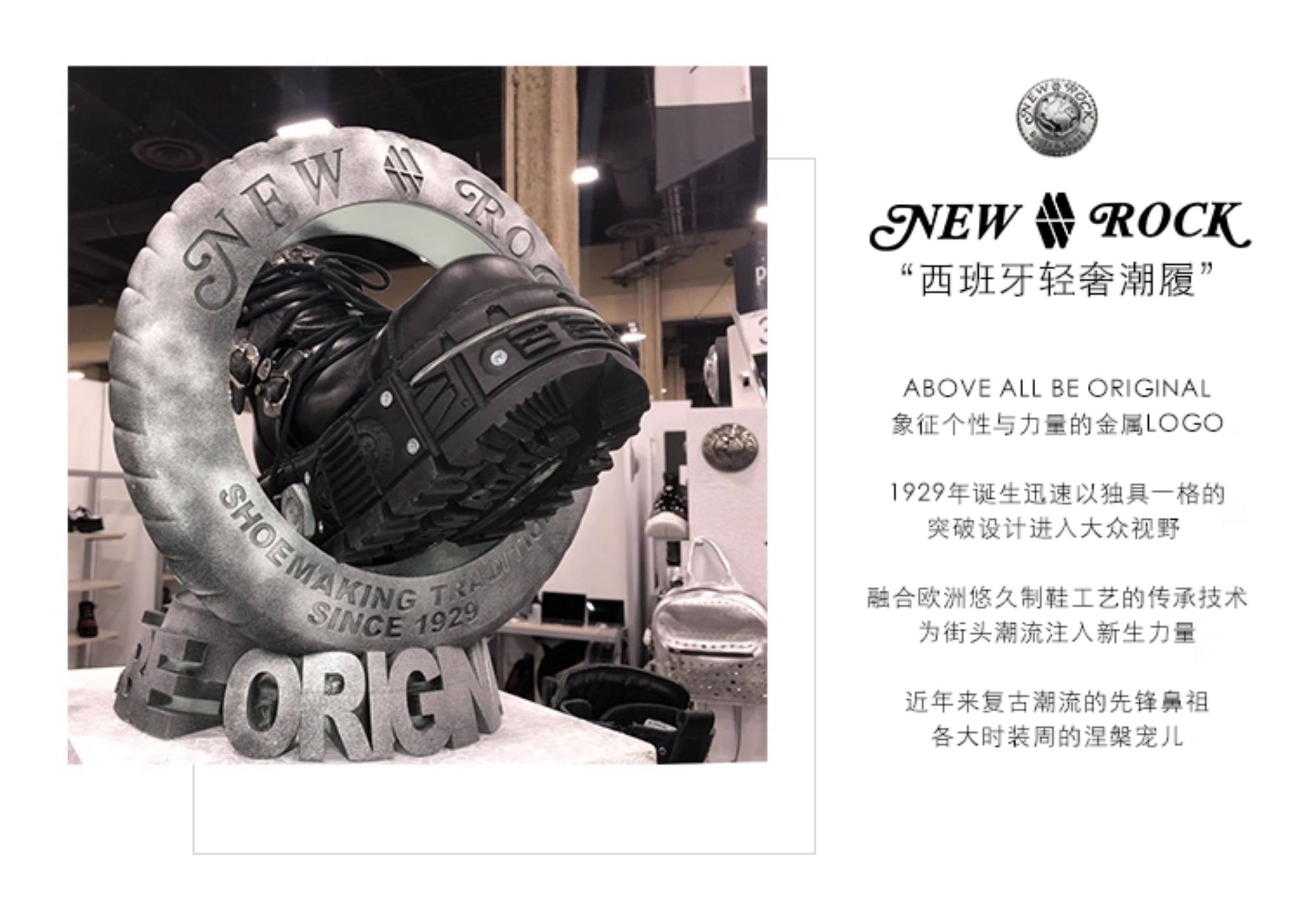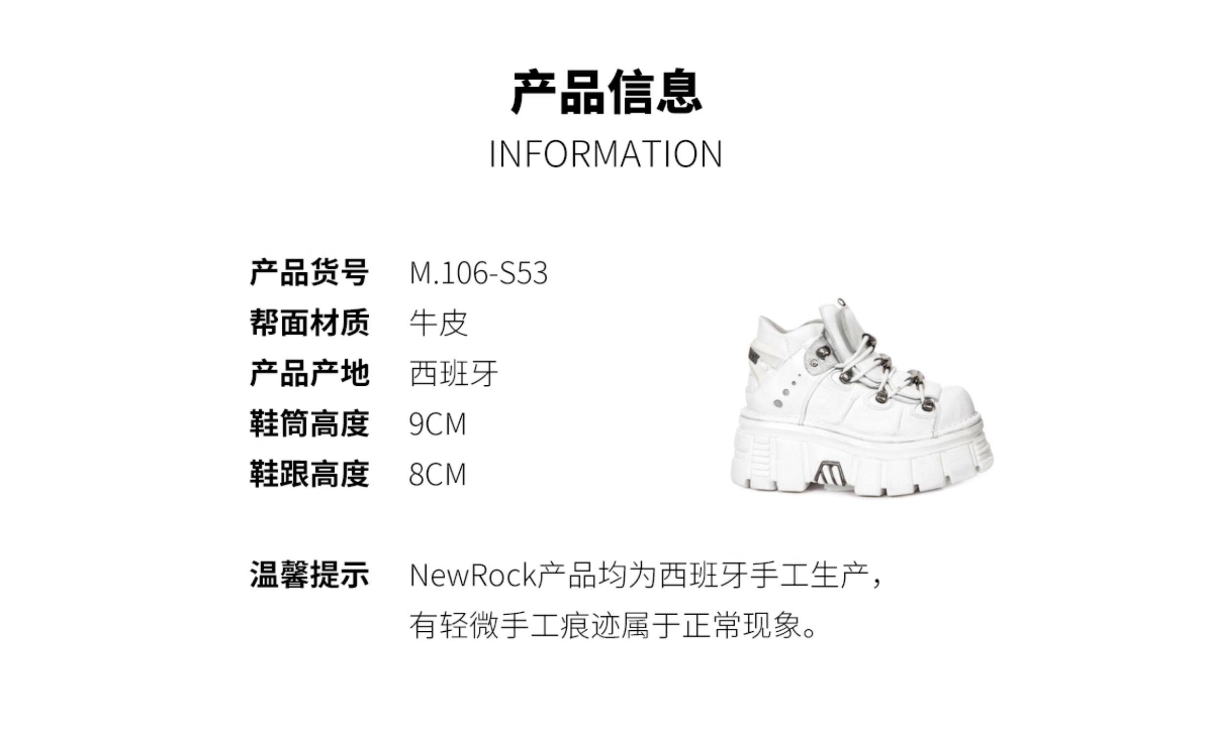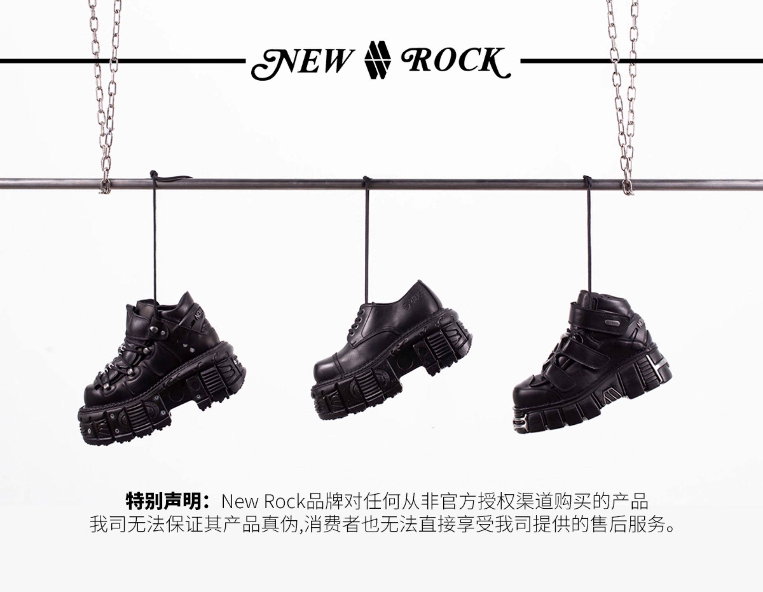 New Rock Official Authentic Niche Punk Trendy Pure White Genuine Leather Thick-Soled Metal High-Top Shoes Height-Increasing White Sneakers