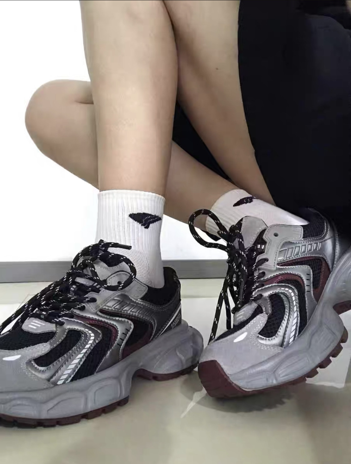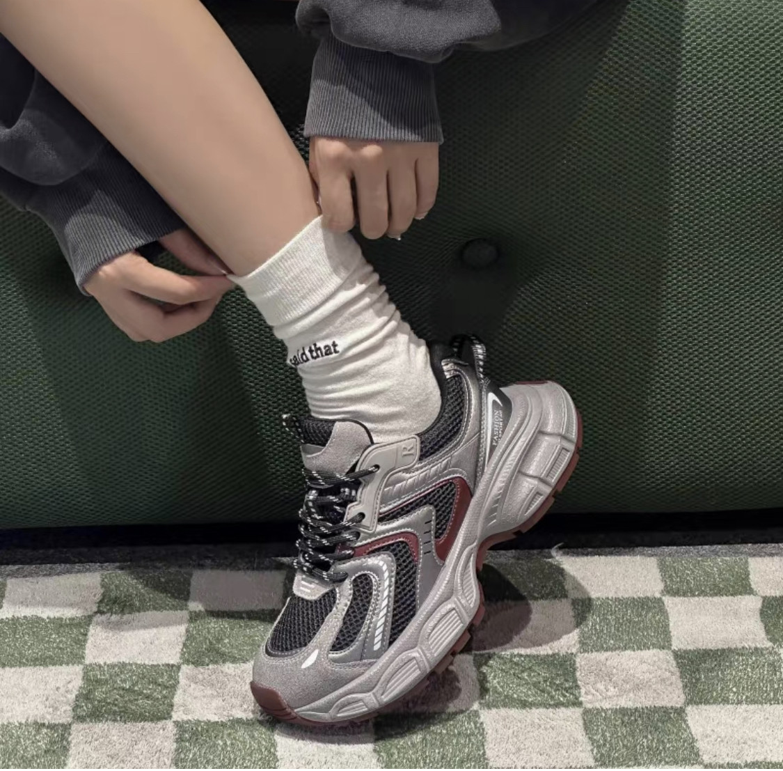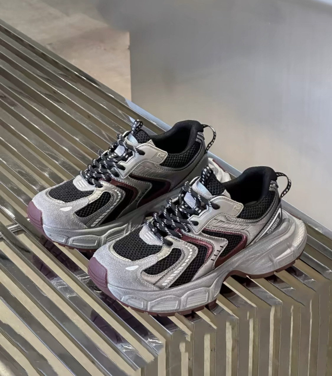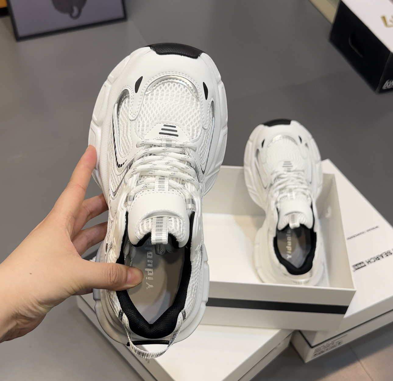 Zhao Lusi's Same Style Silver Dad Shoes for Women, 2026 Spring/Summer New Model, Genuine Leather, Thick-Soled, Height-Increasing, Breathable Mesh Casual Shoes