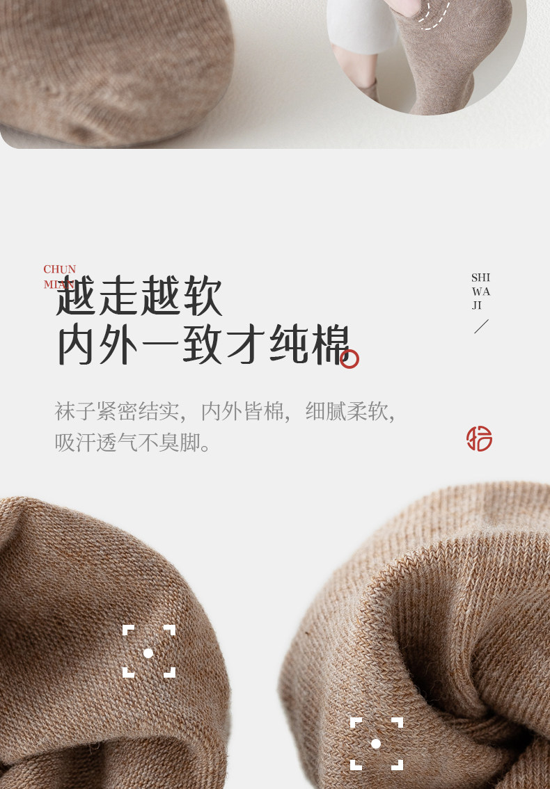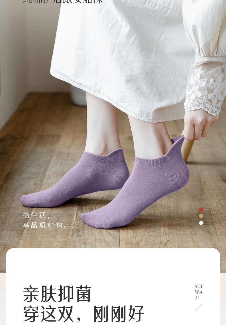 Pure Cotton Heel-Protecting No-Show Socks for Women, Autumn Non-Slip, Odor-Resistant, Sweat-Absorbent, Breathable, Low-Cut Shallow Socks