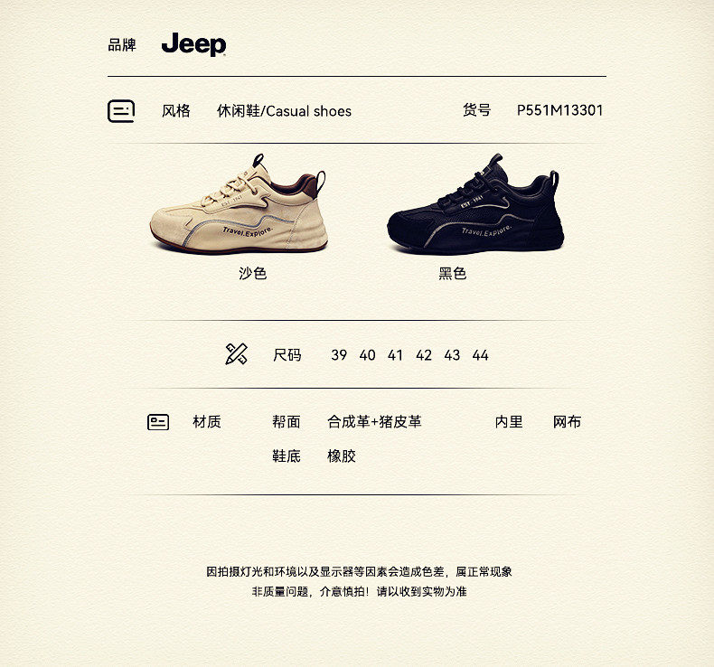 Jeep Men's Sneakers 2026 New Summer Style High-End Genuine Casual Shoes Men's Dad Shoes
