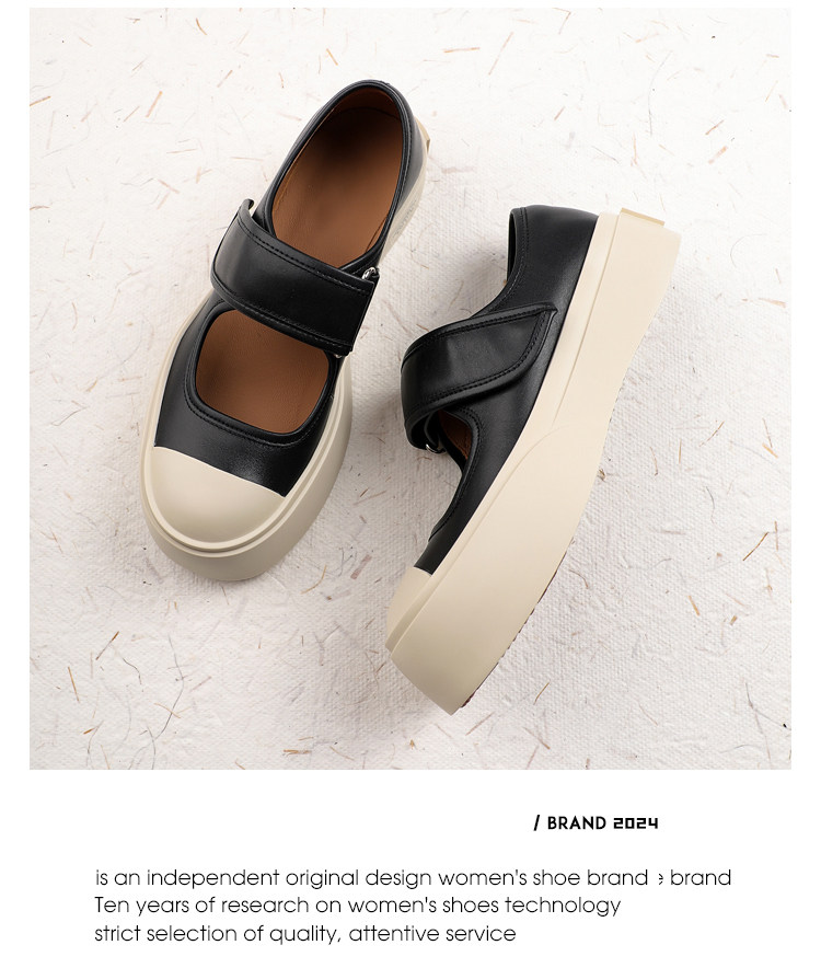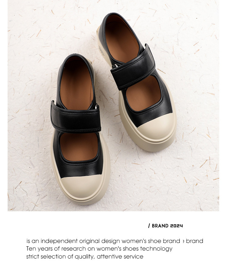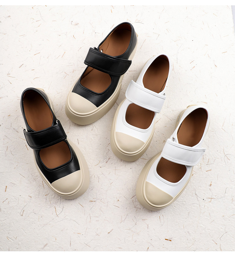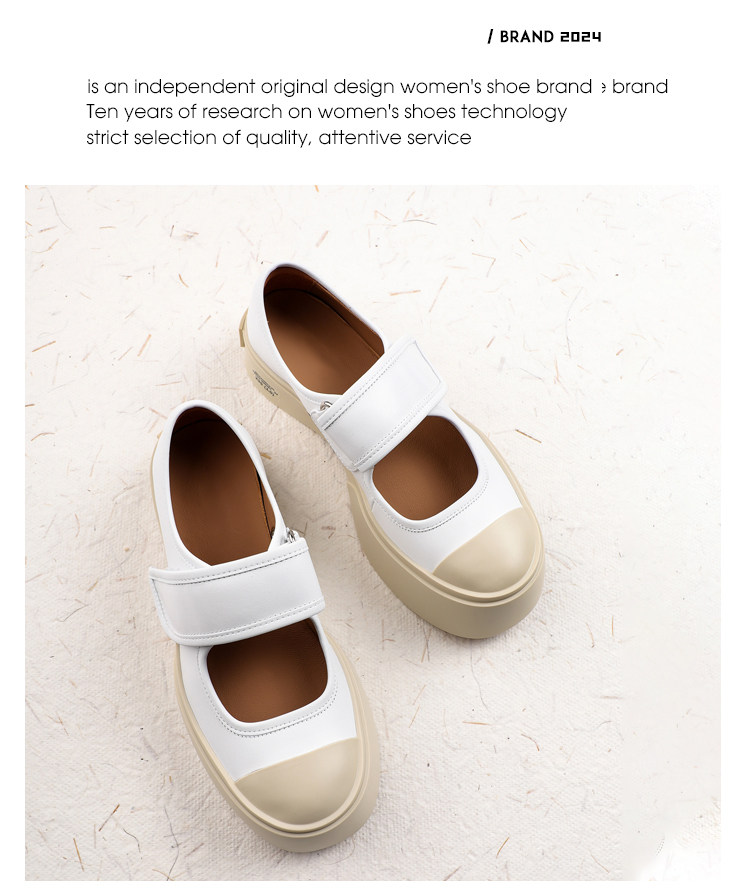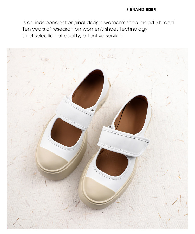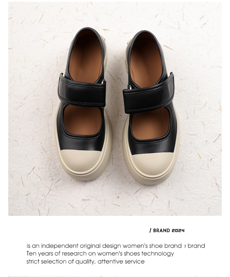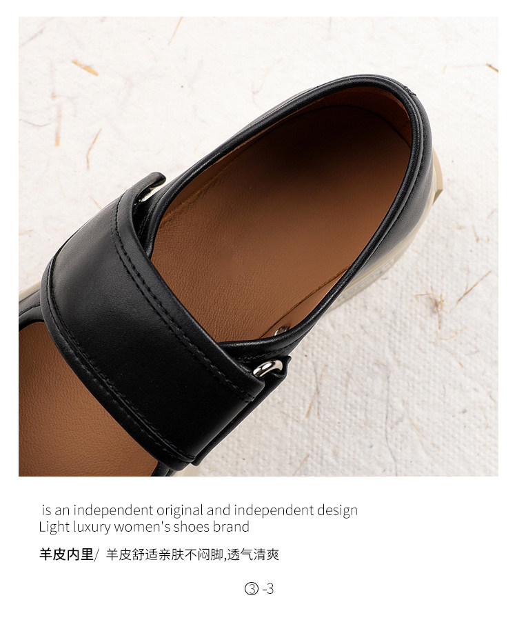 Ma French Mary Jane Women's Shoes Spring and Summer New Velcro Ugly Big-Toe Shoes Genuine Leather Thick-Soled Shoes