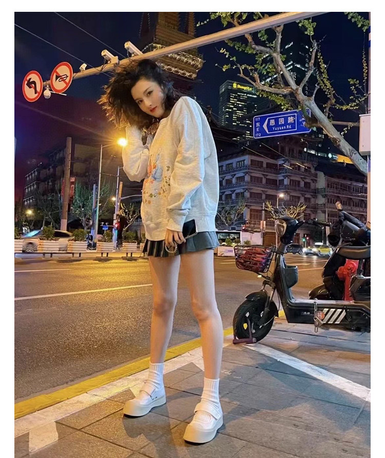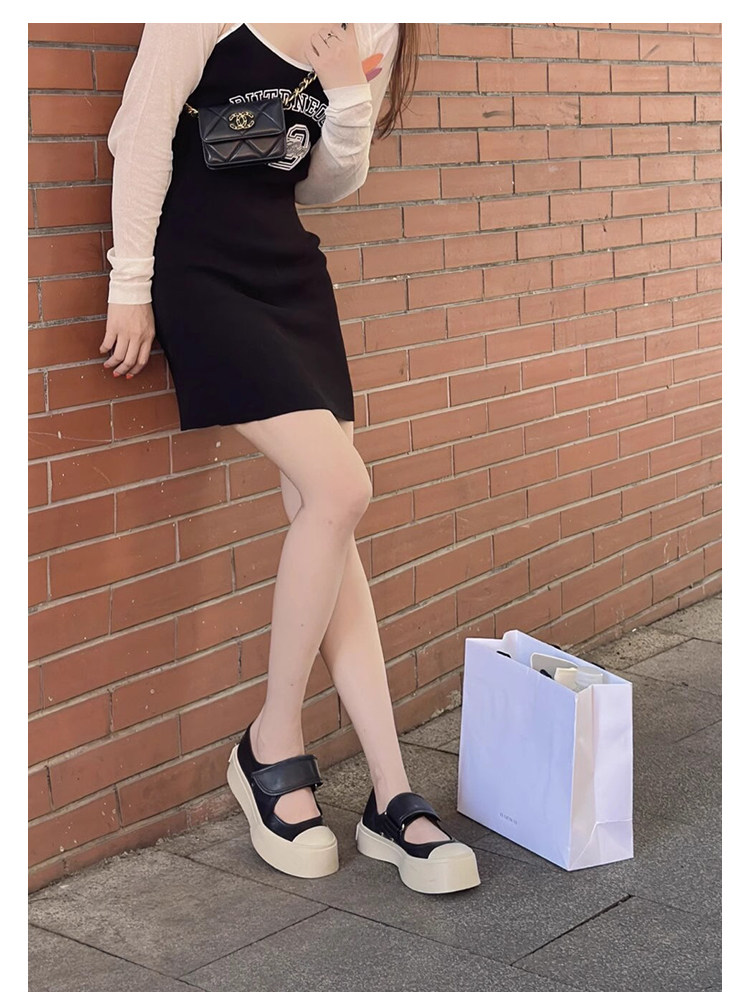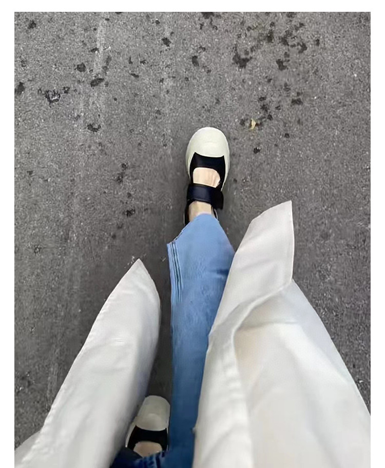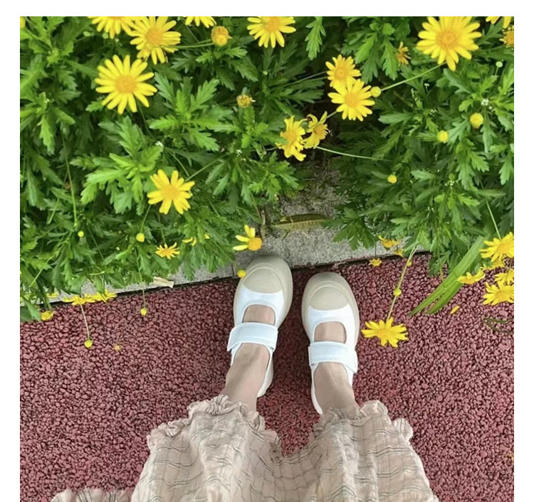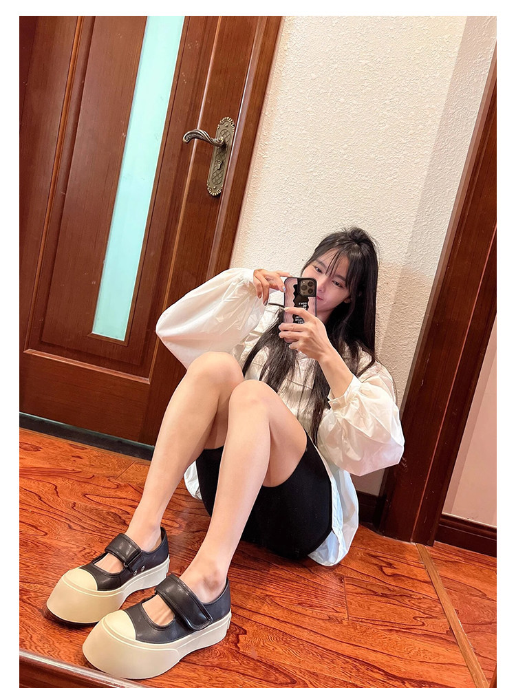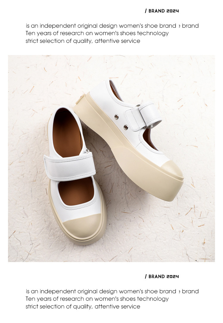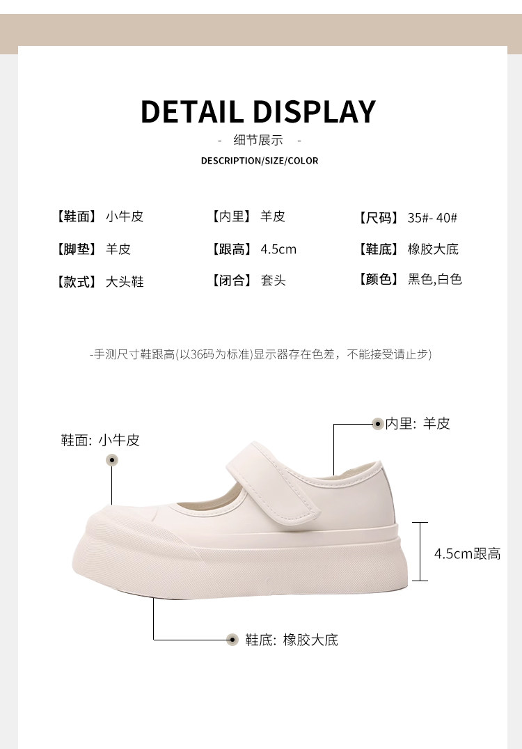 Ma French Mary Jane Women's Shoes Spring and Summer New Velcro Ugly Big-Toe Shoes Genuine Leather Thick-Soled Shoes