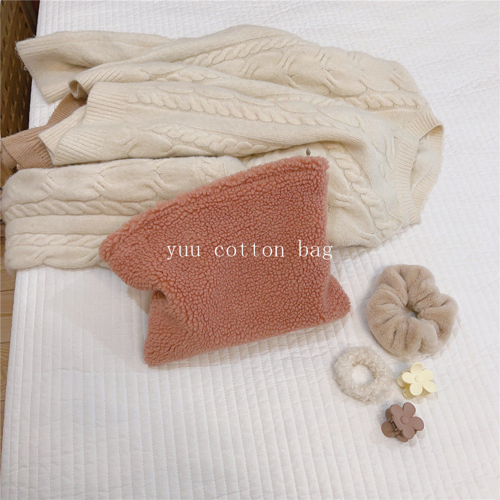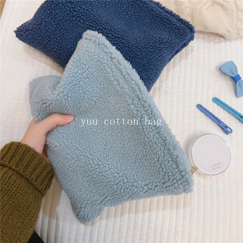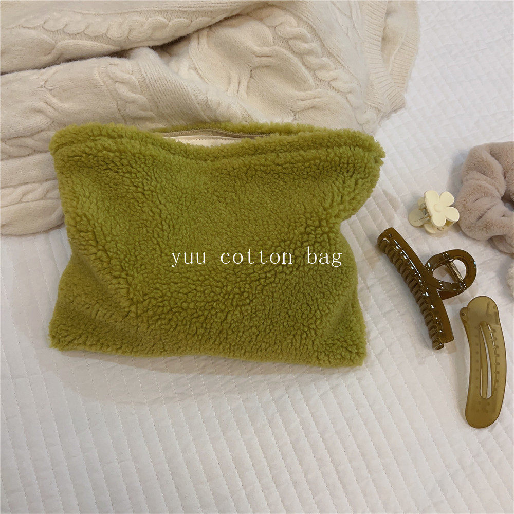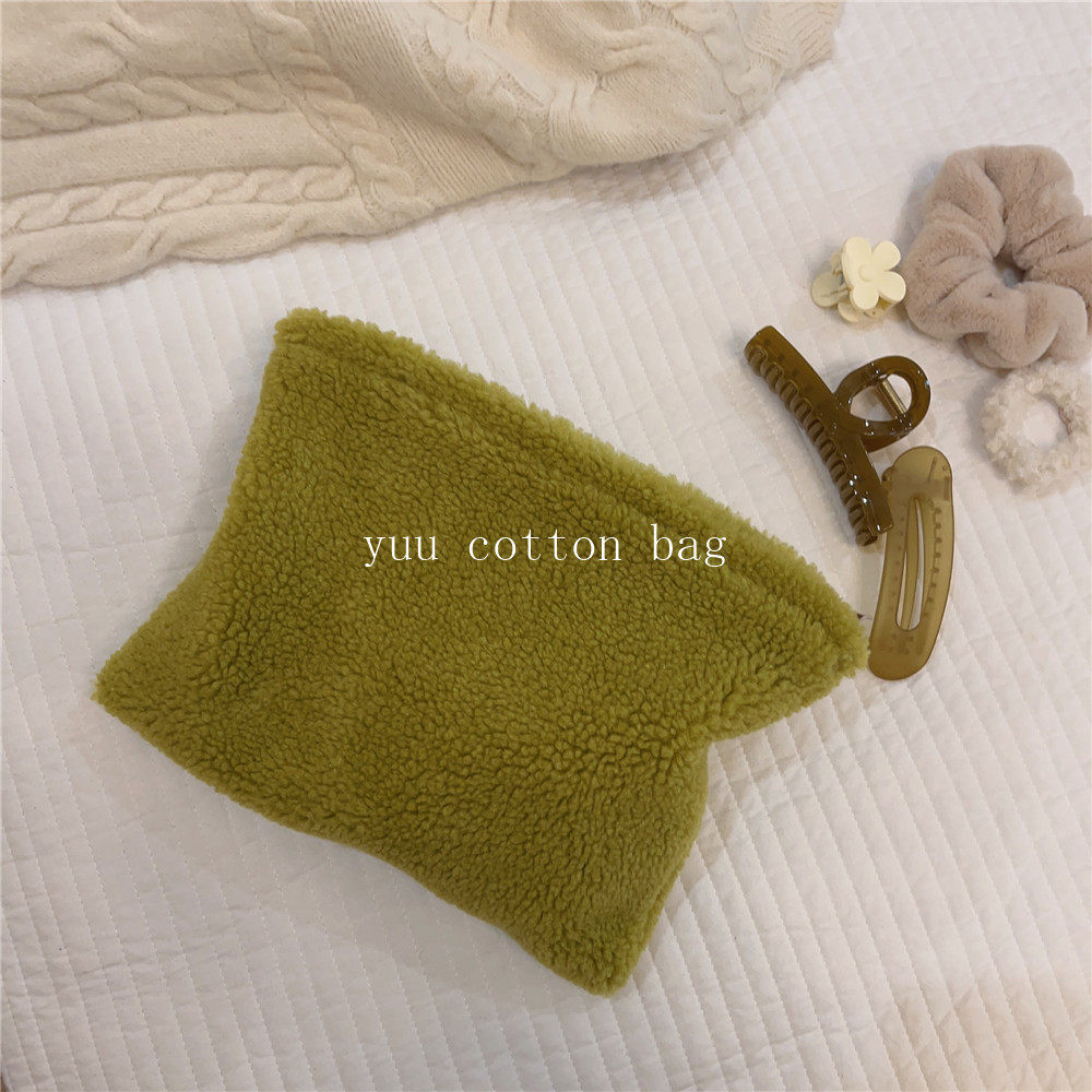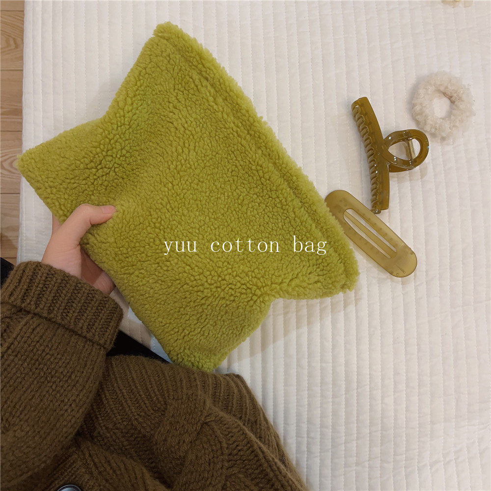 纯色百搭羊羔毛手袋 手拿包 化妆包