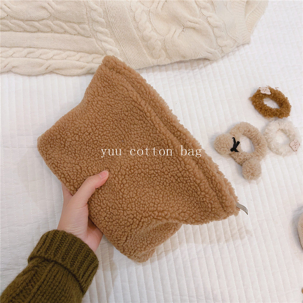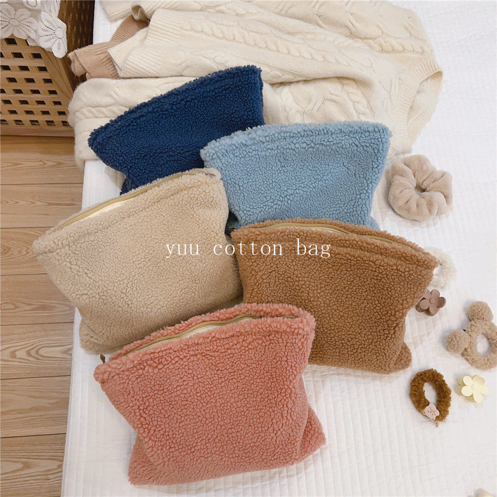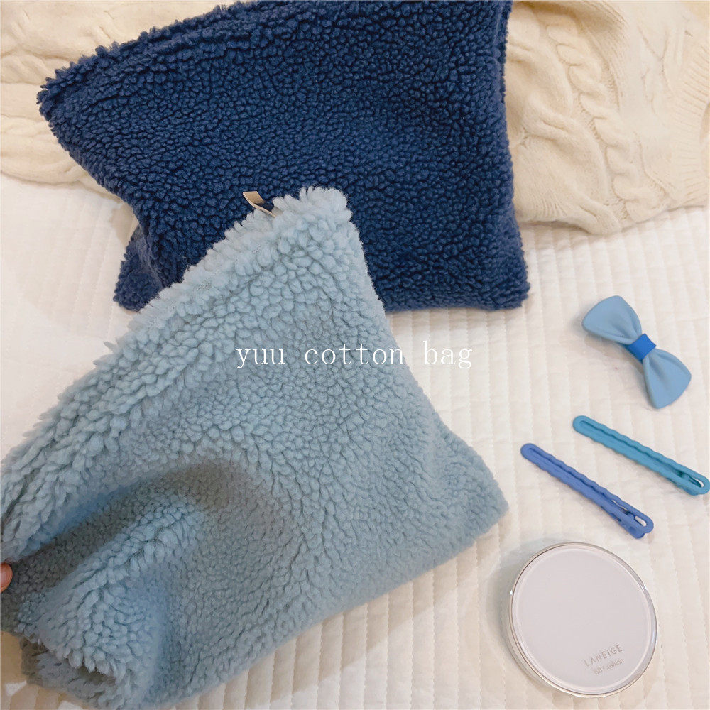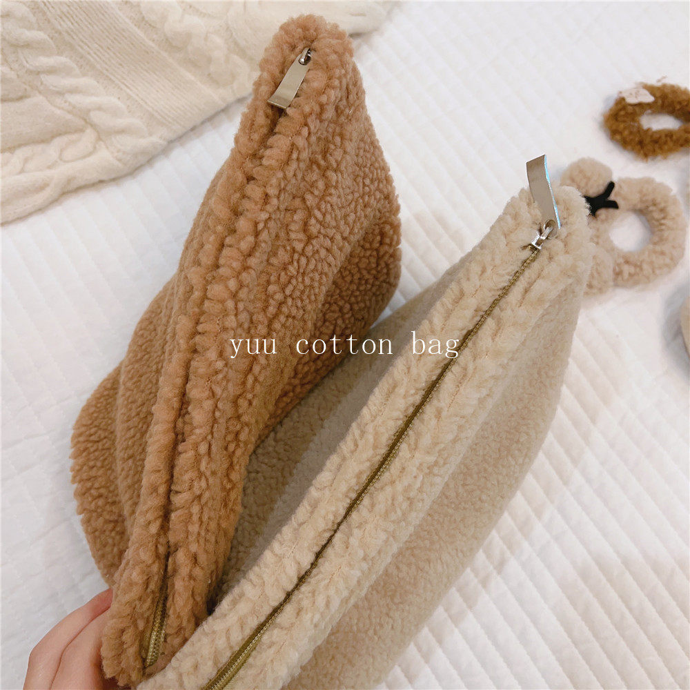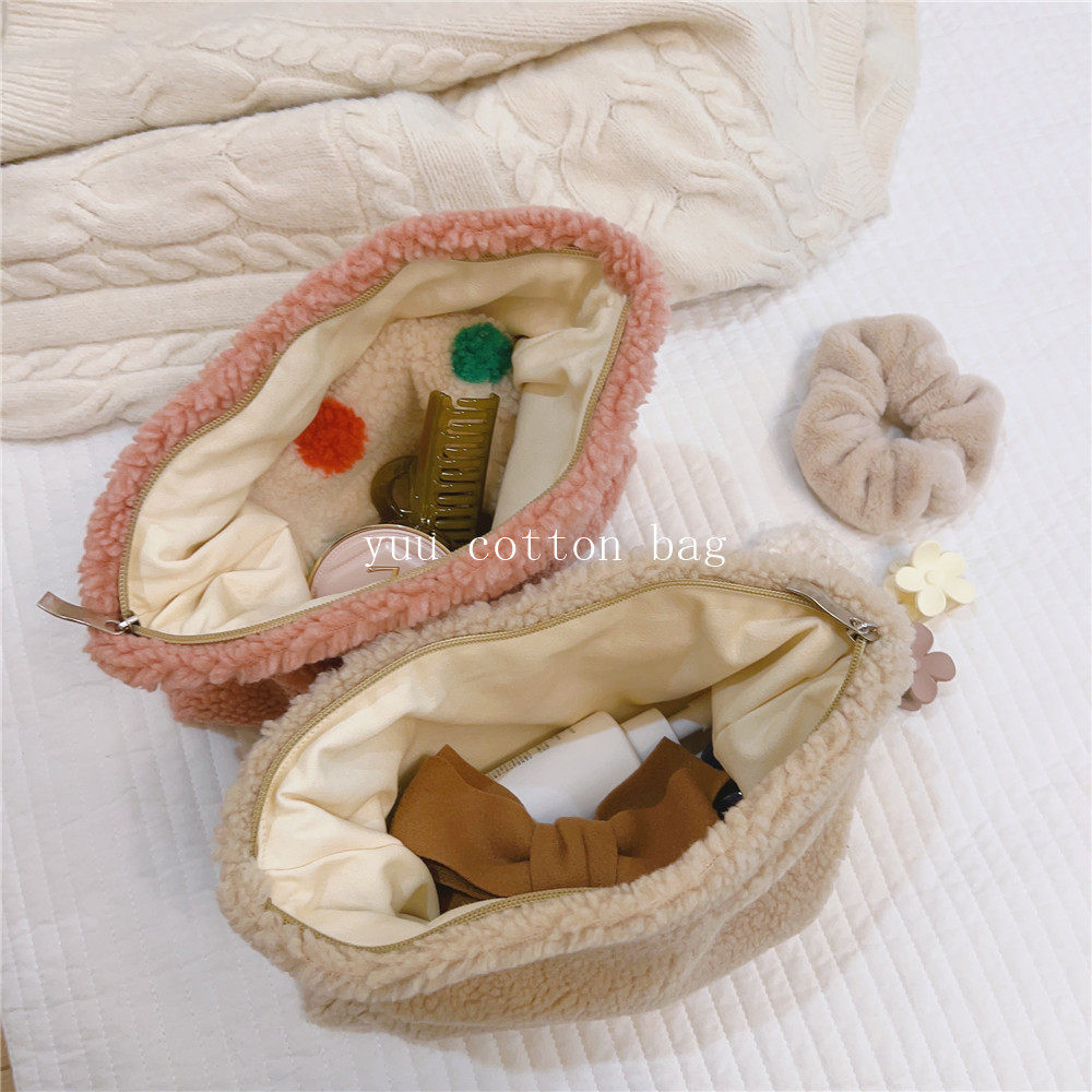 纯色百搭羊羔毛手袋 手拿包 化妆包