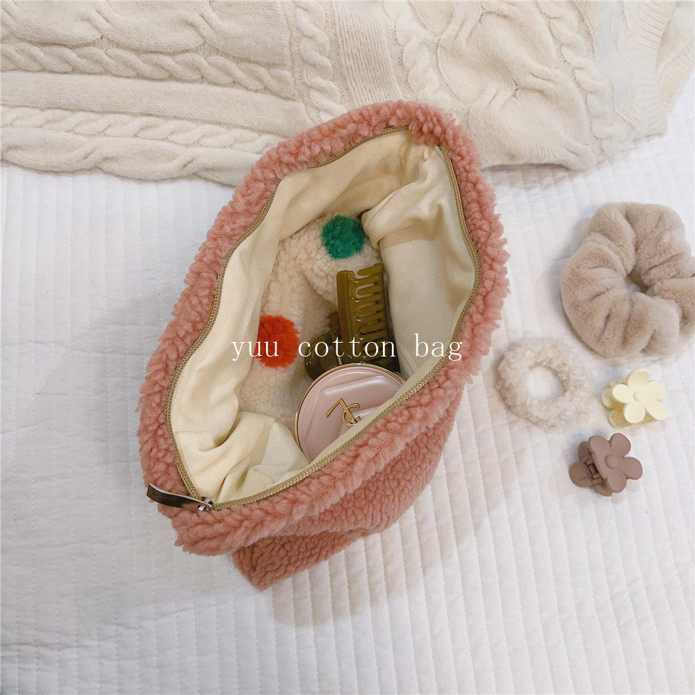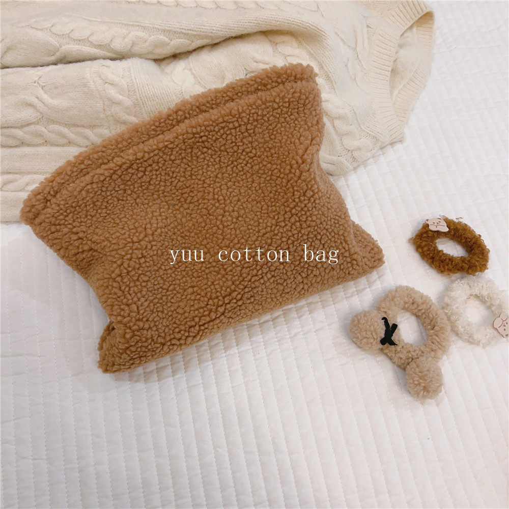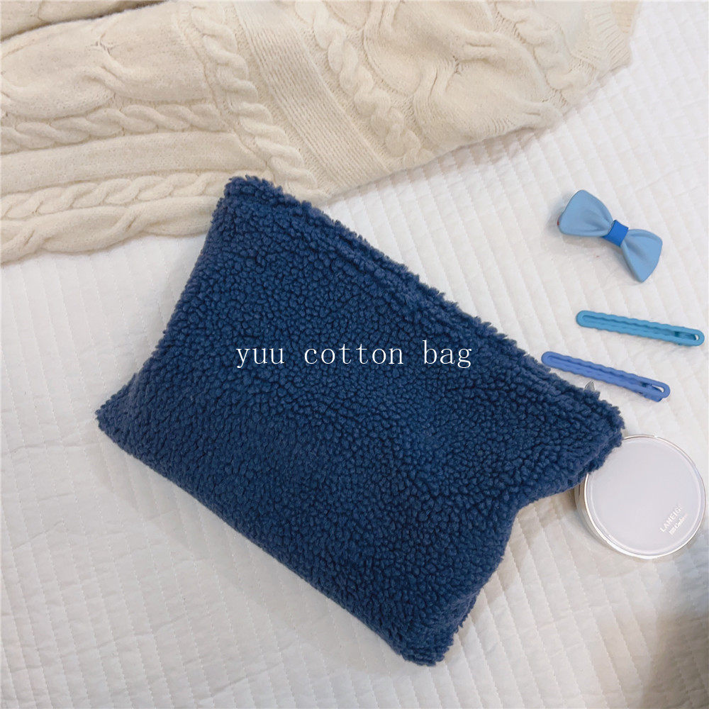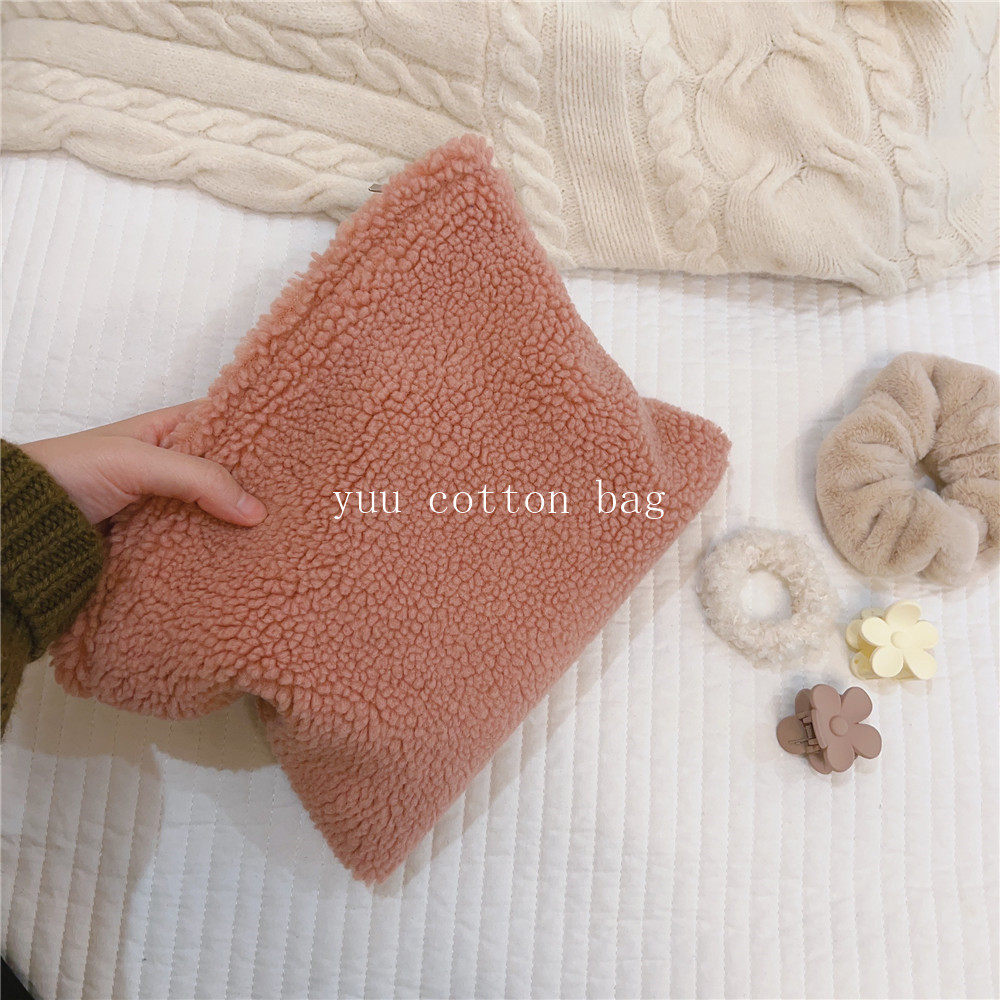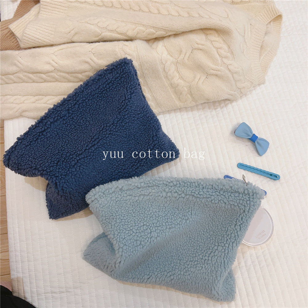 纯色百搭羊羔毛手袋 手拿包 化妆包