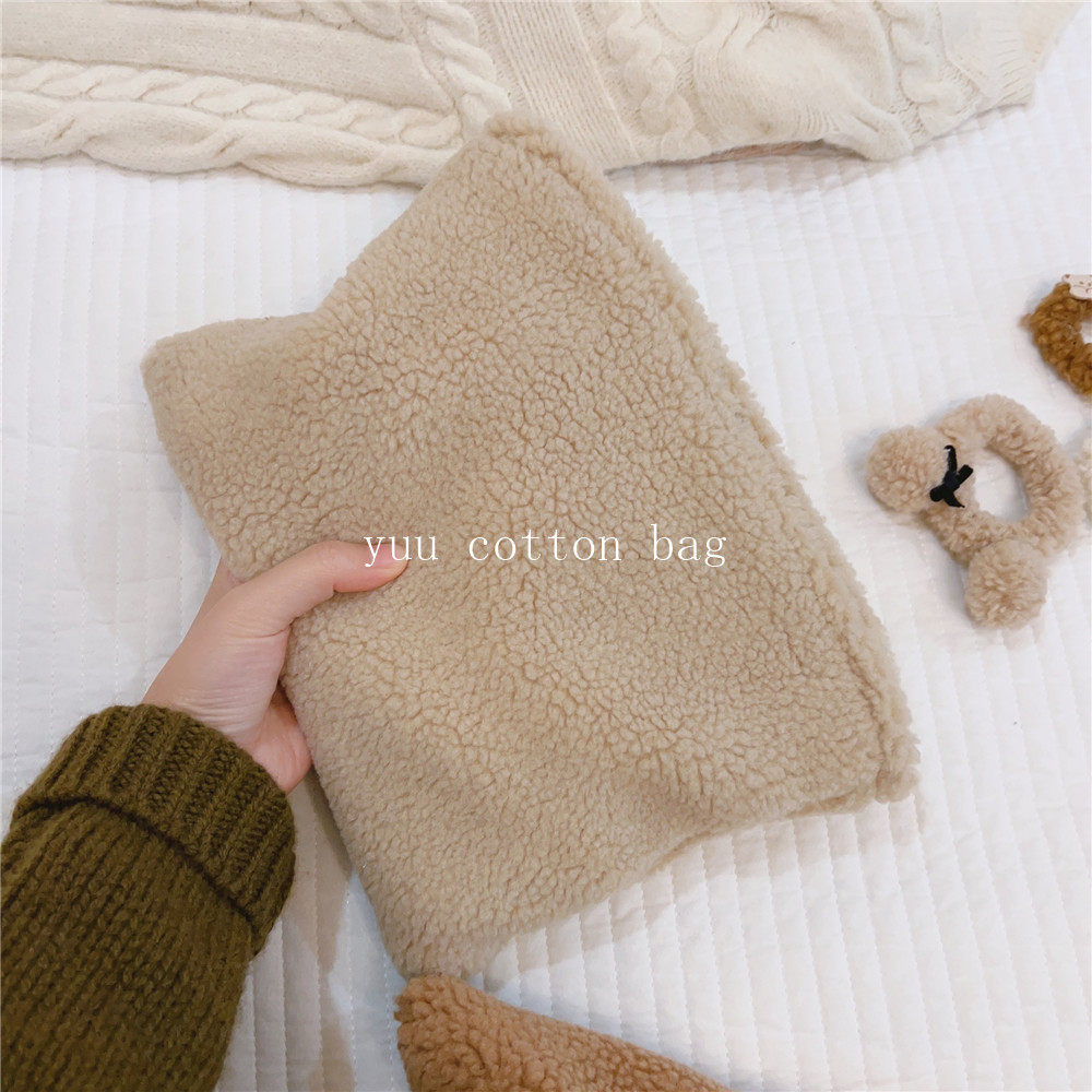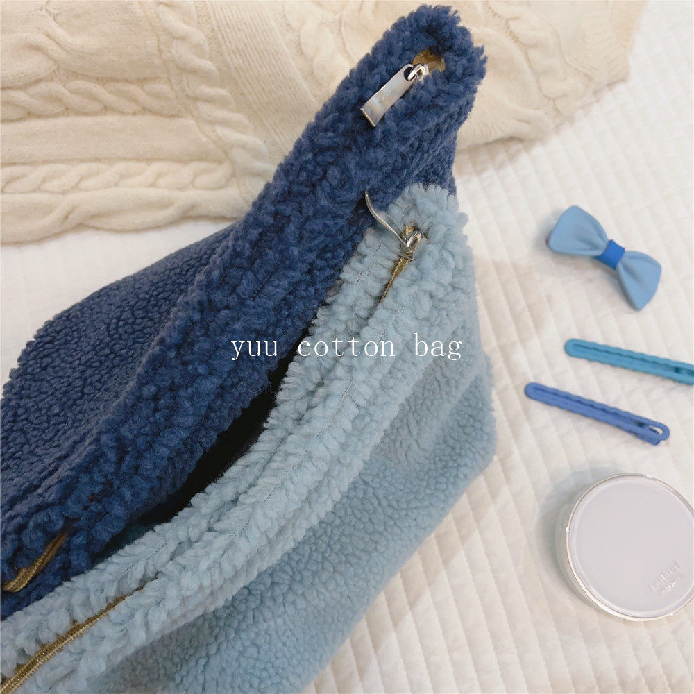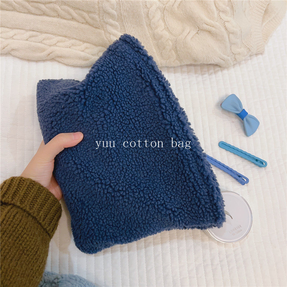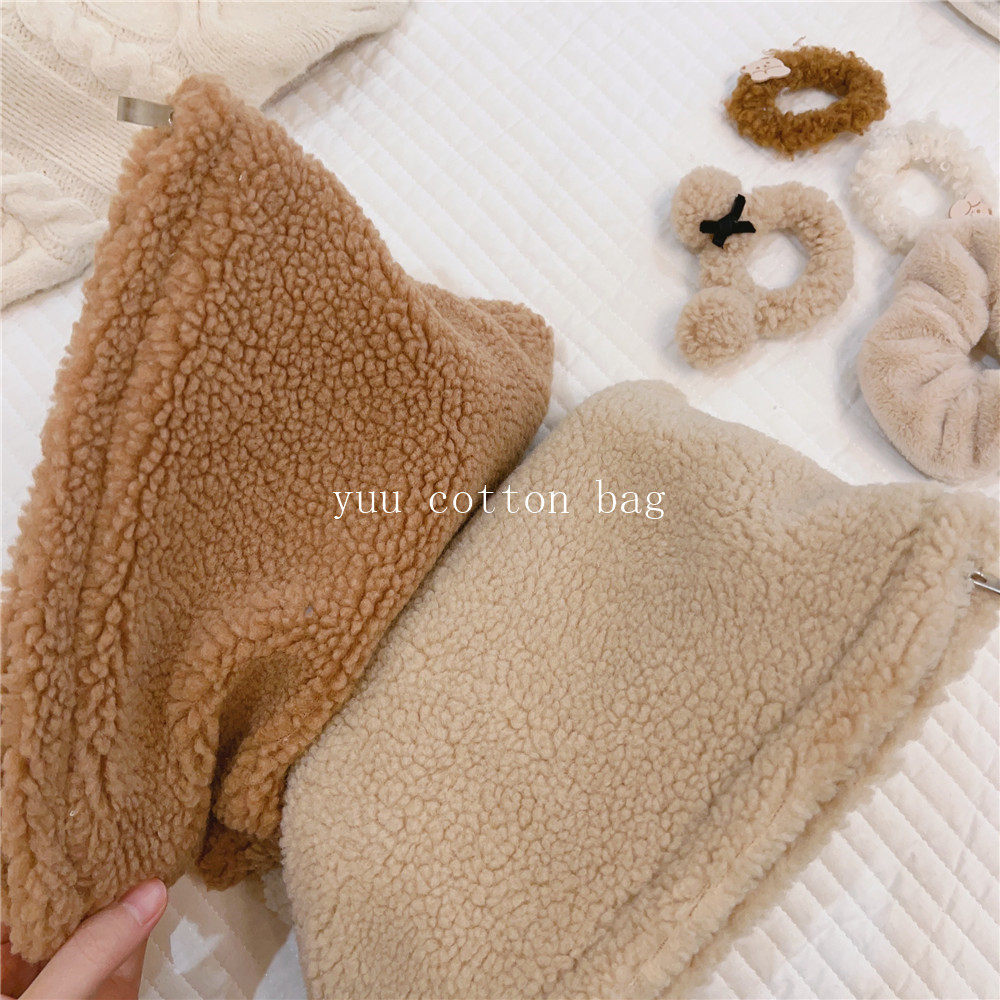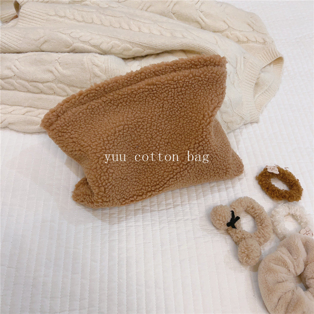 纯色百搭羊羔毛手袋 手拿包 化妆包