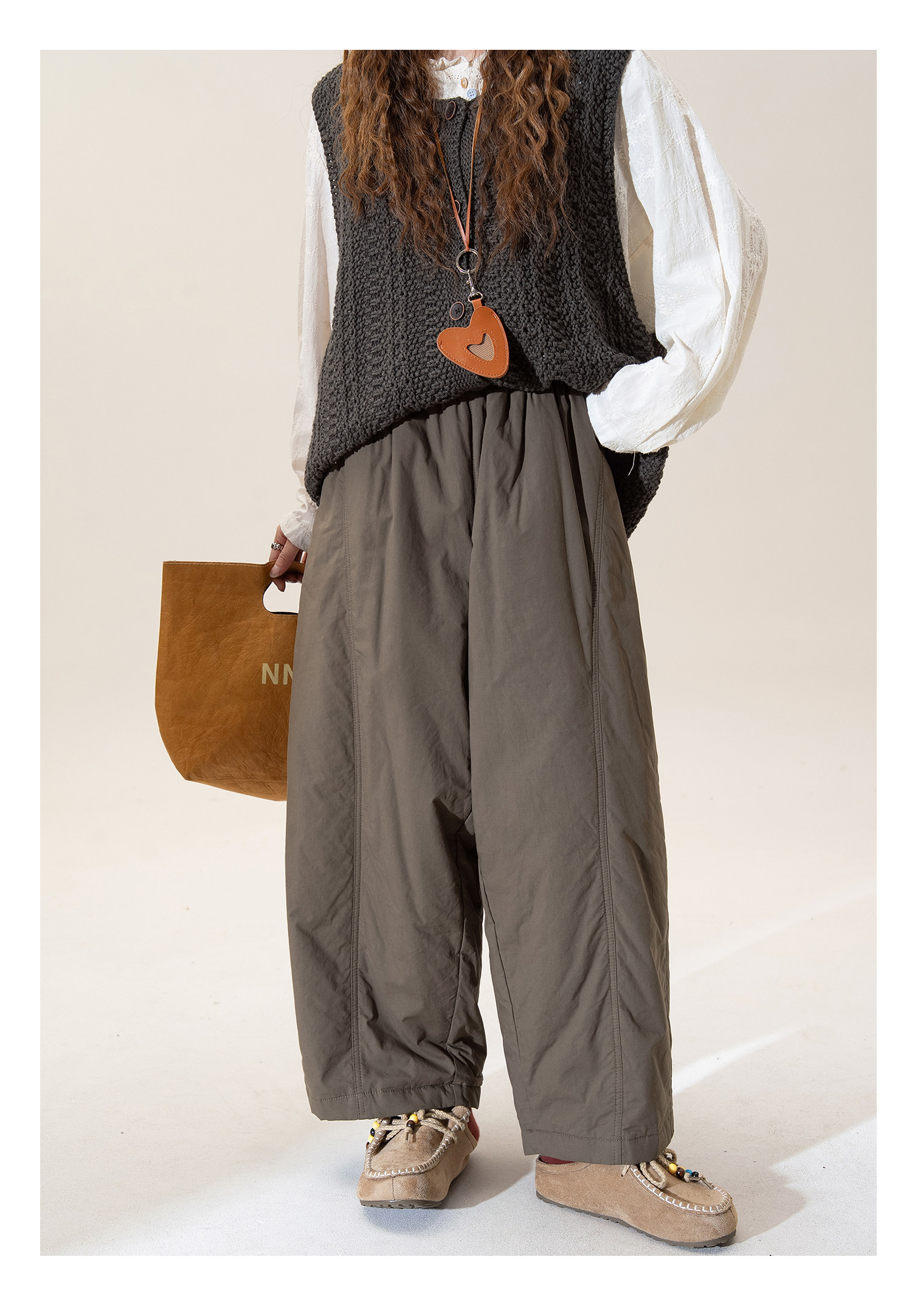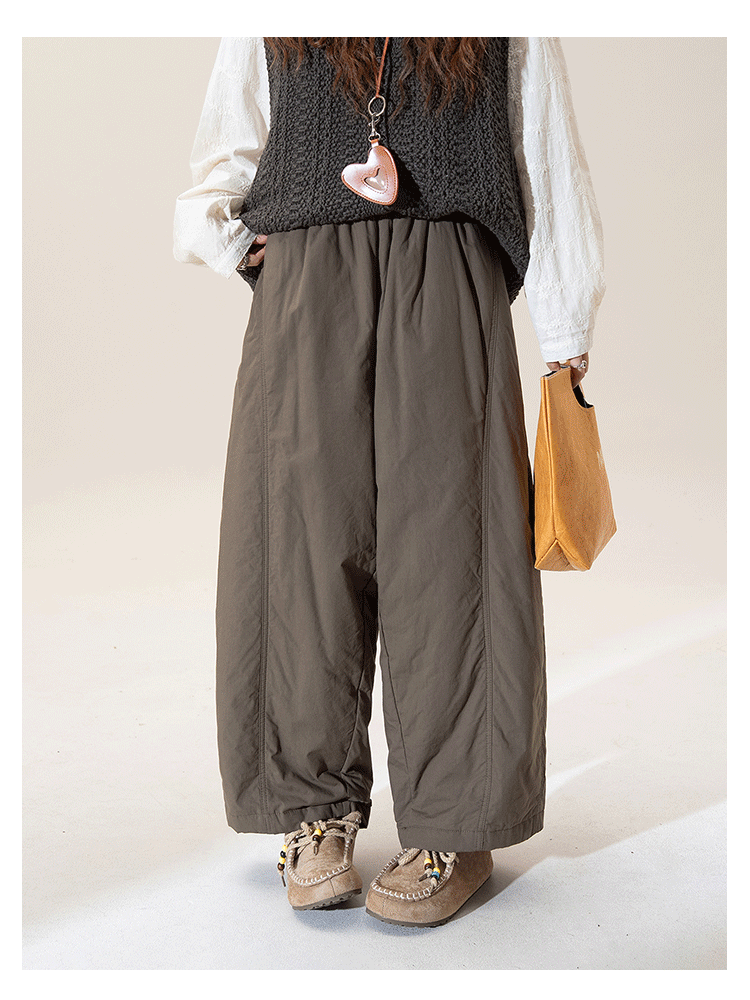 Japanese Retro Green Lazy Style Thickened Warm Casual Pants for Women, New Winter Loose Slimming Straight Cotton Pants