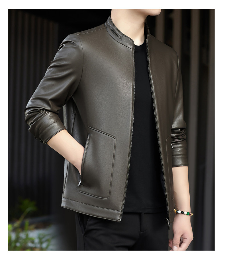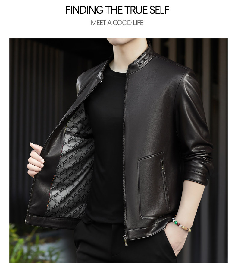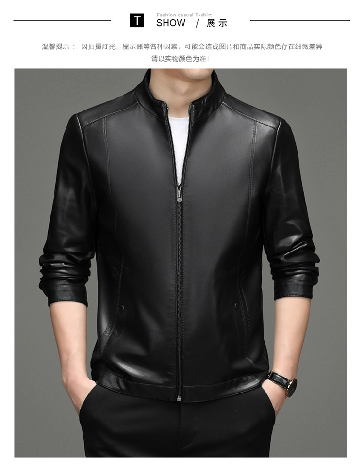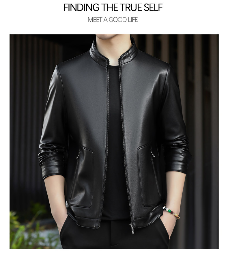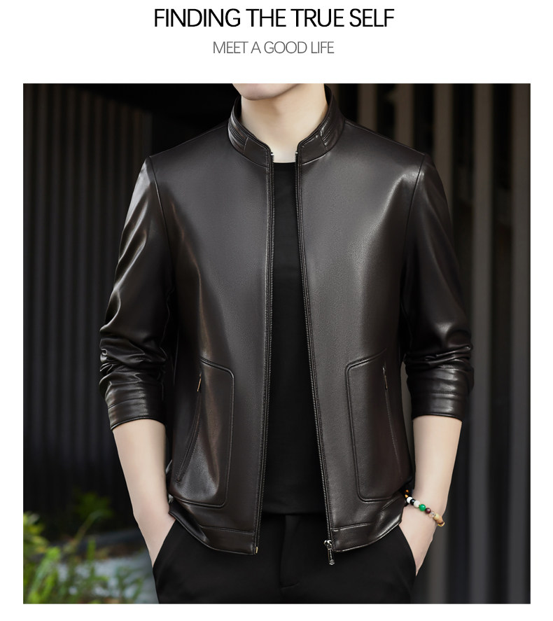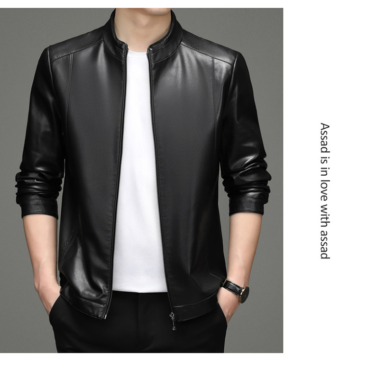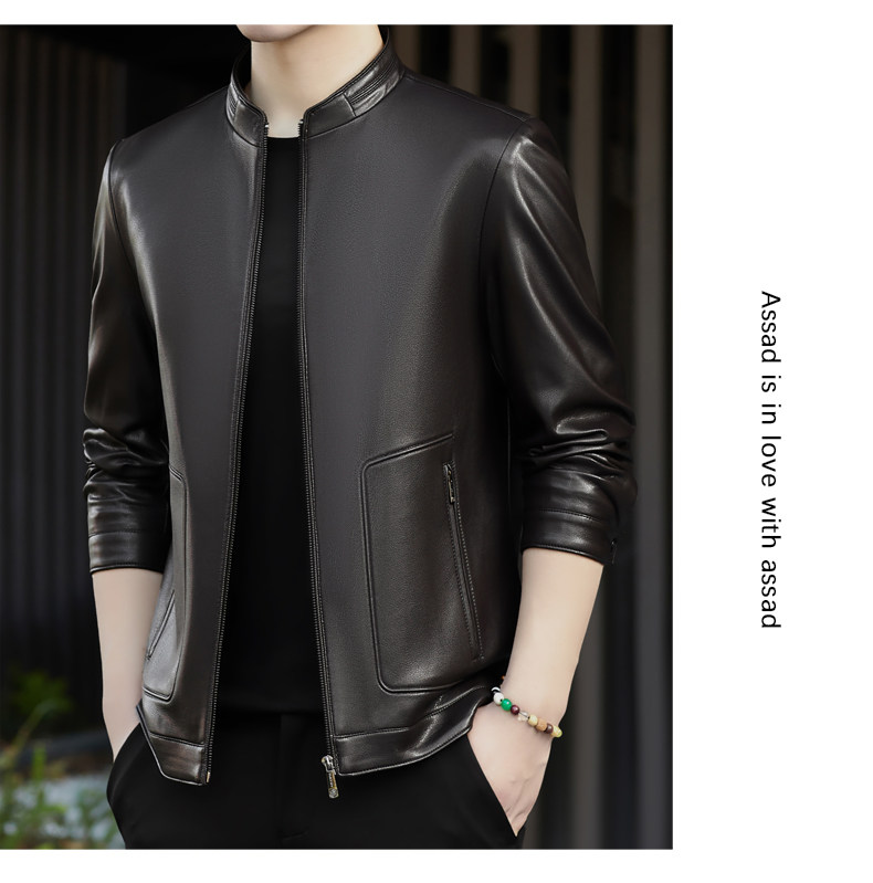 High-End Men's Leather Jacket, New Autumn and Winter Style, Business Casual Stand-Up Collar, Haining Genuine Sheepskin Leather Jacket for Dad