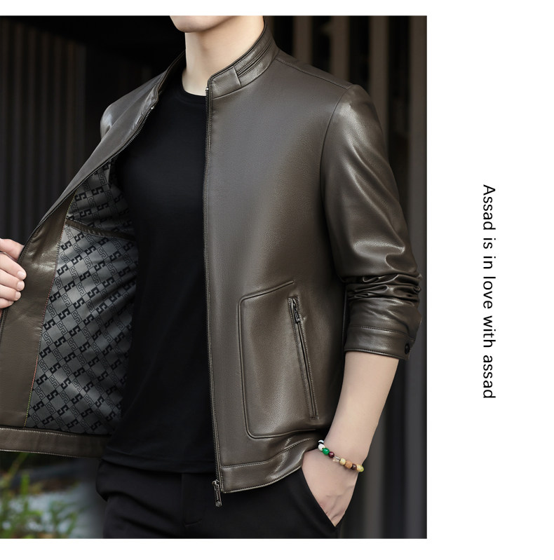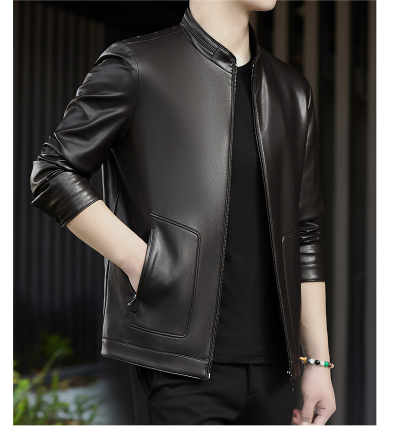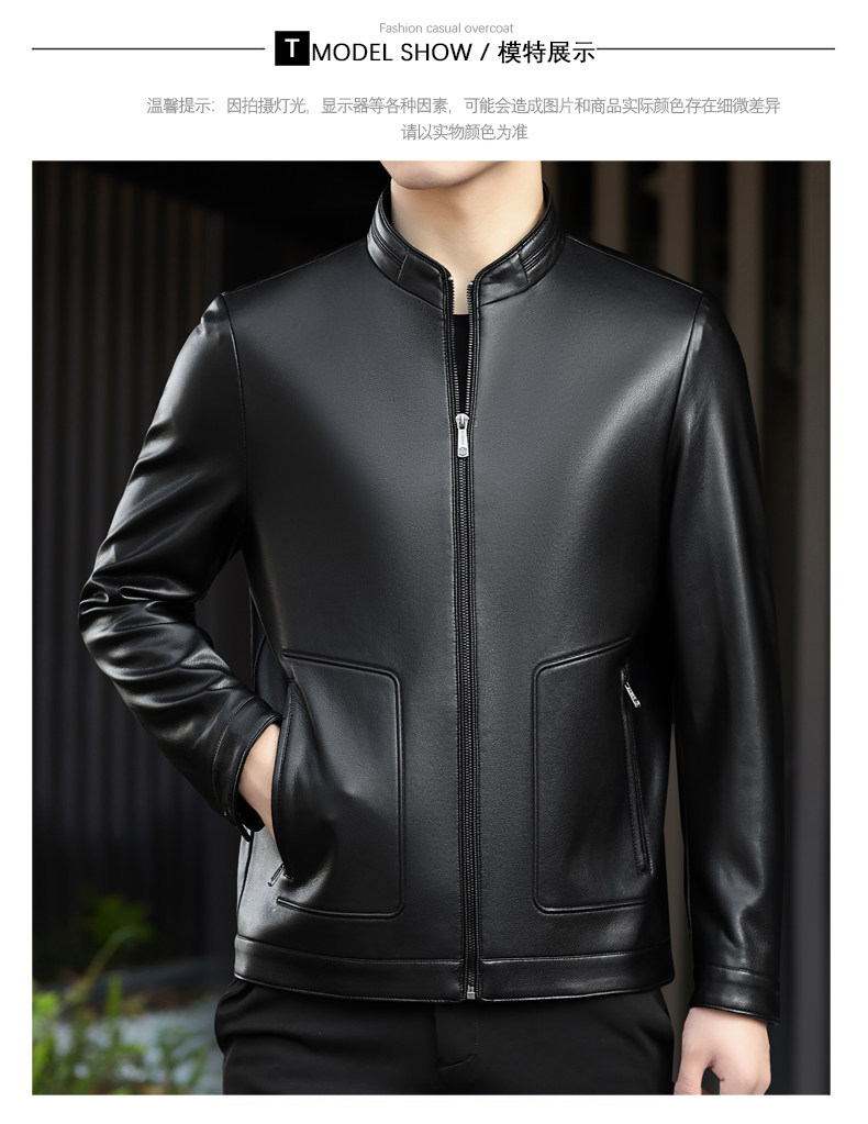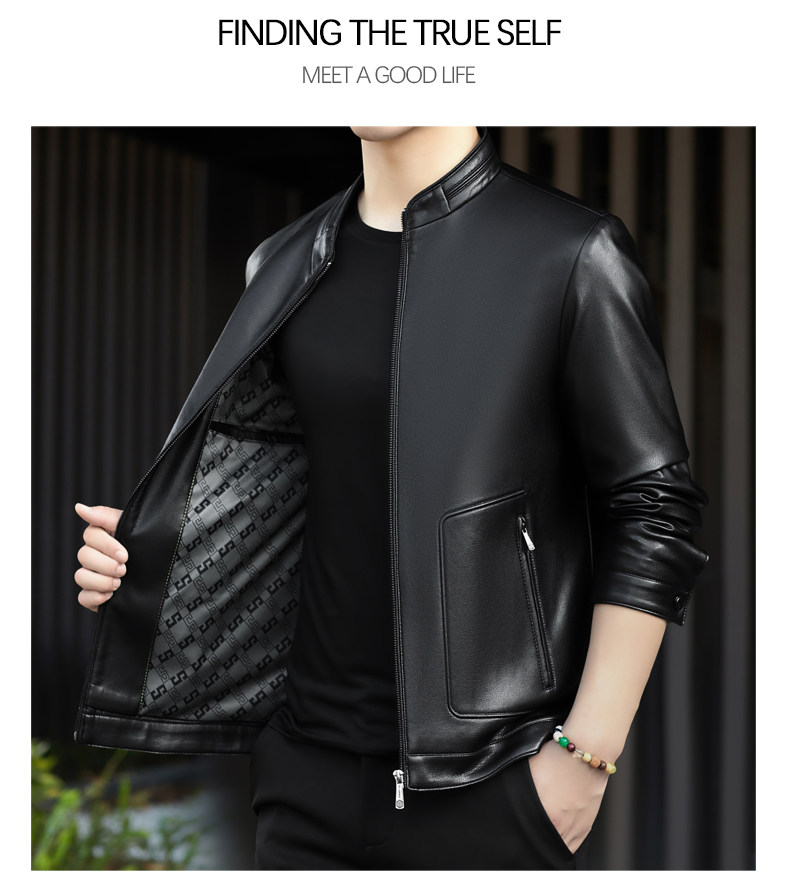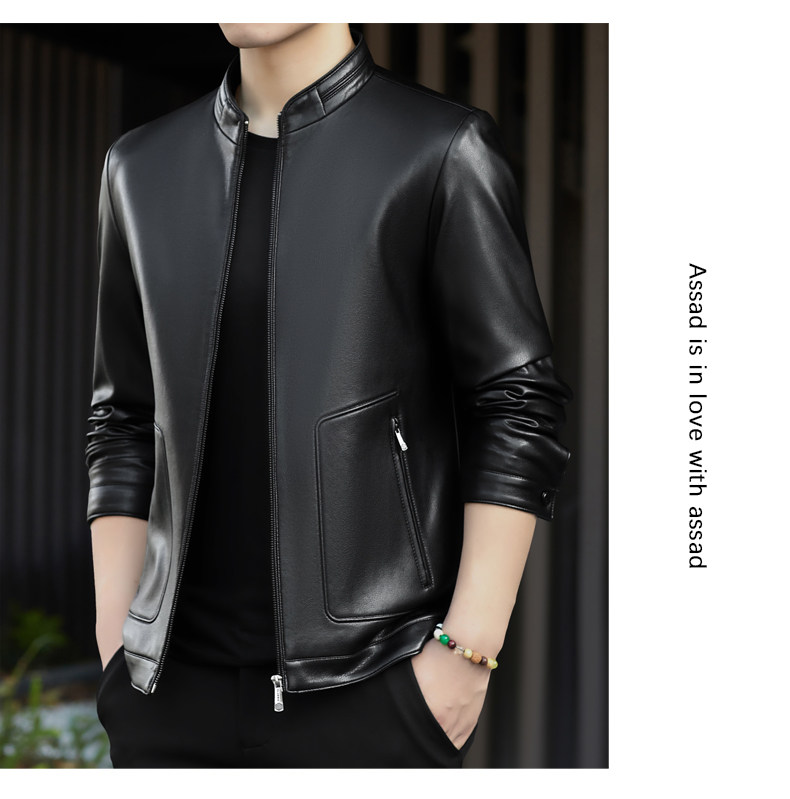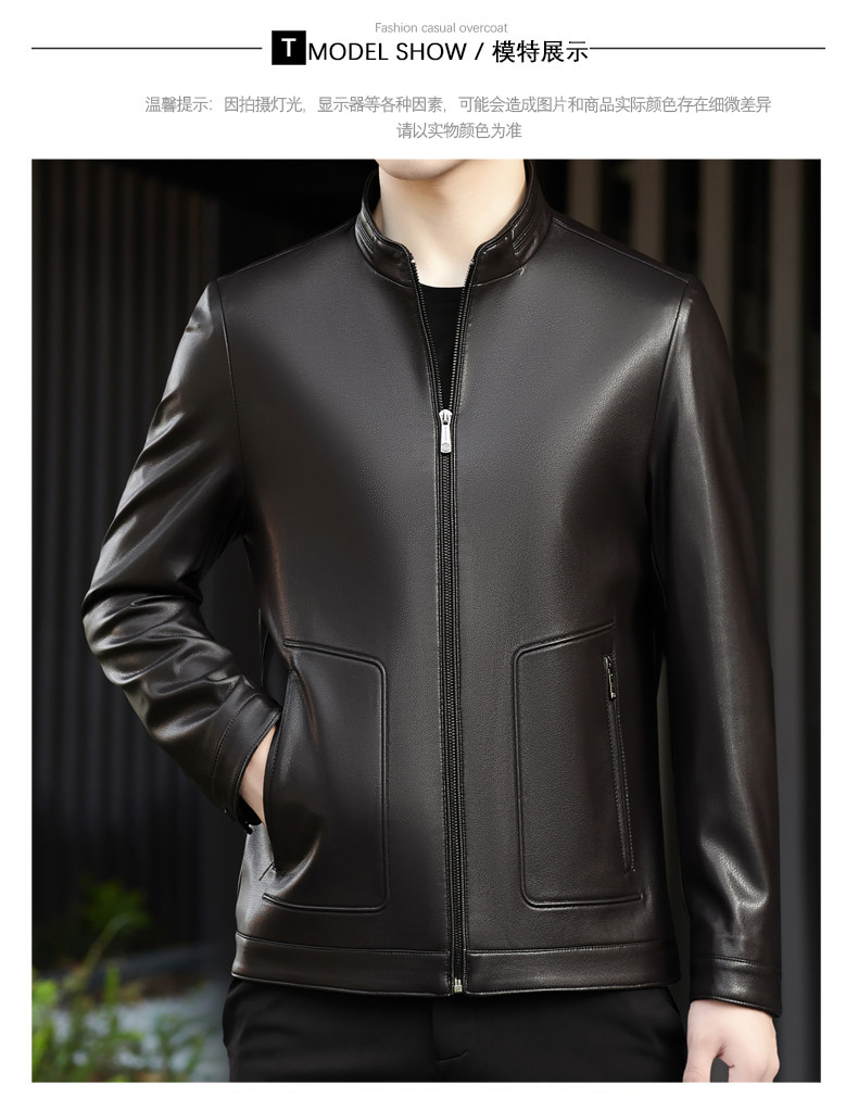 High-End Men's Leather Jacket, New Autumn and Winter Style, Business Casual Stand-Up Collar, Haining Genuine Sheepskin Leather Jacket for Dad