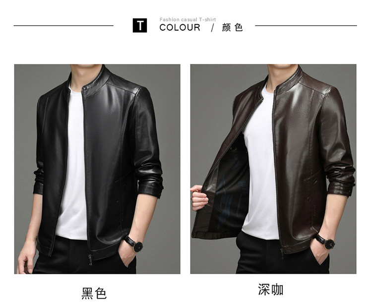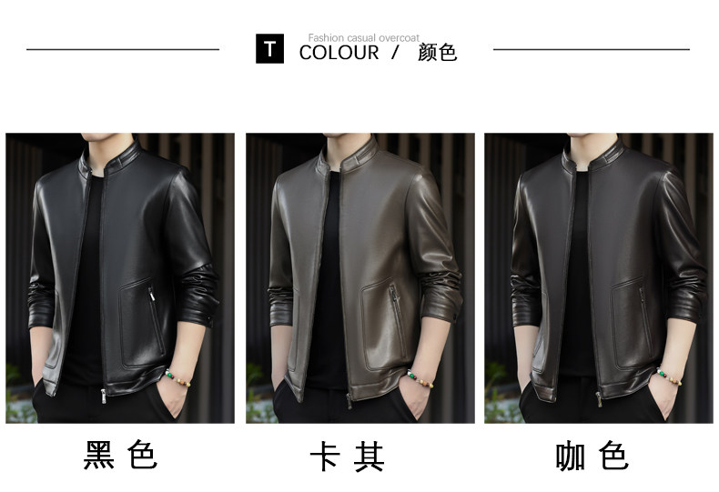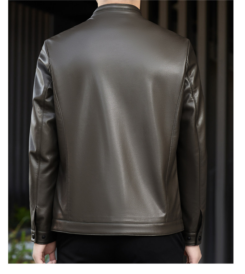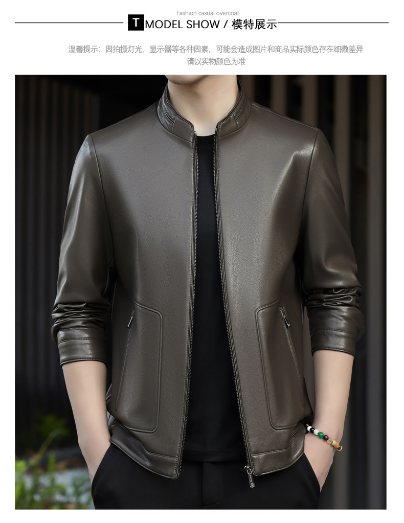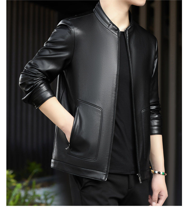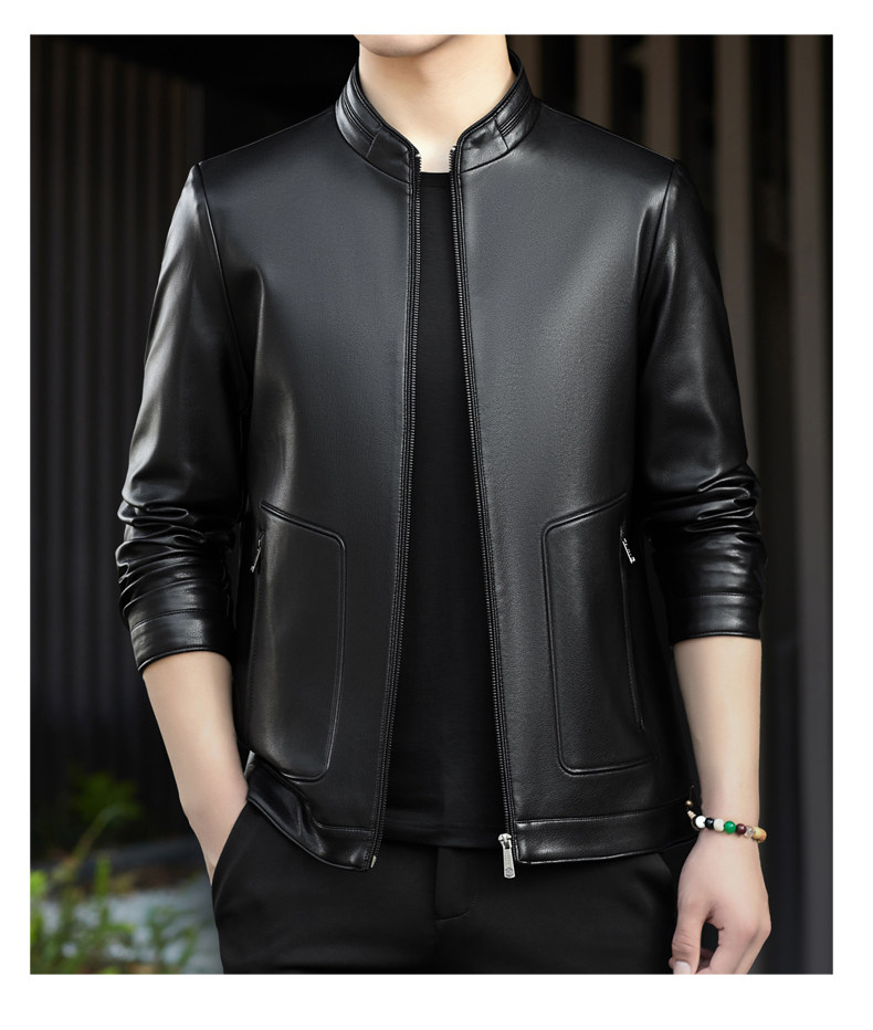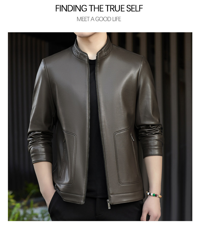 High-End Men's Leather Jacket, New Autumn and Winter Style, Business Casual Stand-Up Collar, Haining Genuine Sheepskin Leather Jacket for Dad