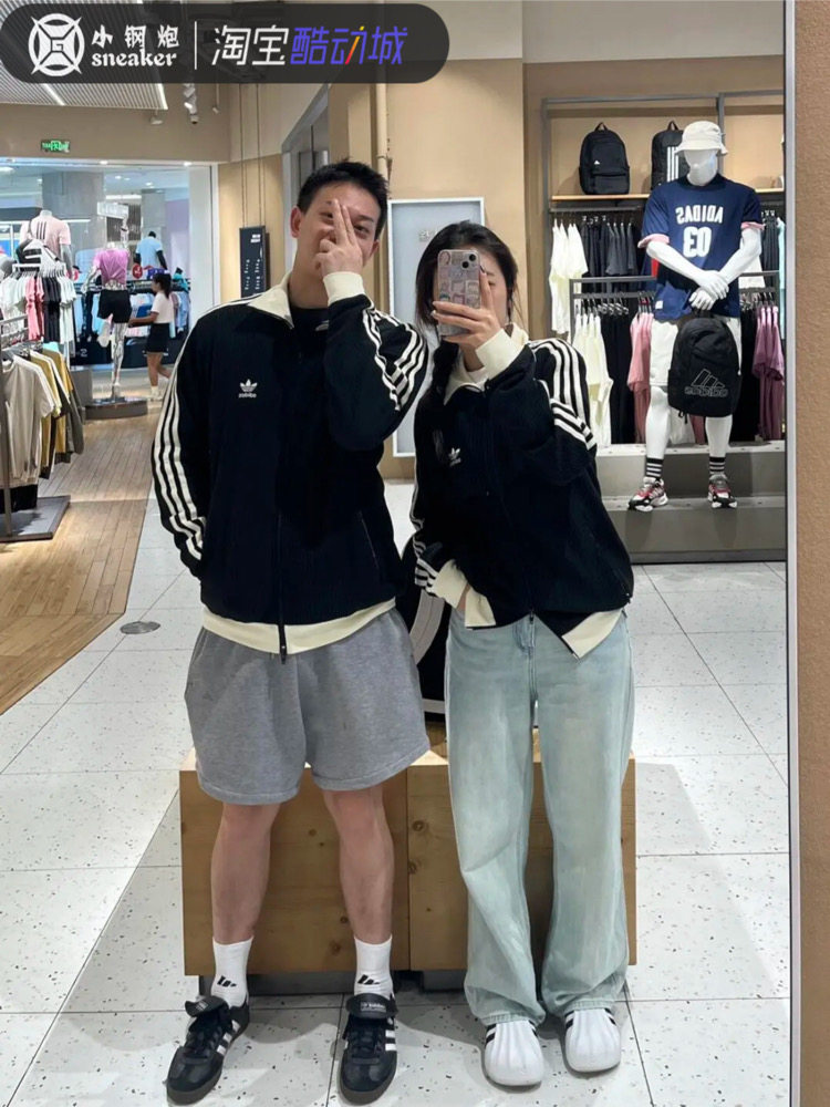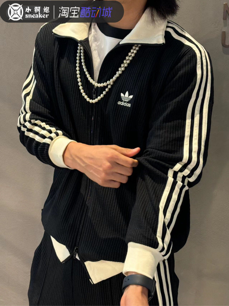 Adidas Trefoil Three-Stripe Waffle Retro Jacket Autumn Unisex Coat Jw0110 Jw0109