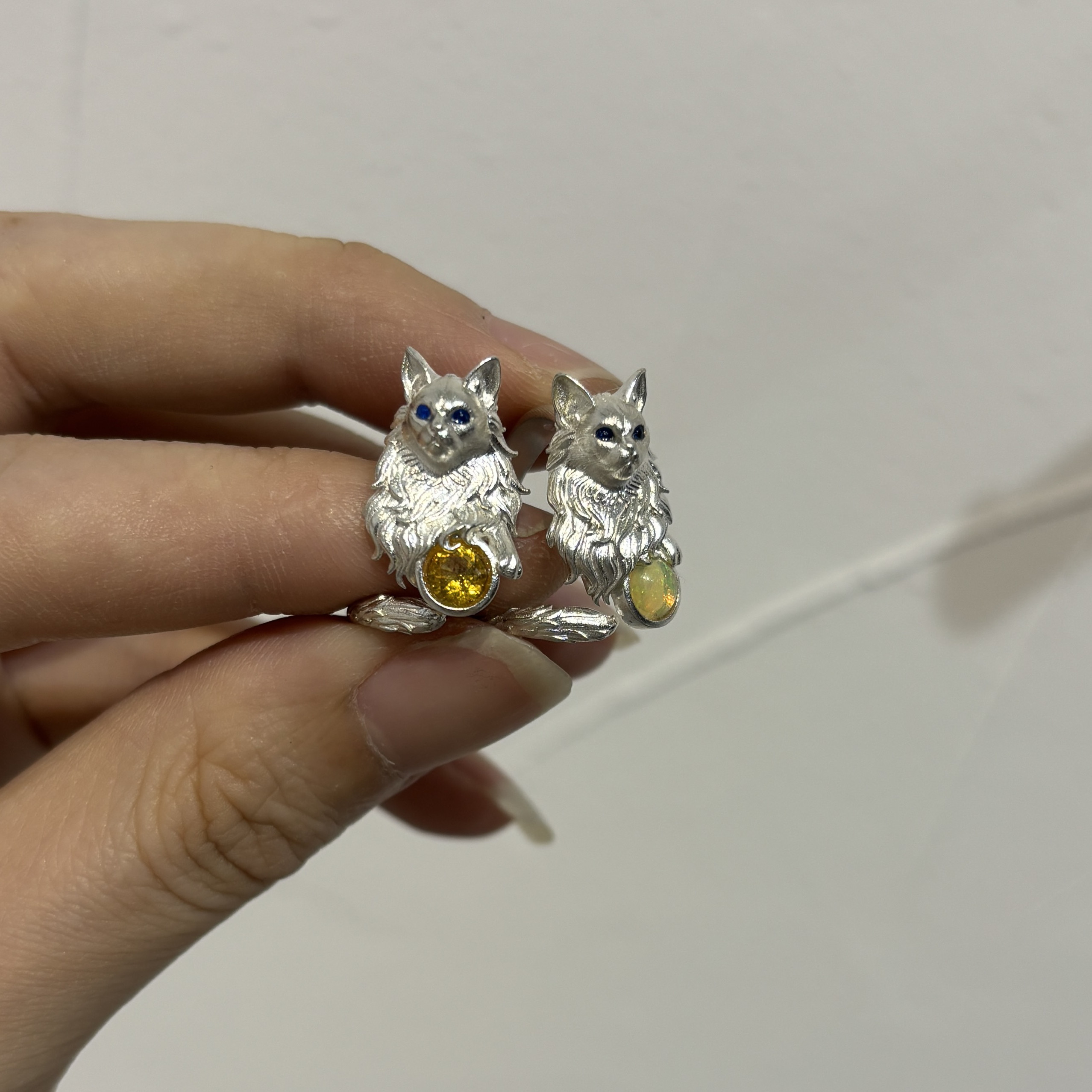 Original S925 Sterling Silver Cat Open Ring with Opal Inlay, Cute Valentine's Day Gift, Creative Niche Index Finger Ring