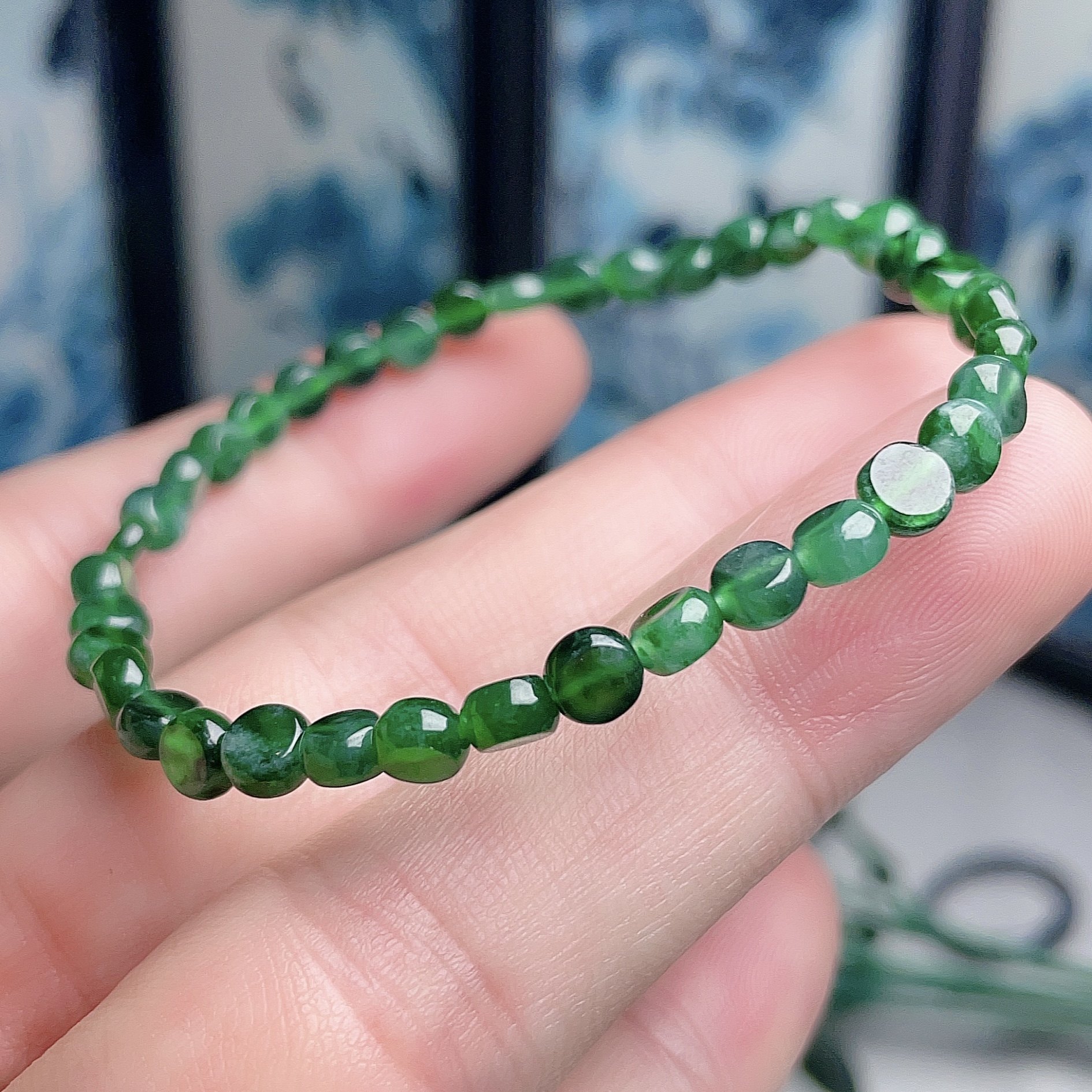 A-Grade Jade Bracelet with Full Green Color, Plain Design, Lake Green, Old Pit Ice Green, Small Peace Pendant, Elegant for Hand Holding and Play