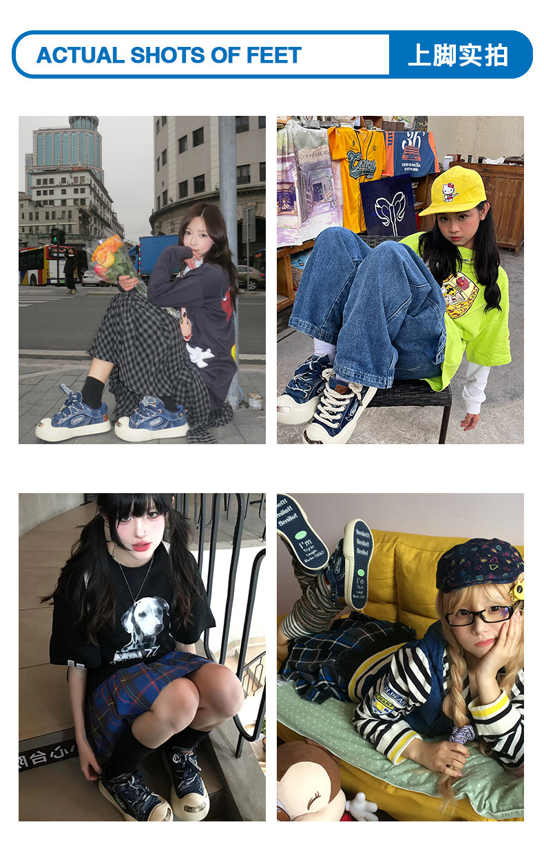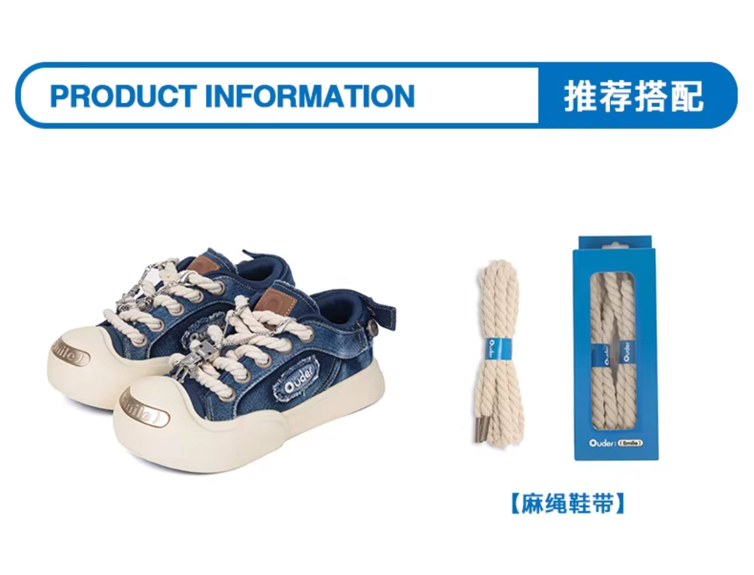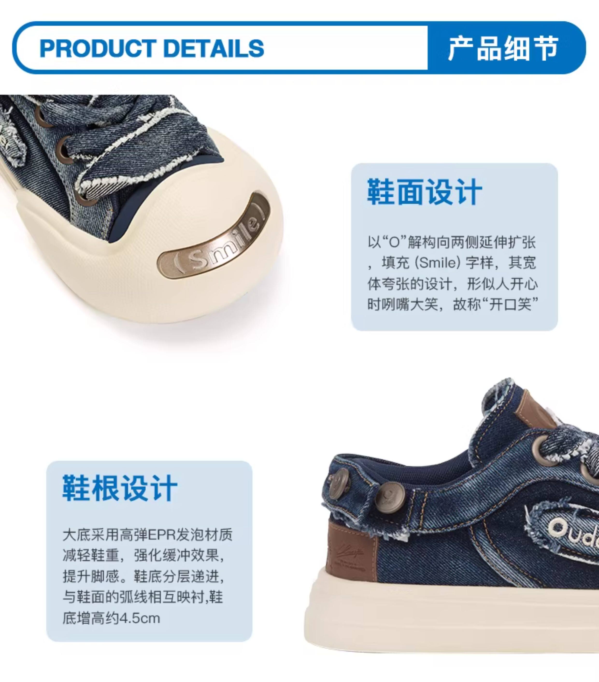 【Same Style as Zuo Hang】Ouder Smiler Open-Toe Canvas Shoes, Round-Toe Quirky Sneakers, Denim Chunky Shoes