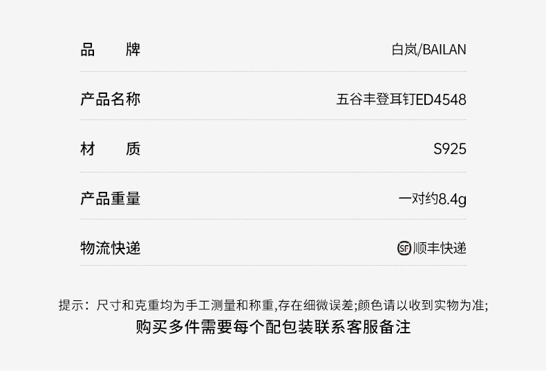 Bailan Five Grains Abundance Earrings 925 Silver Women's Earrings Unique Design Commuting Versatile Ear Clips Ed4548