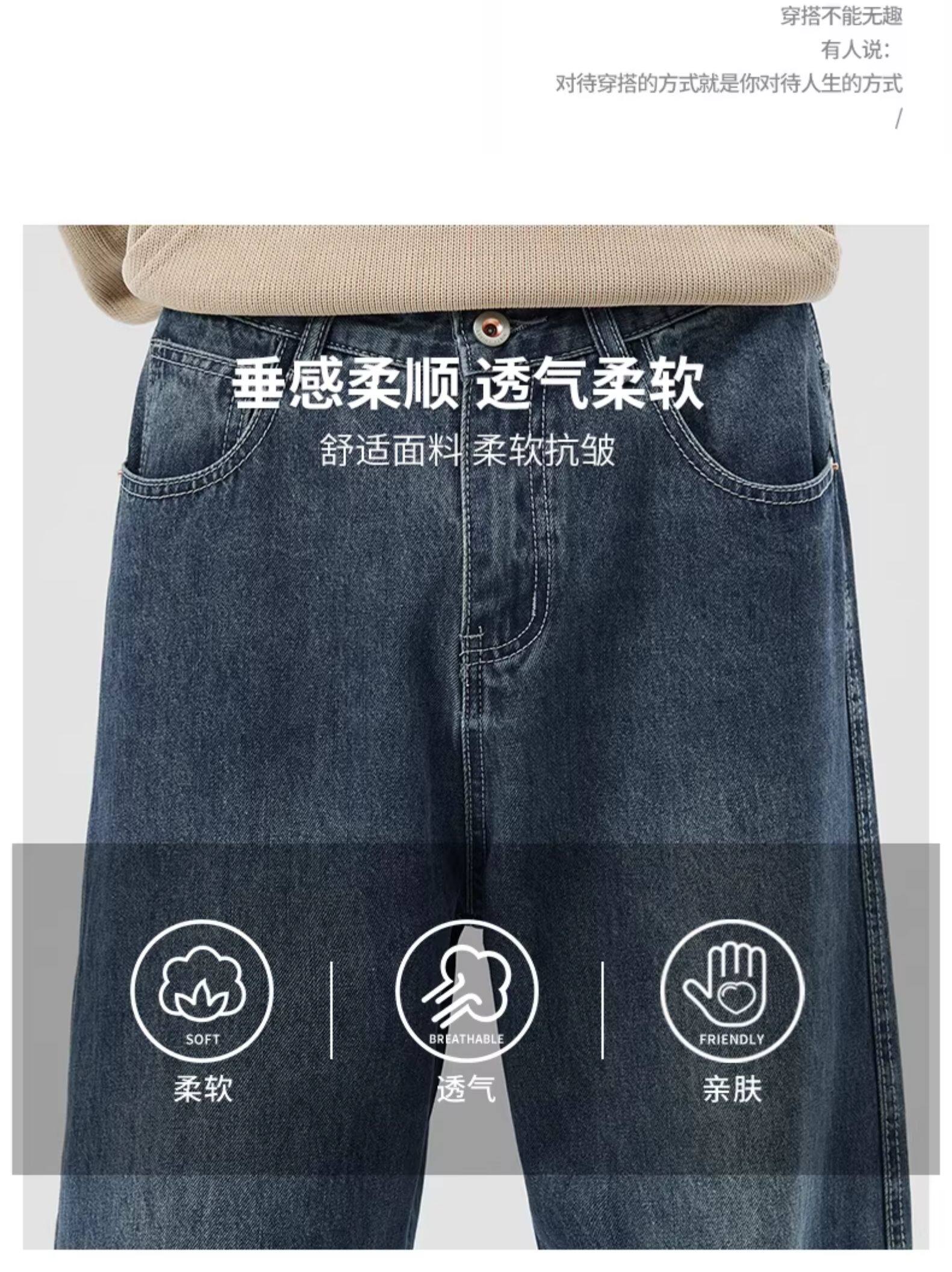 Paulfrank/American Retro Jeans for Men 2026 Spring Straight Loose Wide-Leg Casual Pants