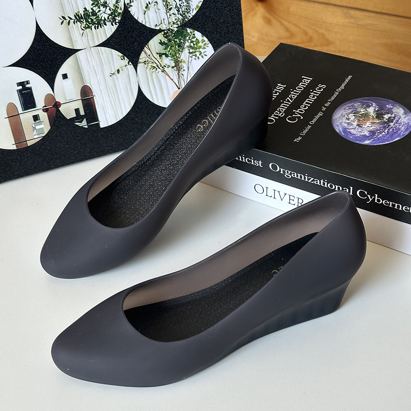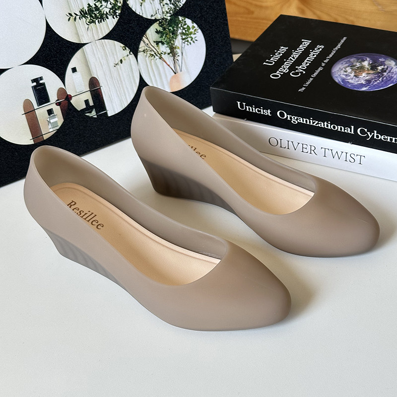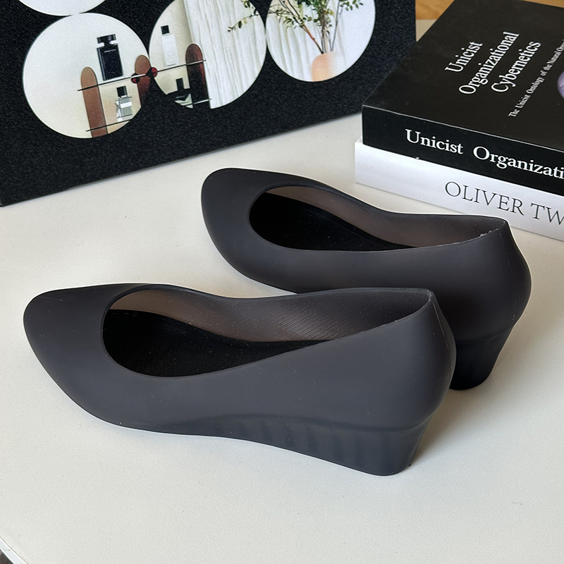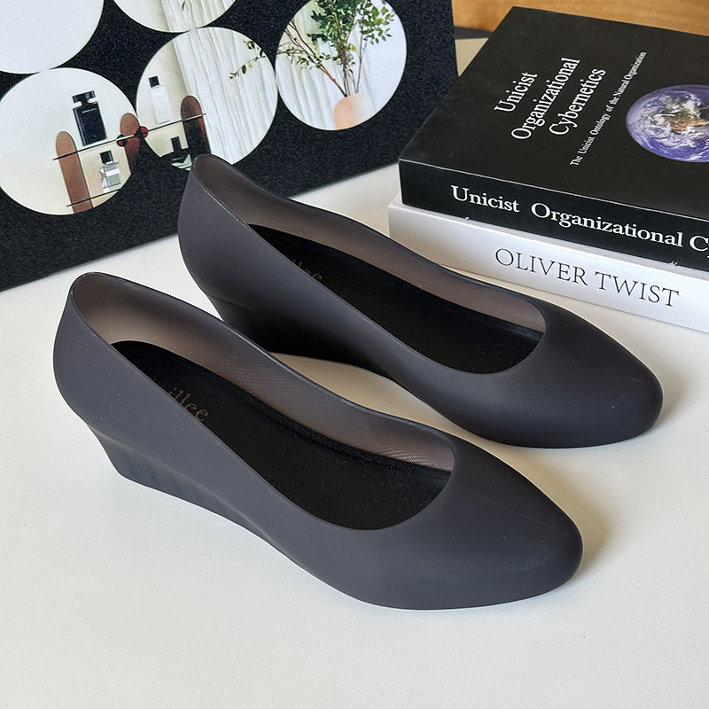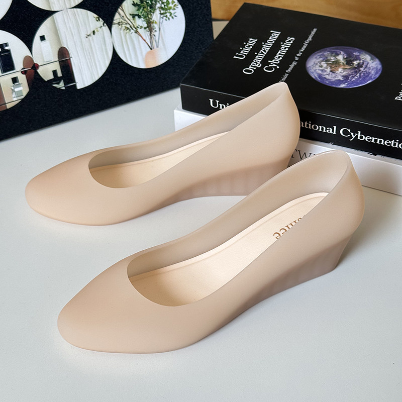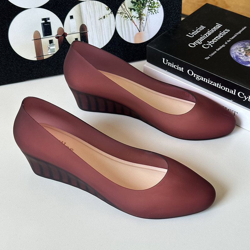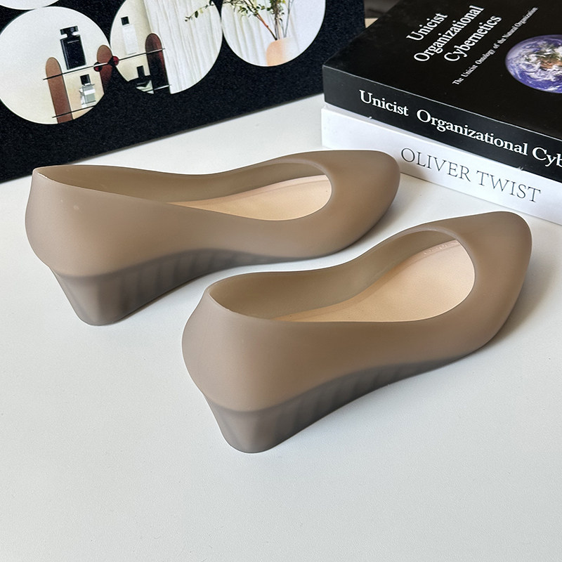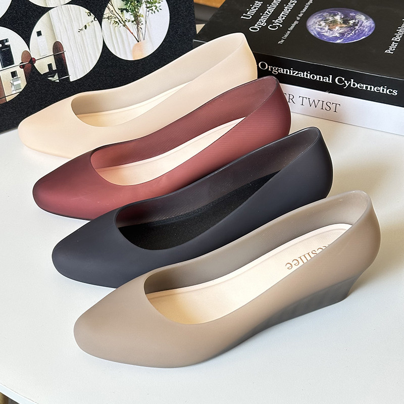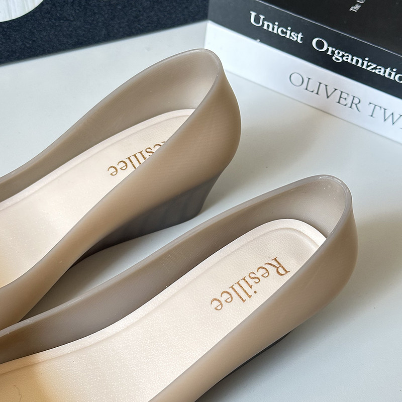 2025 Summer New Wedge Heel Closed-Toe Casual Sandals for Women, Waterproof Beach Rain Shoes, Soft Surface Plastic Shallow Jelly Shoes