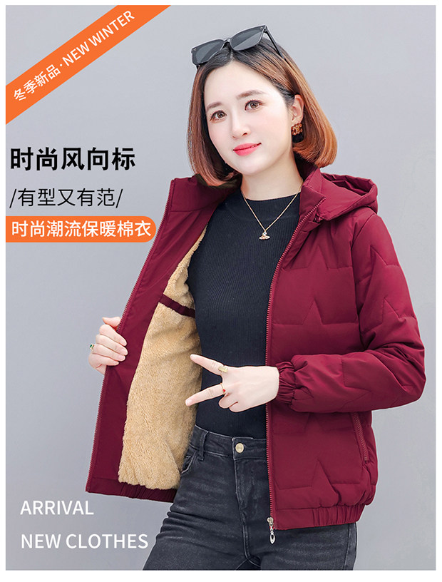 Woodpecker Brand Fleece-Lined Cotton Jacket for Women, Short Style, 2025 New Winter Clothing, Thickened and Warm Cotton Coat for Middle-Aged Mothers