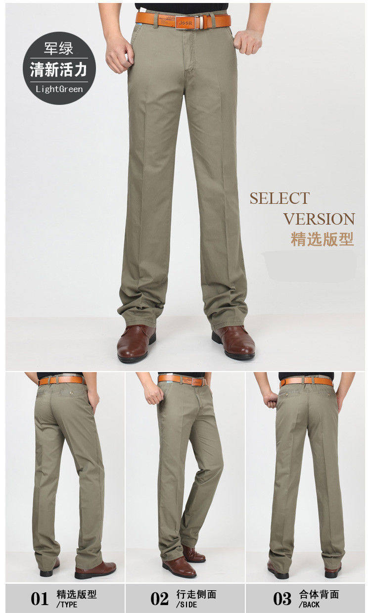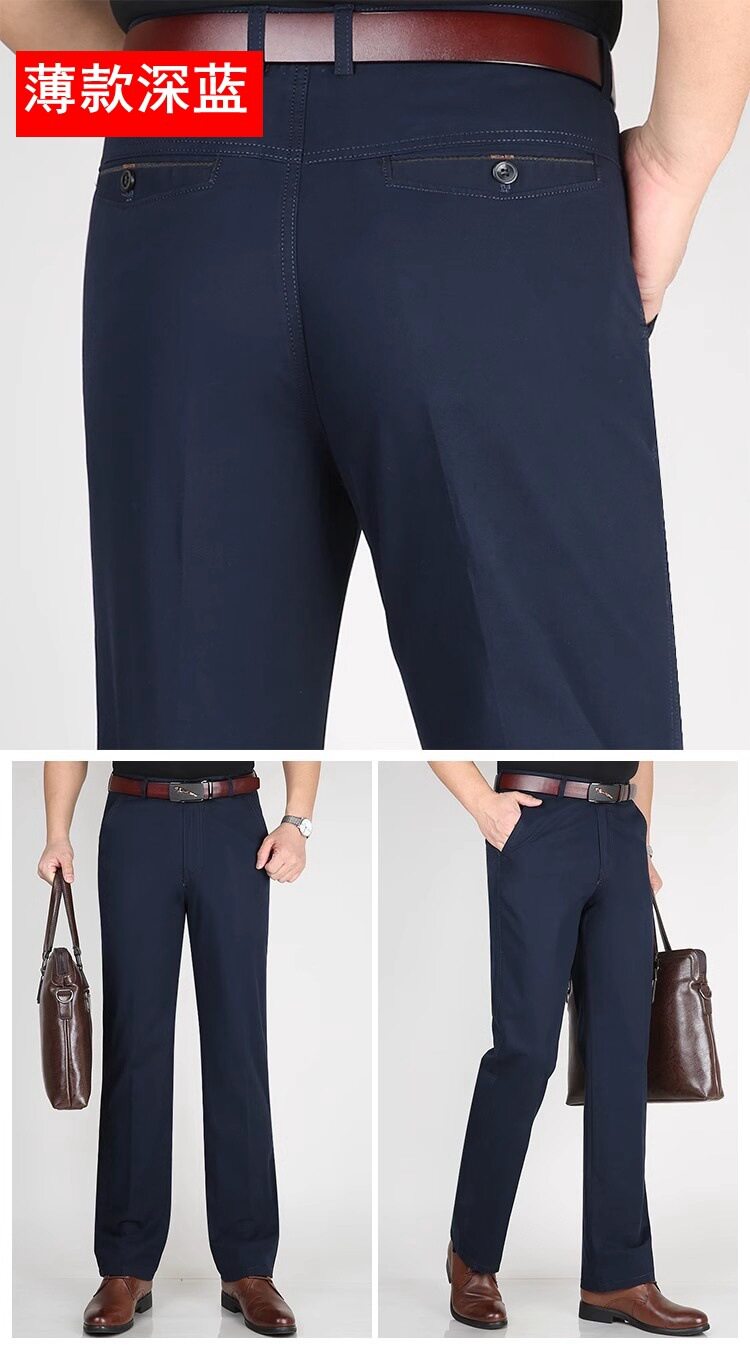 Men's Summer Cotton Dress Pants, Dad Pants, Loose Fit, Deep Rise, Wrinkle-Resistant, Casual Pants for Middle-Aged and Elderly Men, Guaranteed to Last Ten Years