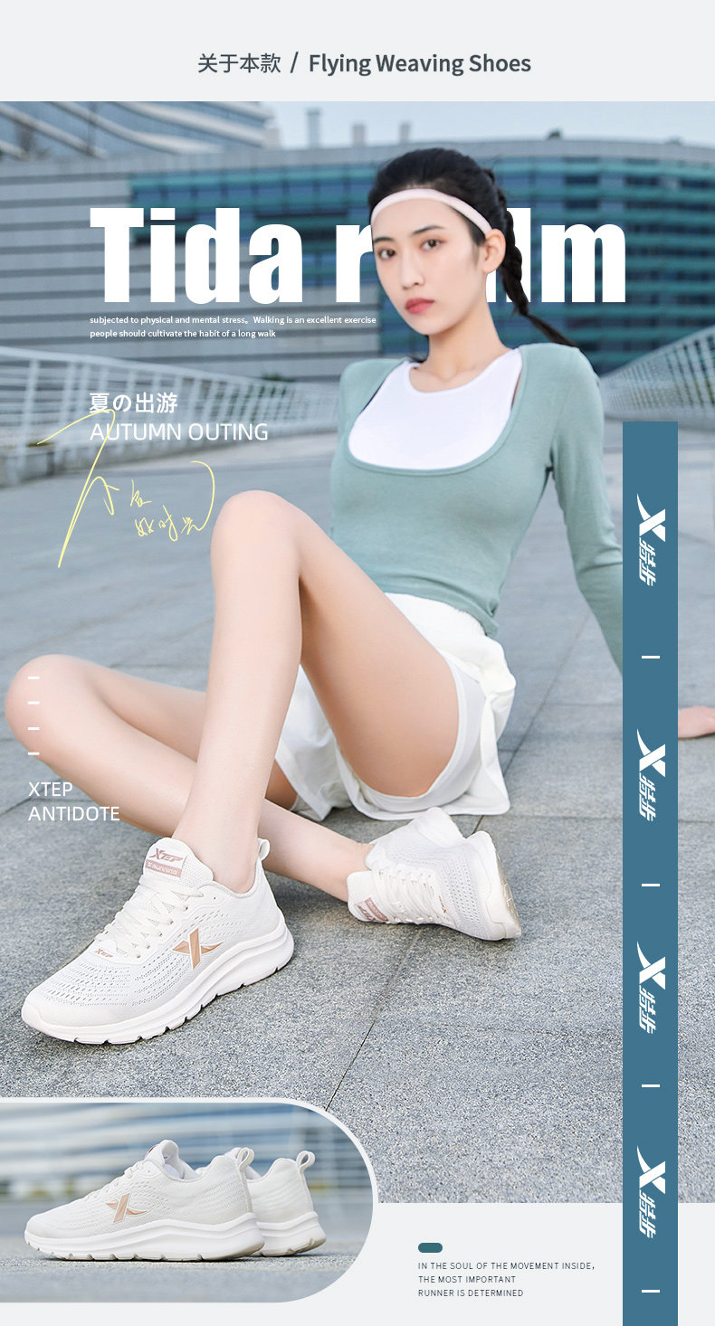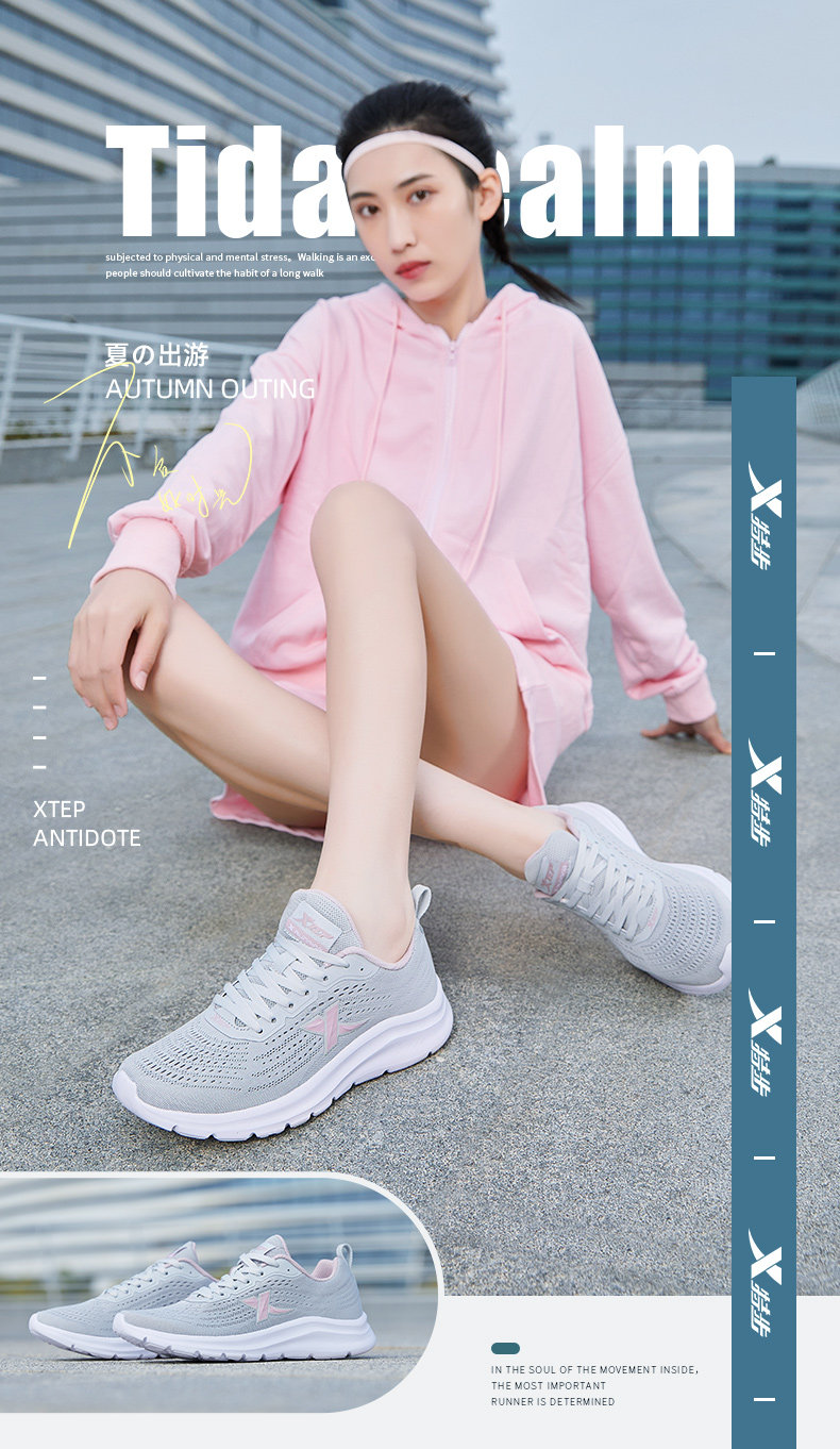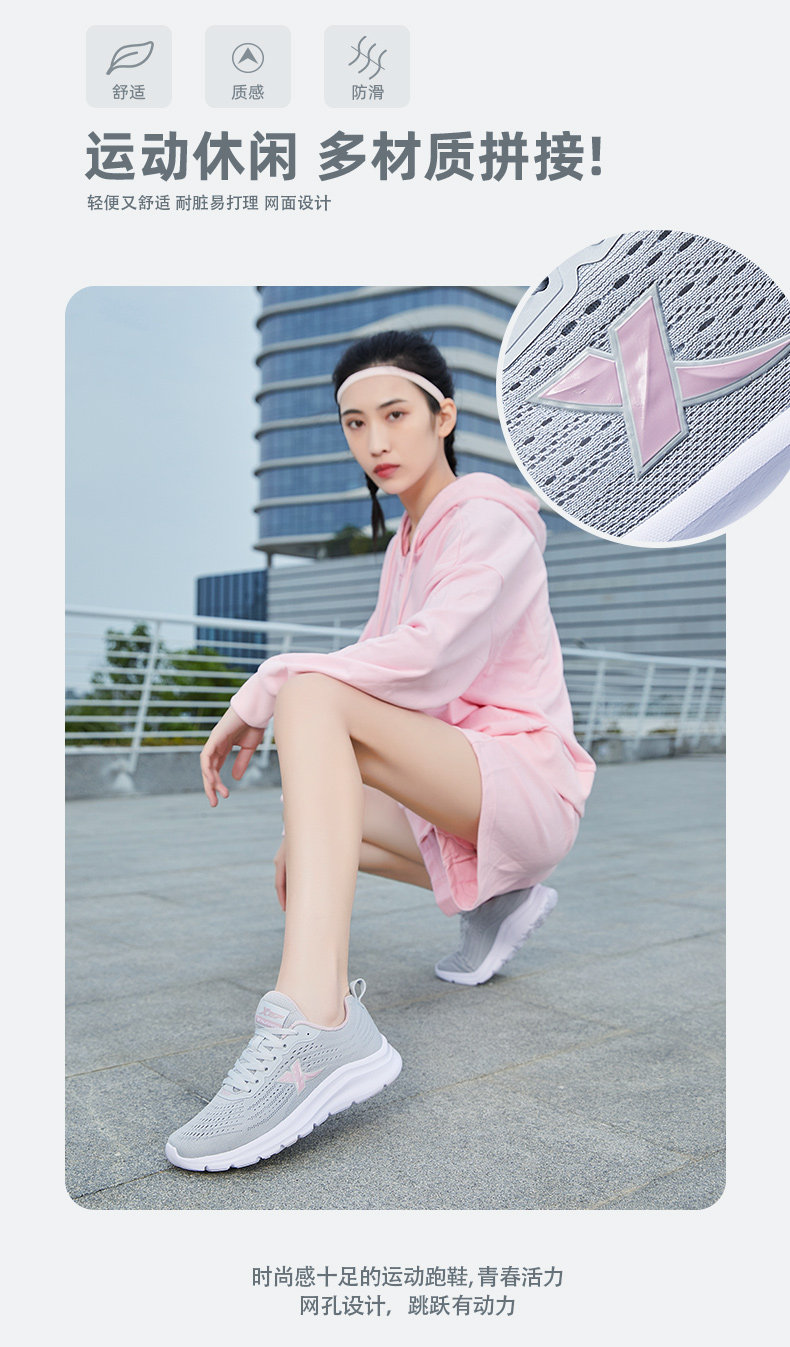 Xtep Women's Shoes 2026 New Model Mesh Breathable Sports Shoes for Middle School Students, Shock-Absorbing Running Shoes