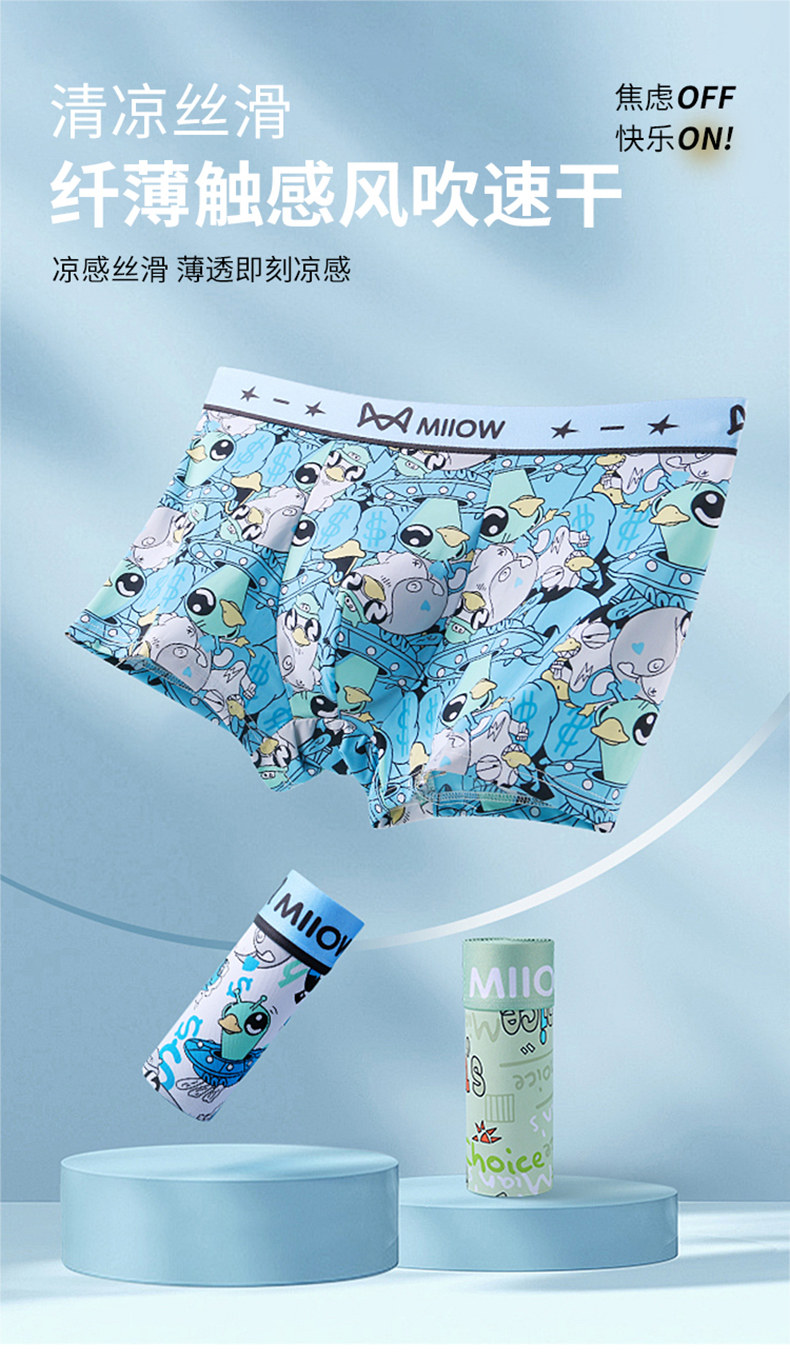 Cat-Themed Men's Underwear, Summer Ice Silk, Cartoon Cute, Quick-Drying, Sports, Large Size, Boxer Shorts, 2026 New Model