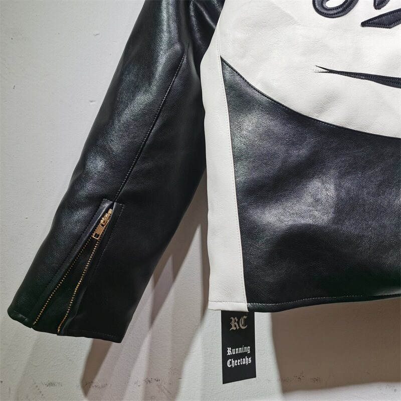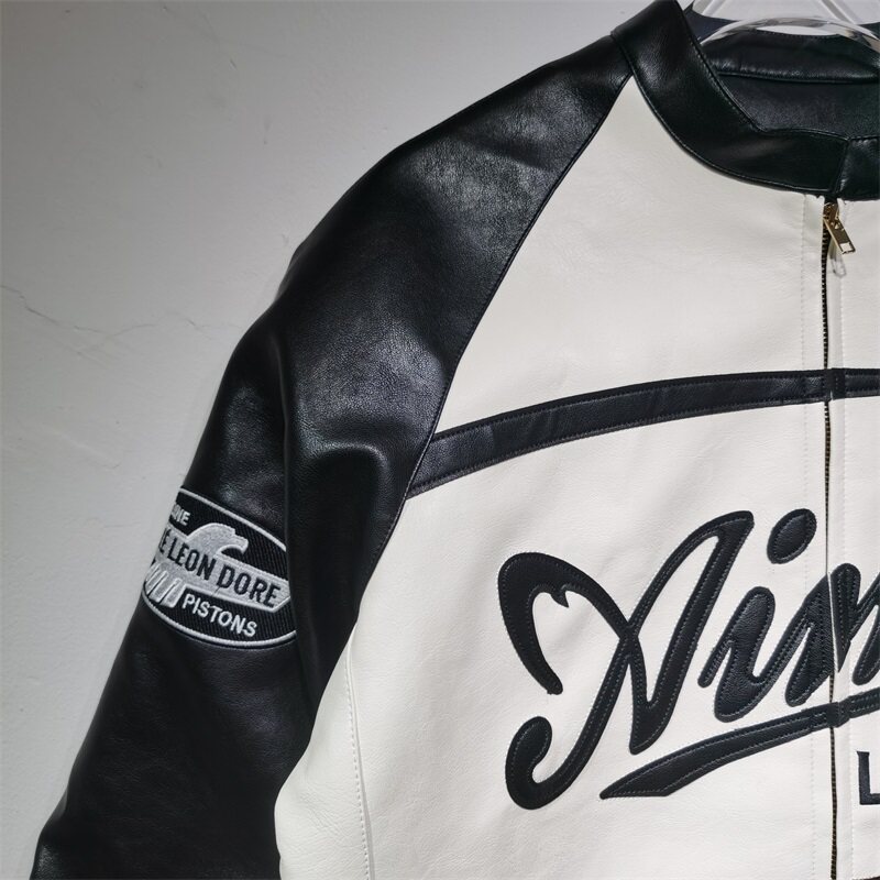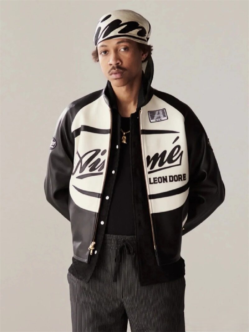 Aime Leon Dore Leather Jacket Greek Style King Fashion Brand Biker Jacket Embroidered Patchwork Unisex Bf Coat