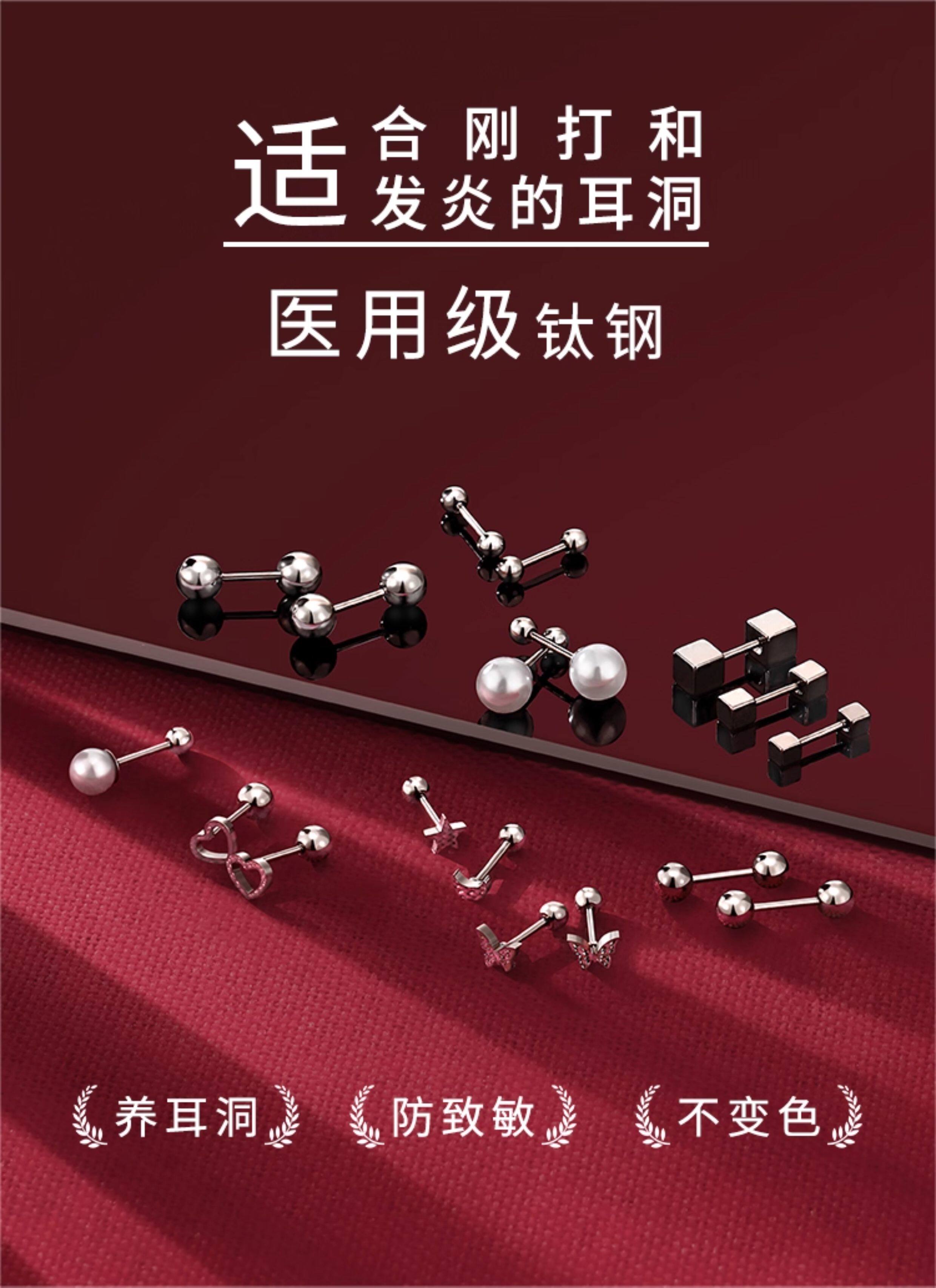 Medical Titanium Steel Earrings for Women, Hypoallergenic, Post-Surgery Ear Piercing Earrings, Sleep Without Removing, Titanium Alloy Ear Bone Studs, Cochlear Studs