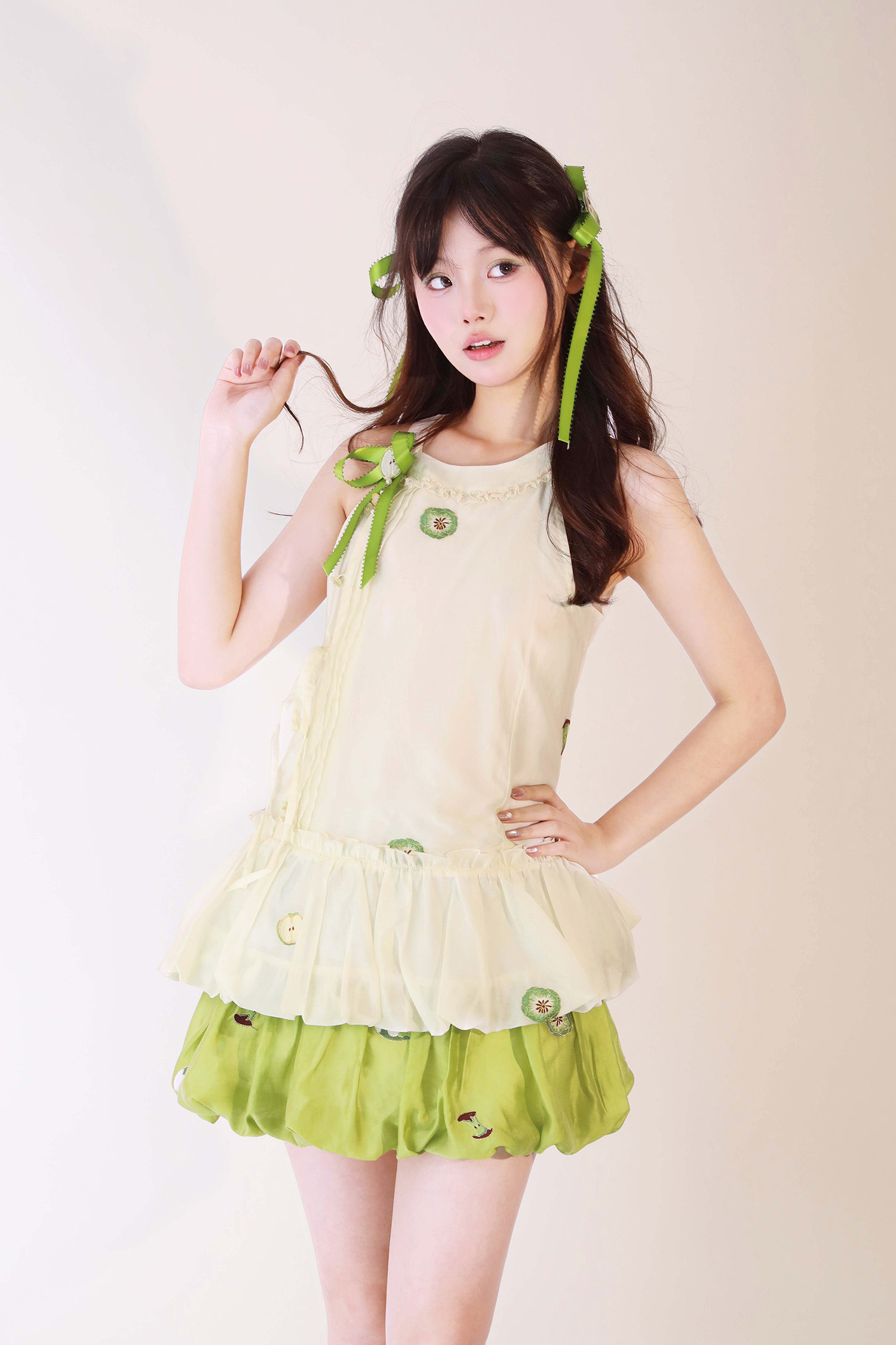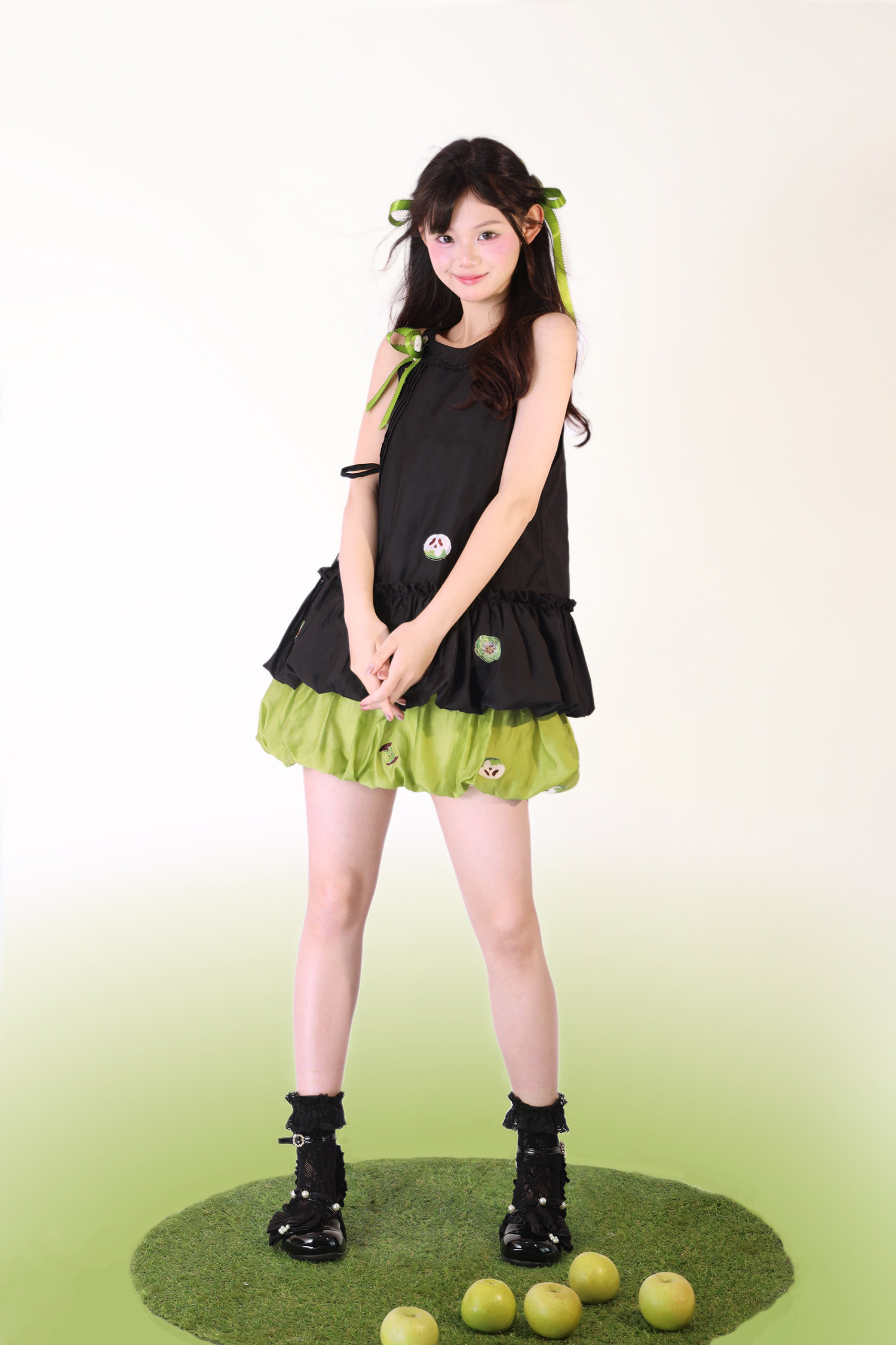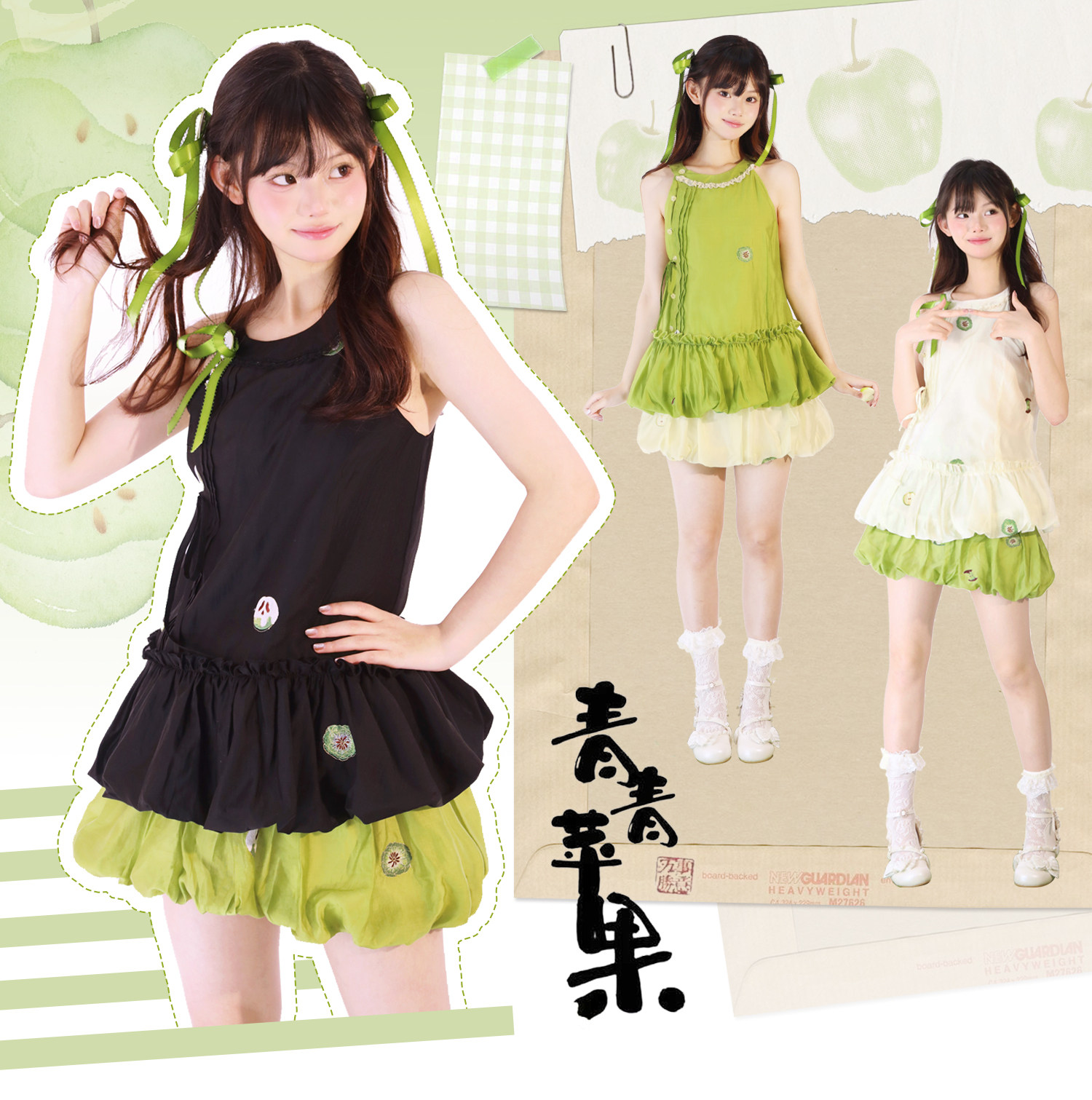 【Green Apple】Flower Bud Skirt Set Full Set Link - Improved Han Element Flower Bud Skirt Sleeveless Top