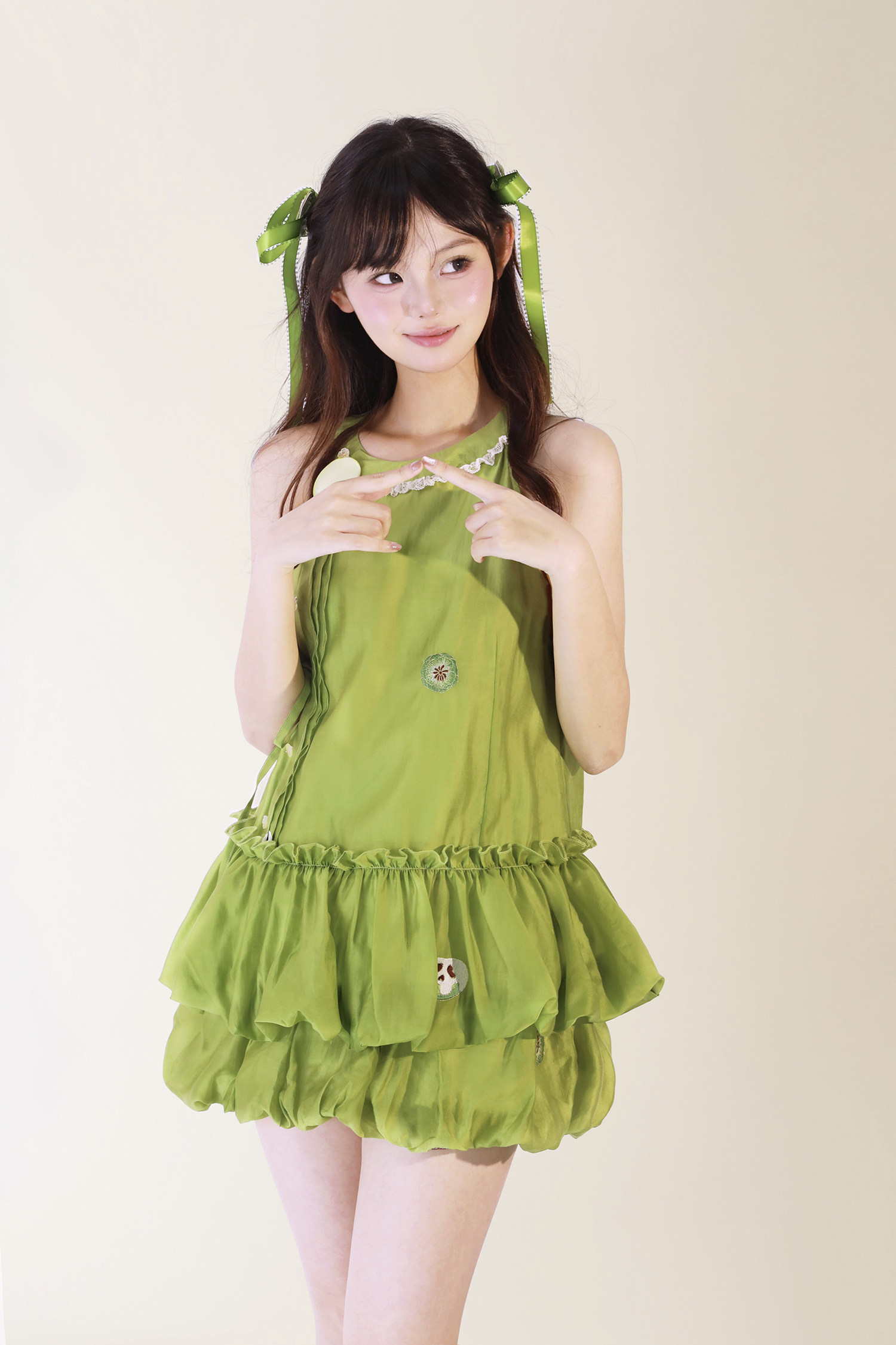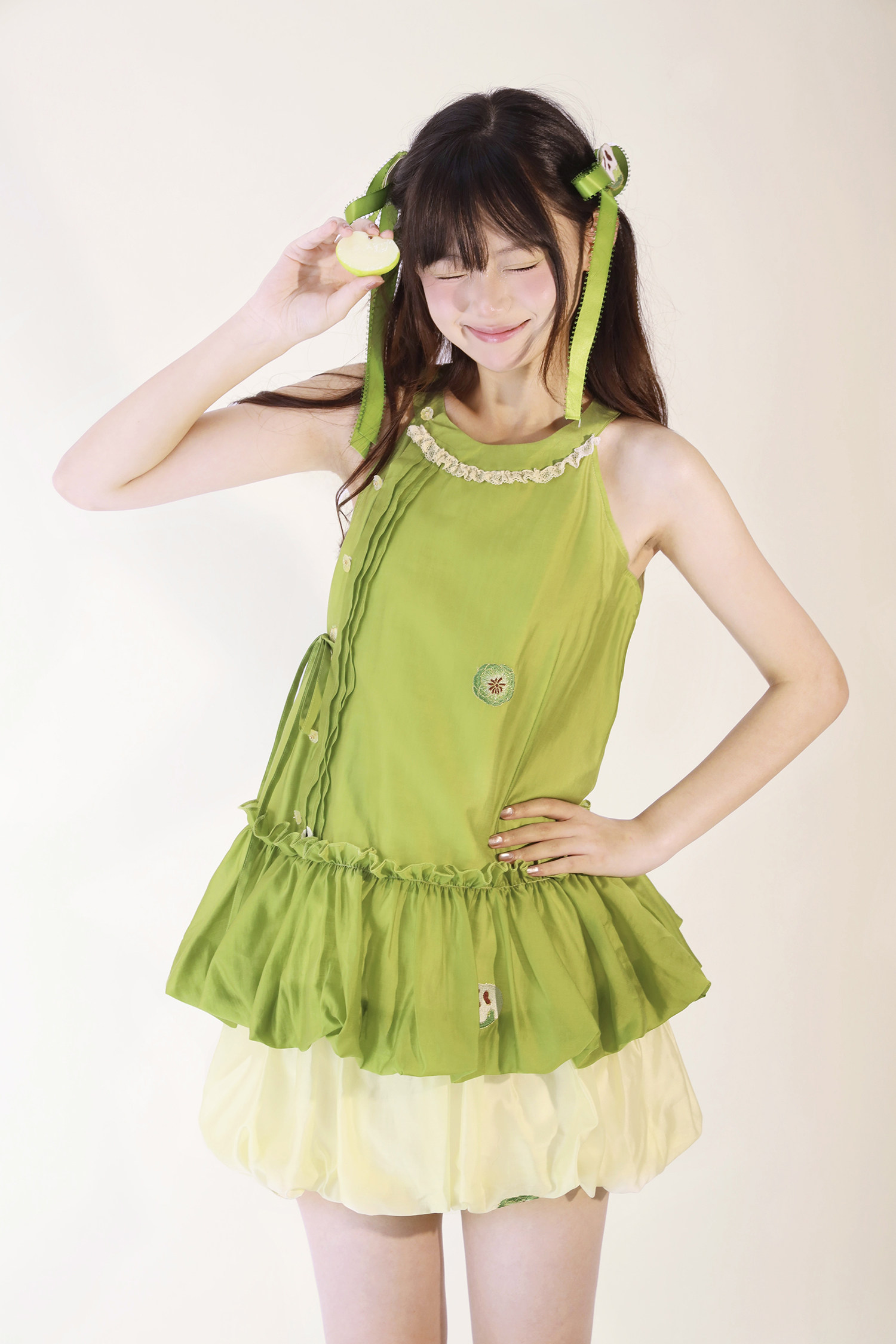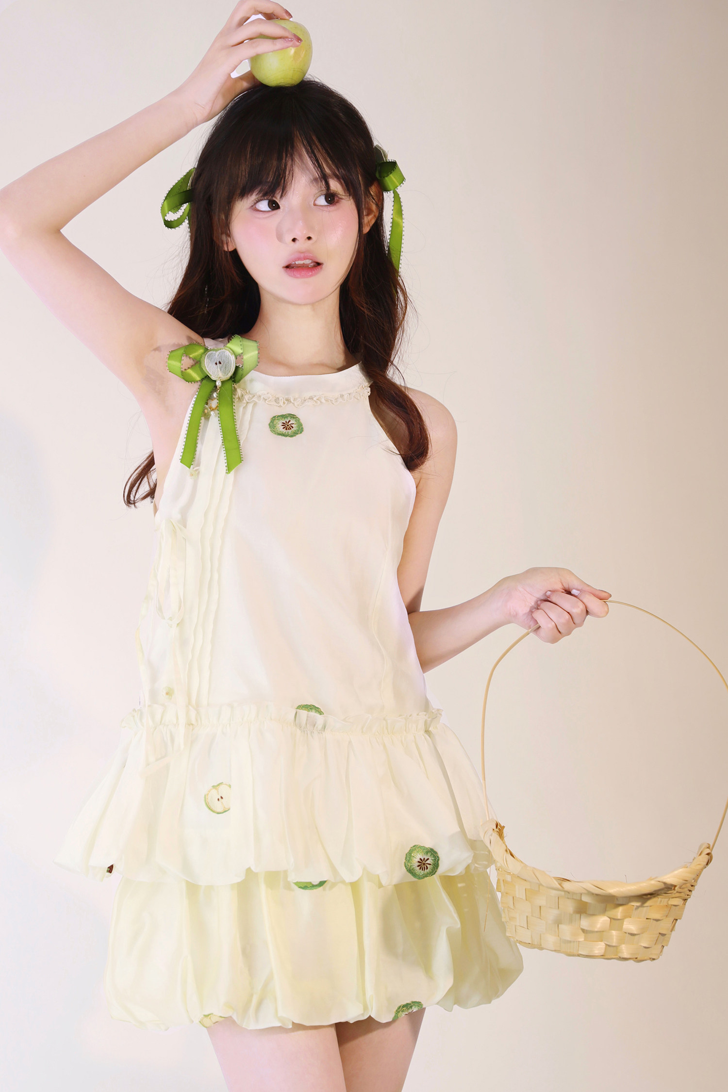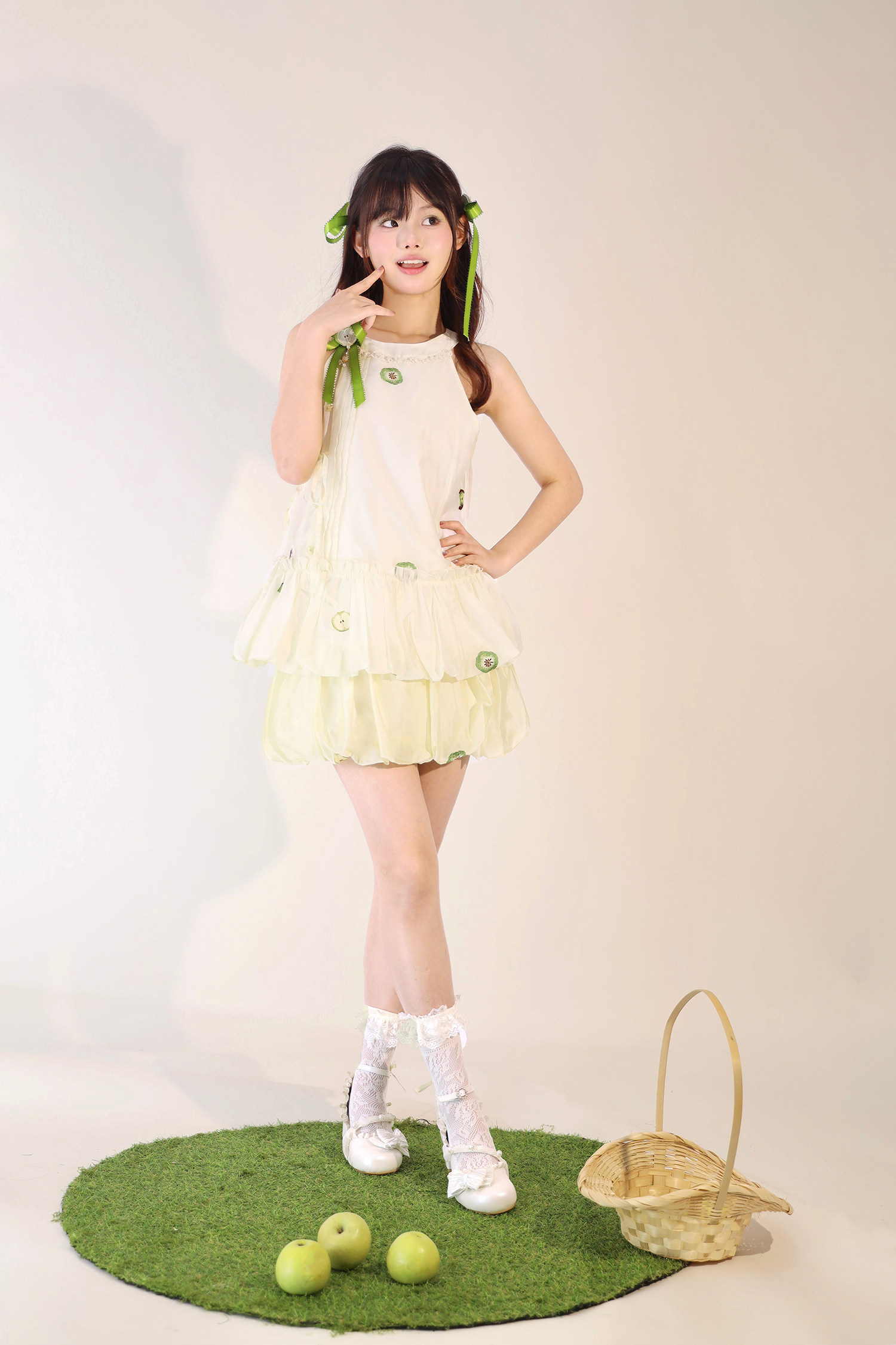 【Green Apple】Flower Bud Skirt Set Full Set Link - Improved Han Element Flower Bud Skirt Sleeveless Top