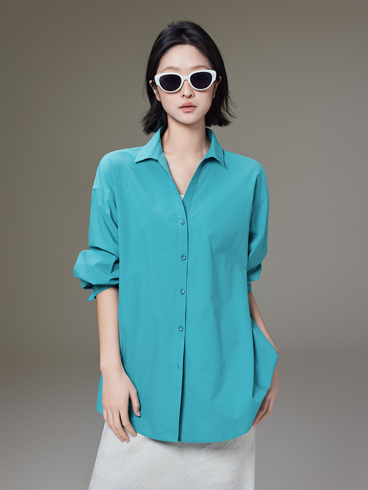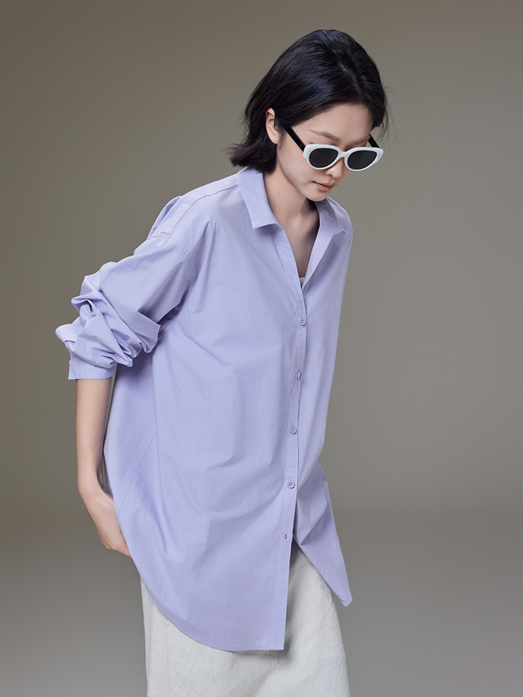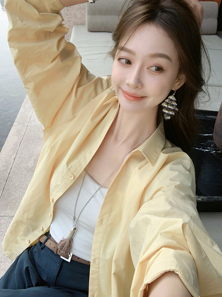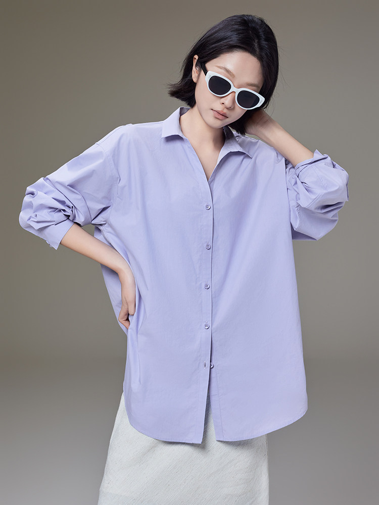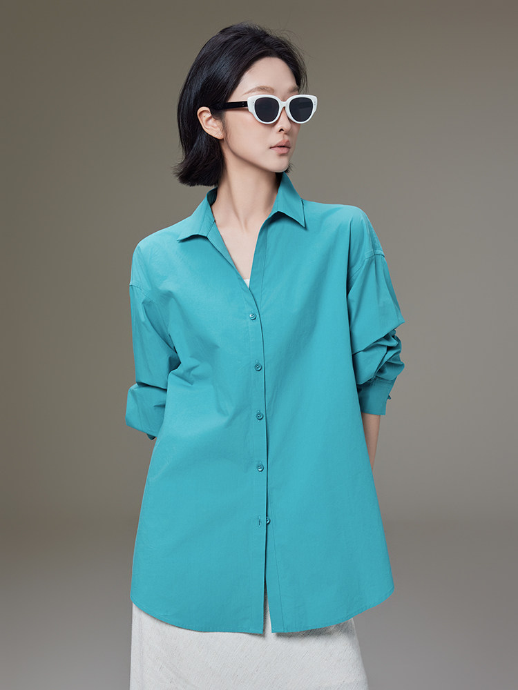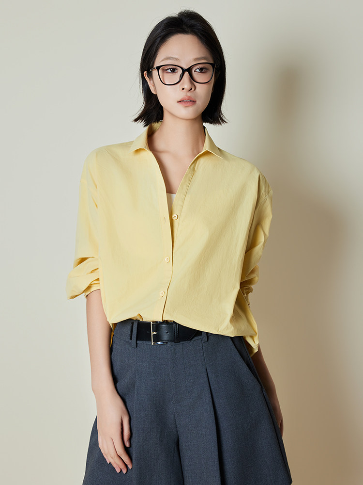 Meiyang【In Stock】Lightyear Shirt Energetic Dopamine Wrinkle Texture High-Thread-Count Cotton Loose Long-Sleeve Shirt