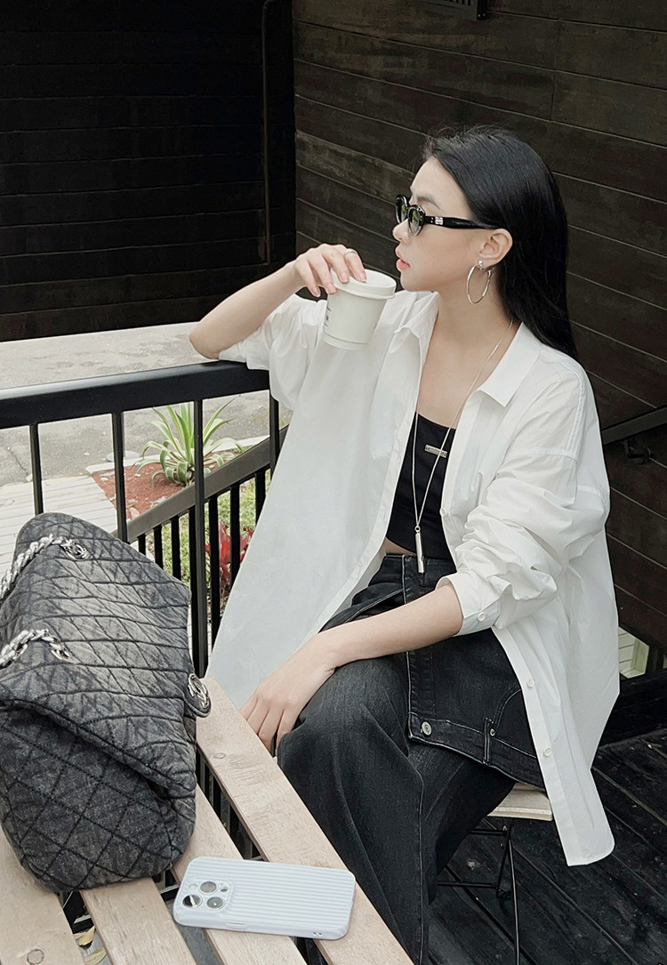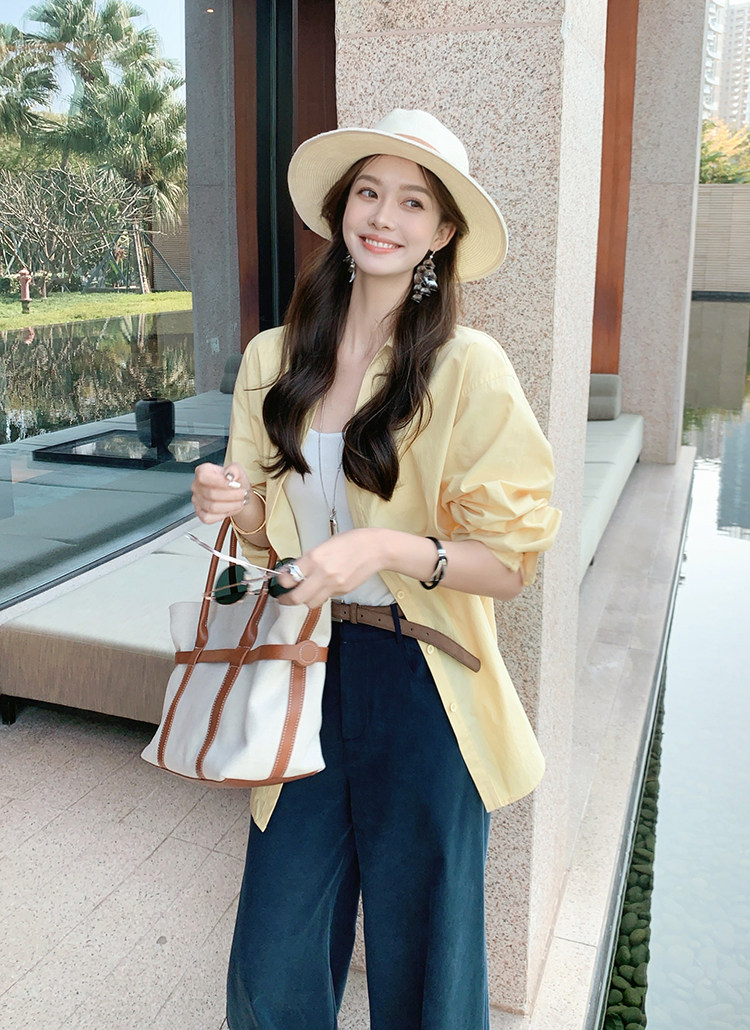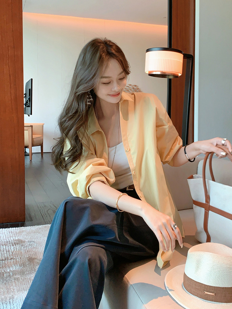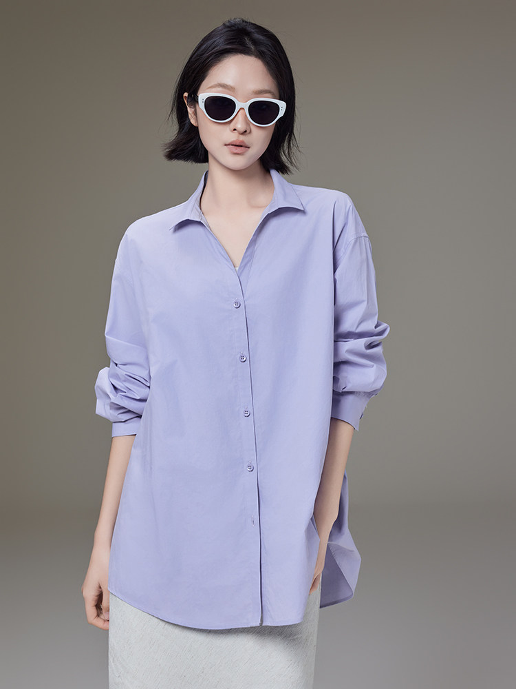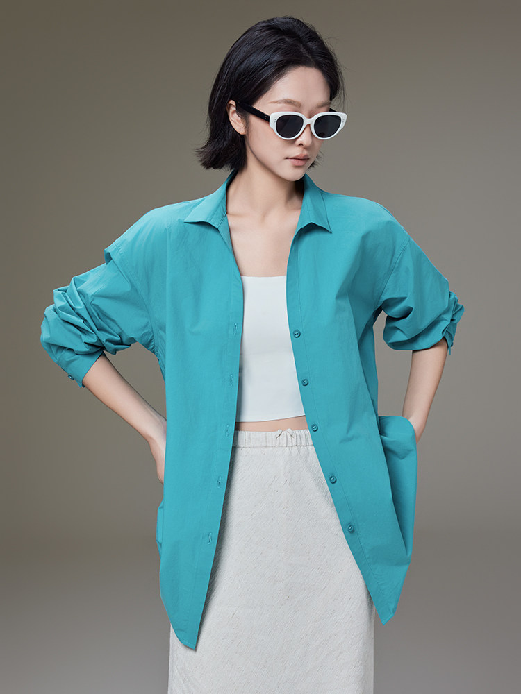 Meiyang【In Stock】Lightyear Shirt Energetic Dopamine Wrinkle Texture High-Thread-Count Cotton Loose Long-Sleeve Shirt