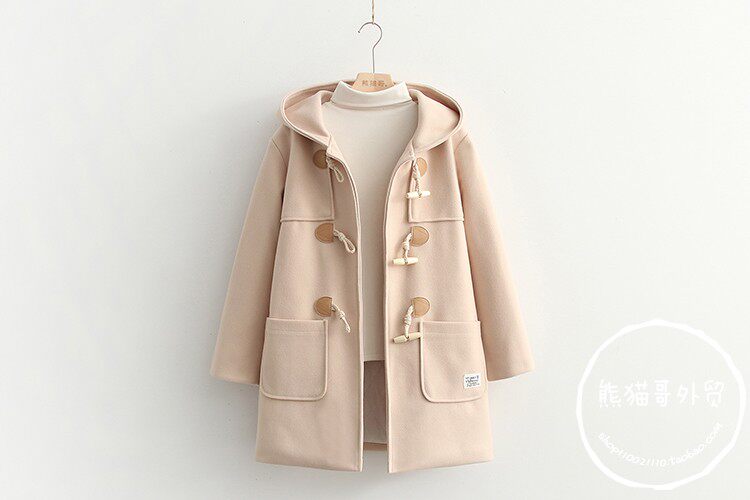 College Style Double-Breasted Toggle Button Mid-Length Woolen Coat for Women 2025 Spring and Autumn New Japanese Style Student Thickened Overcoat