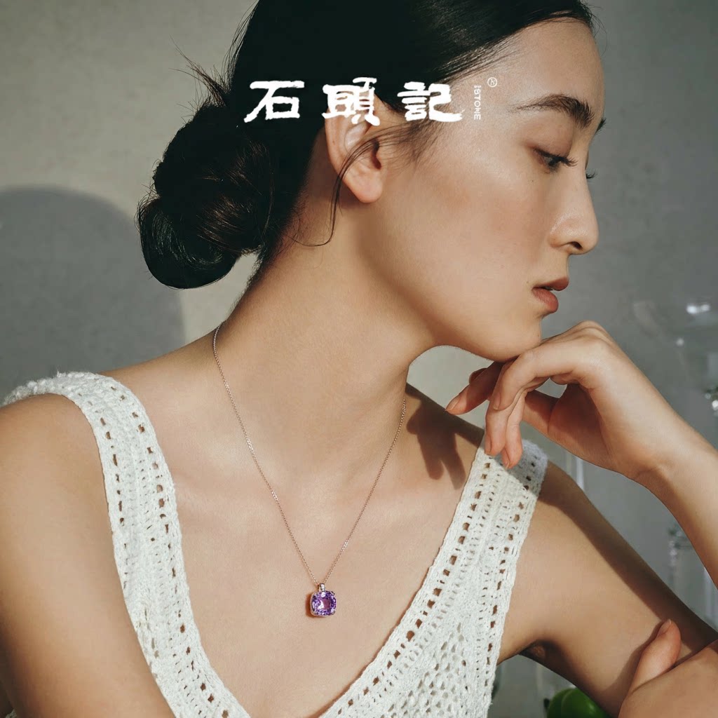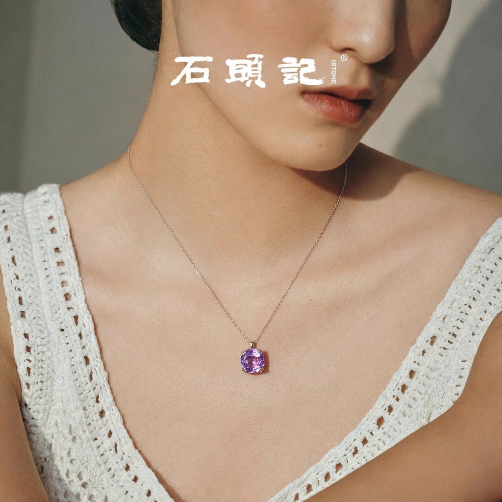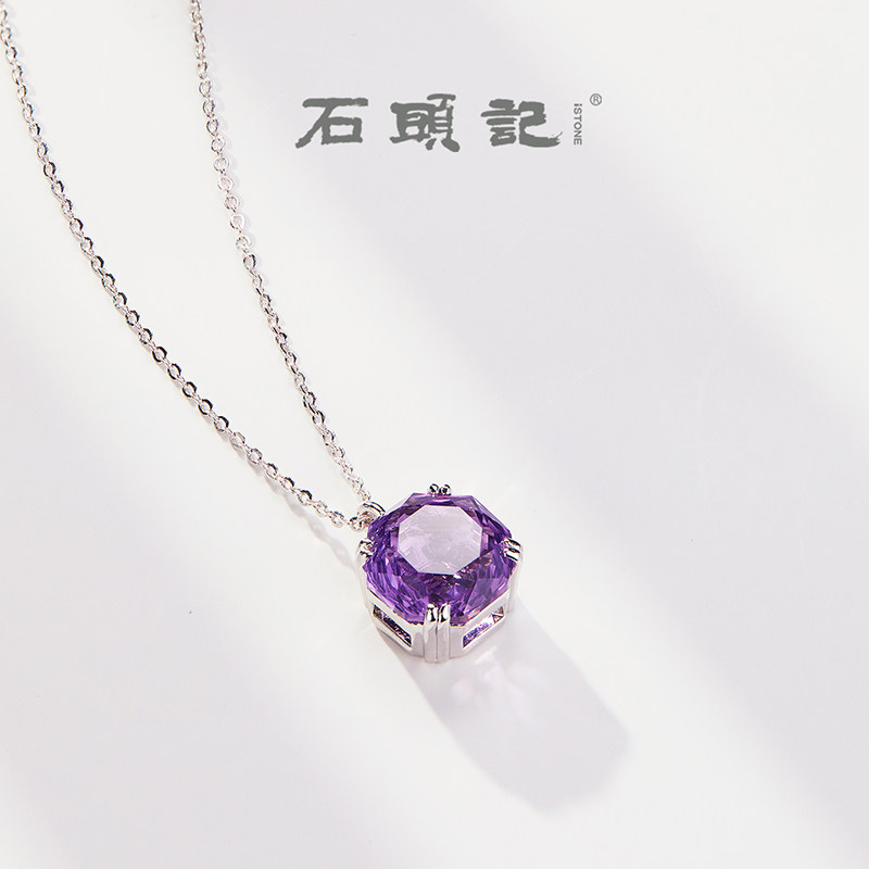 iSTONE Rose Cut White Crystal Necklace Topaz Sterling Silver Light Luxury High-End Amethyst Necklace