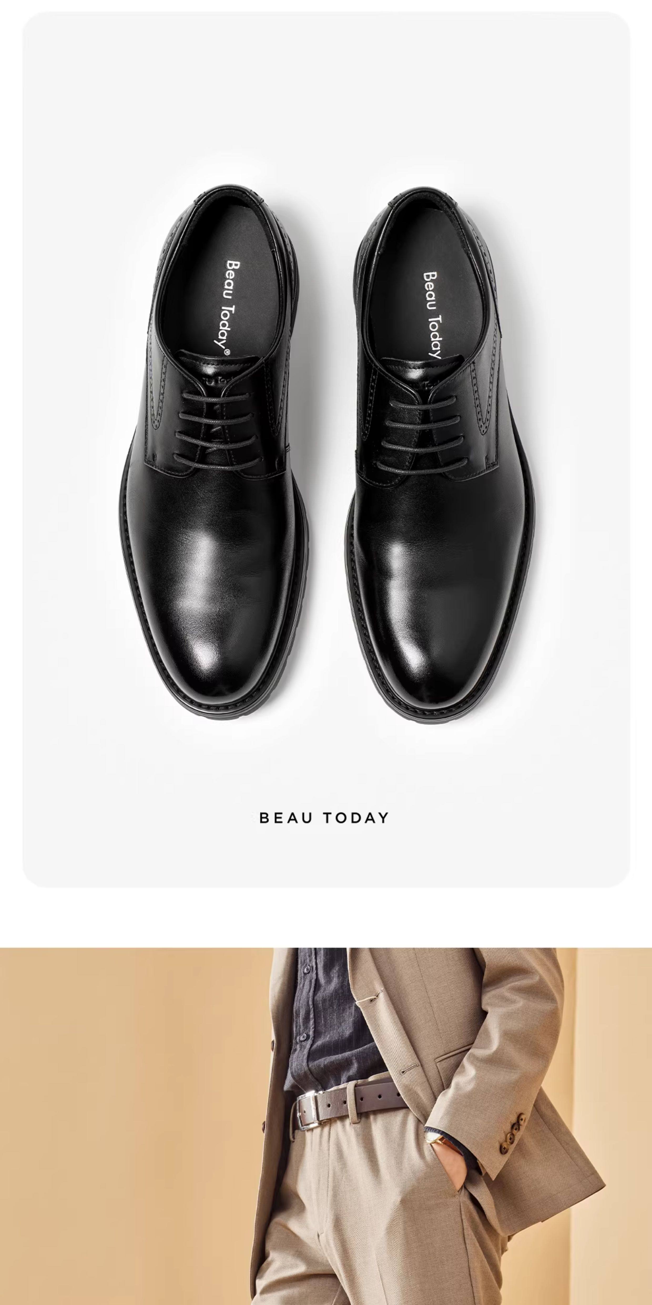 【First Layer Calfskin】Beautoday Leather Shoes for Men, Formal Business Derby Shoes, High-End Feel for Weddings and Grooms