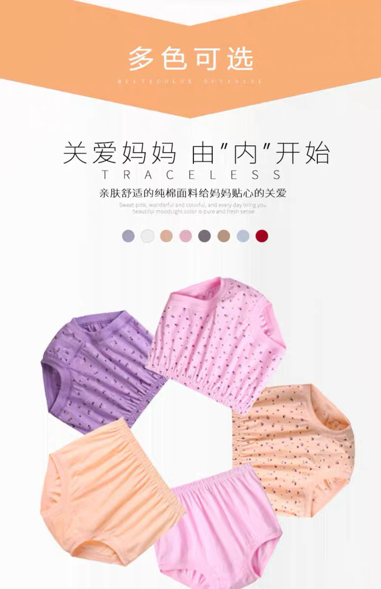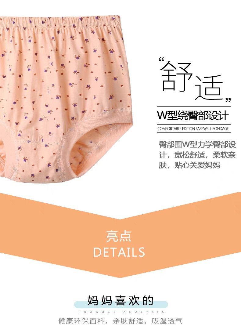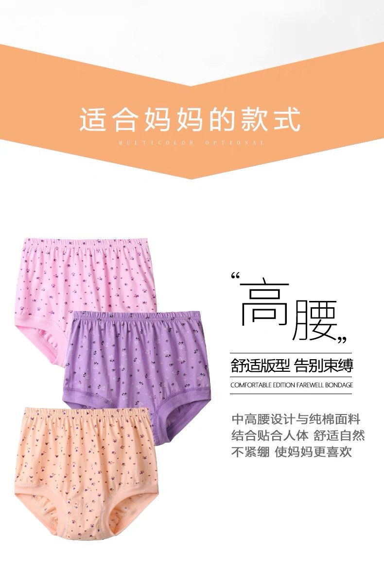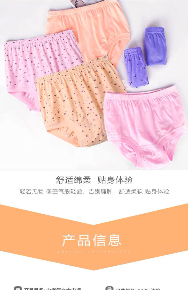 100% Pure Cotton Underwear for Middle-Aged and Elderly Women, Loose High-Waisted Triangle Shorts, Extra Large Size for Grandma