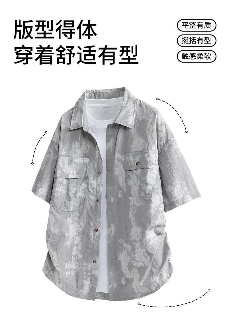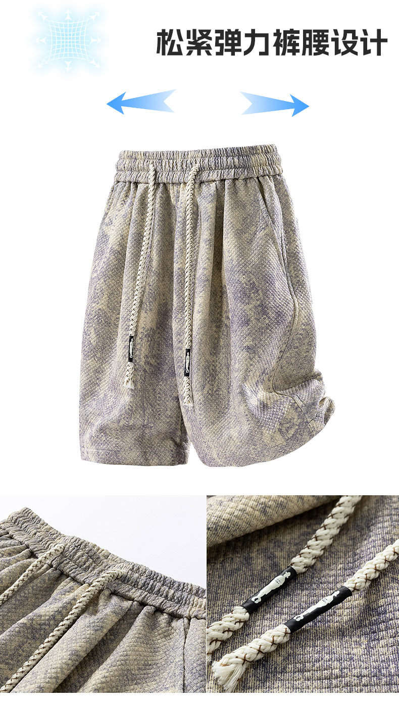 Wassup Line Trendy Brand Set Men's American-Style Short-Sleeve Shirt and Shorts Men's Tie-Dye Summer Shirt Beach Shorts