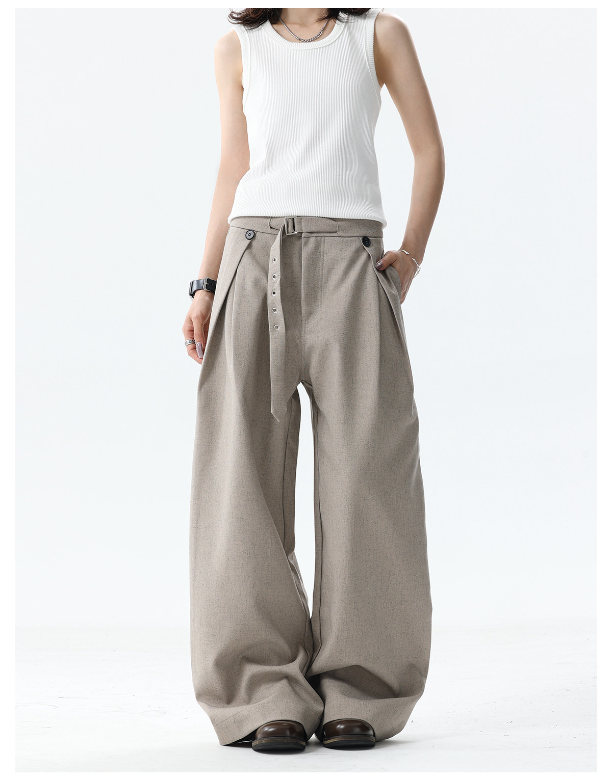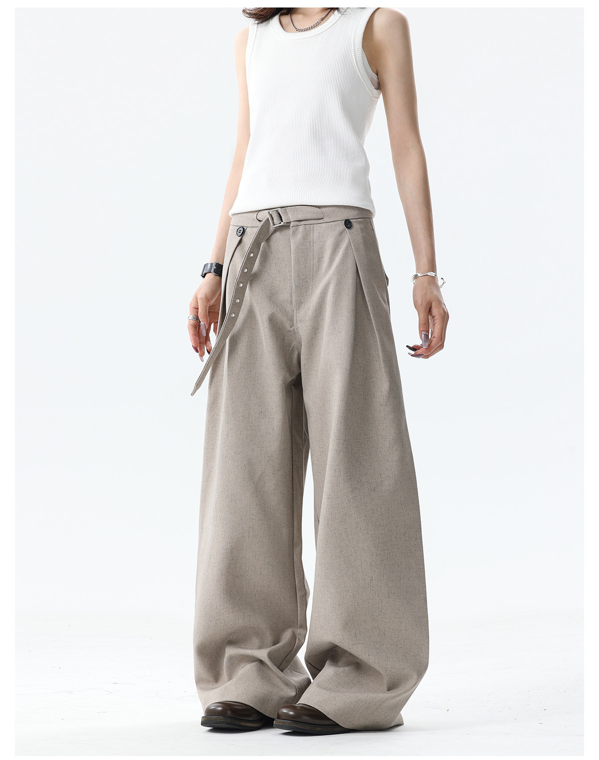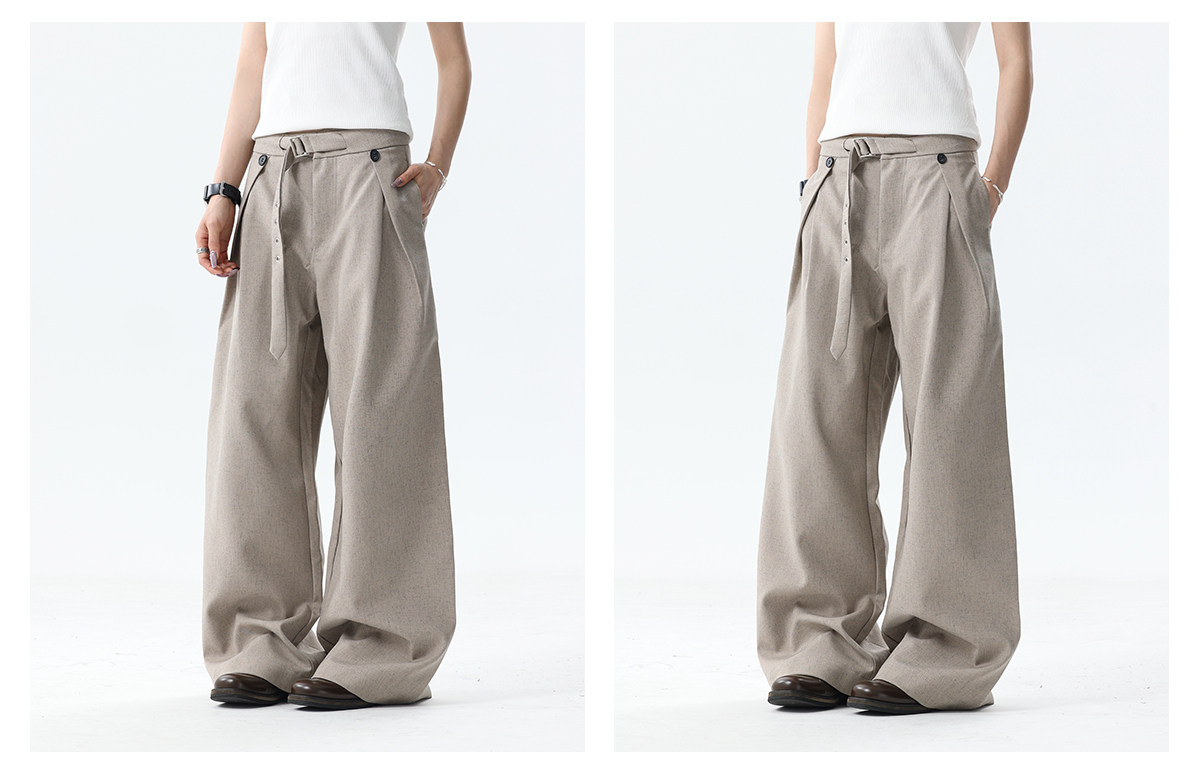 Bflc Old Money Style Linen Texture Pleated Lightweight Breathable Summer A-Line Wide-Leg Casual Trousers