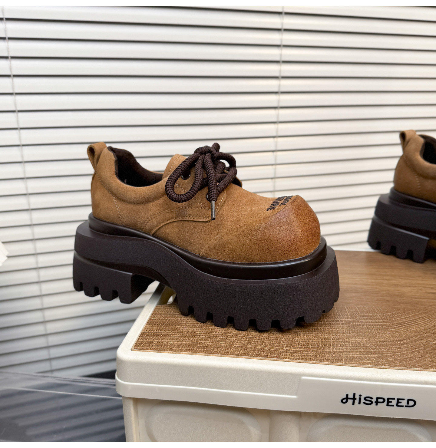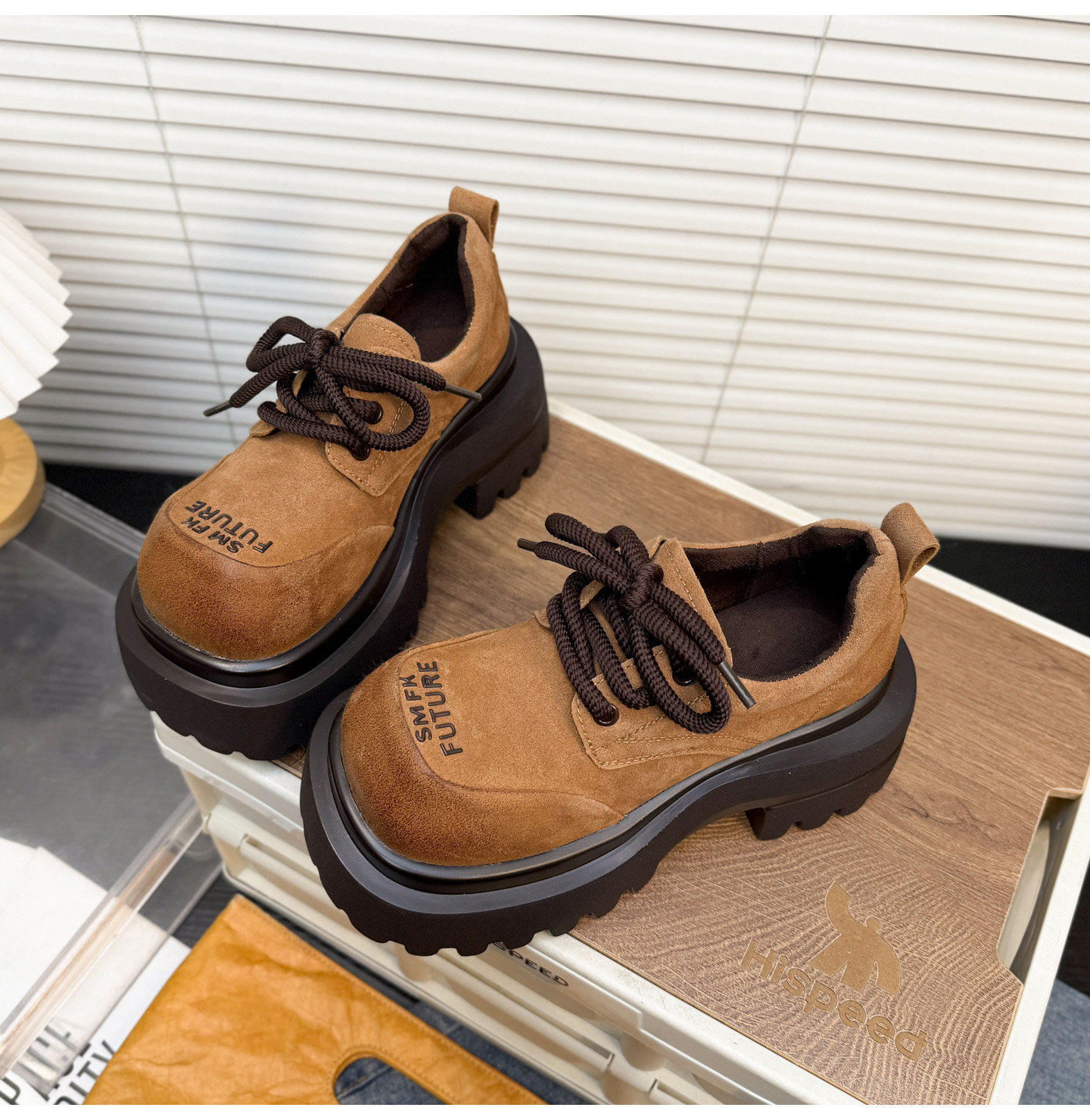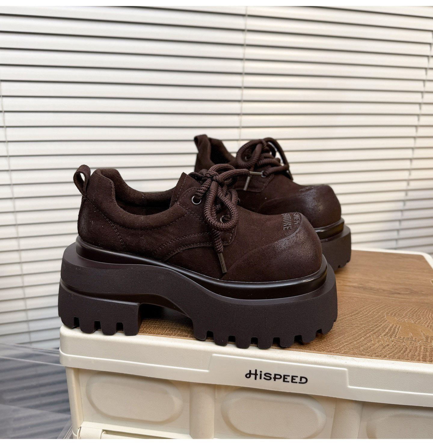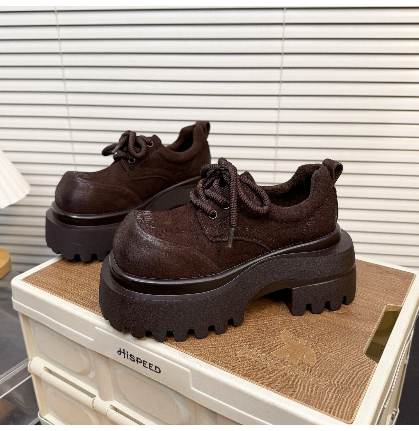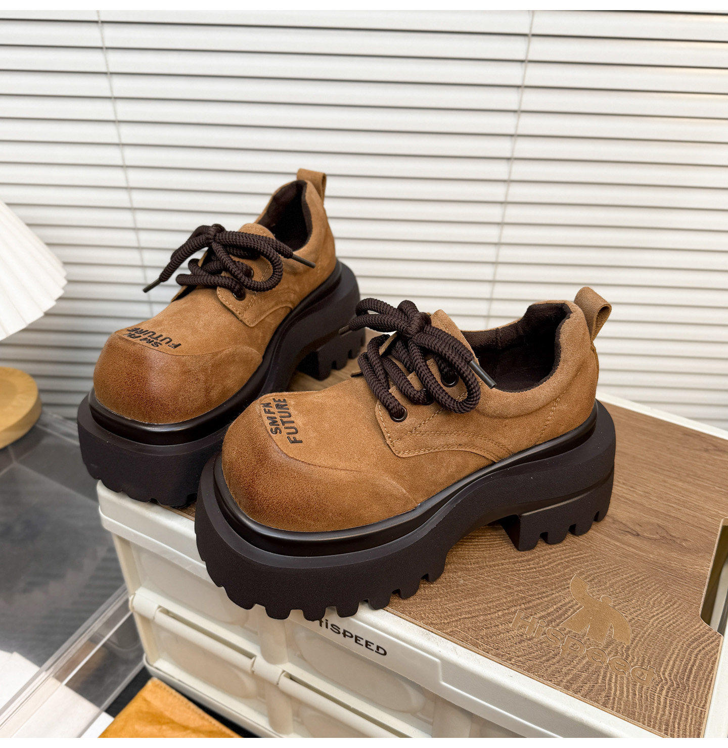 Hong Kong Matte Genuine Leather Large-Toe Small Leather Shoes for Women 2026 Spring and Autumn New Versatile Lace-Up Thick-Soled Height-Increasing Loafers