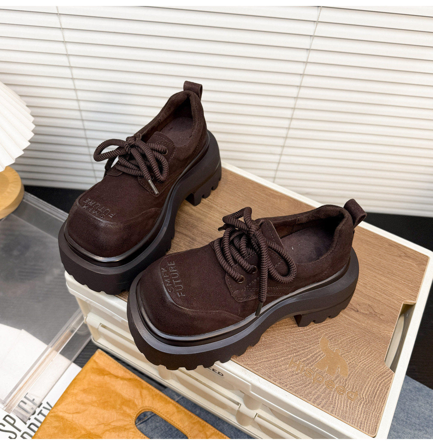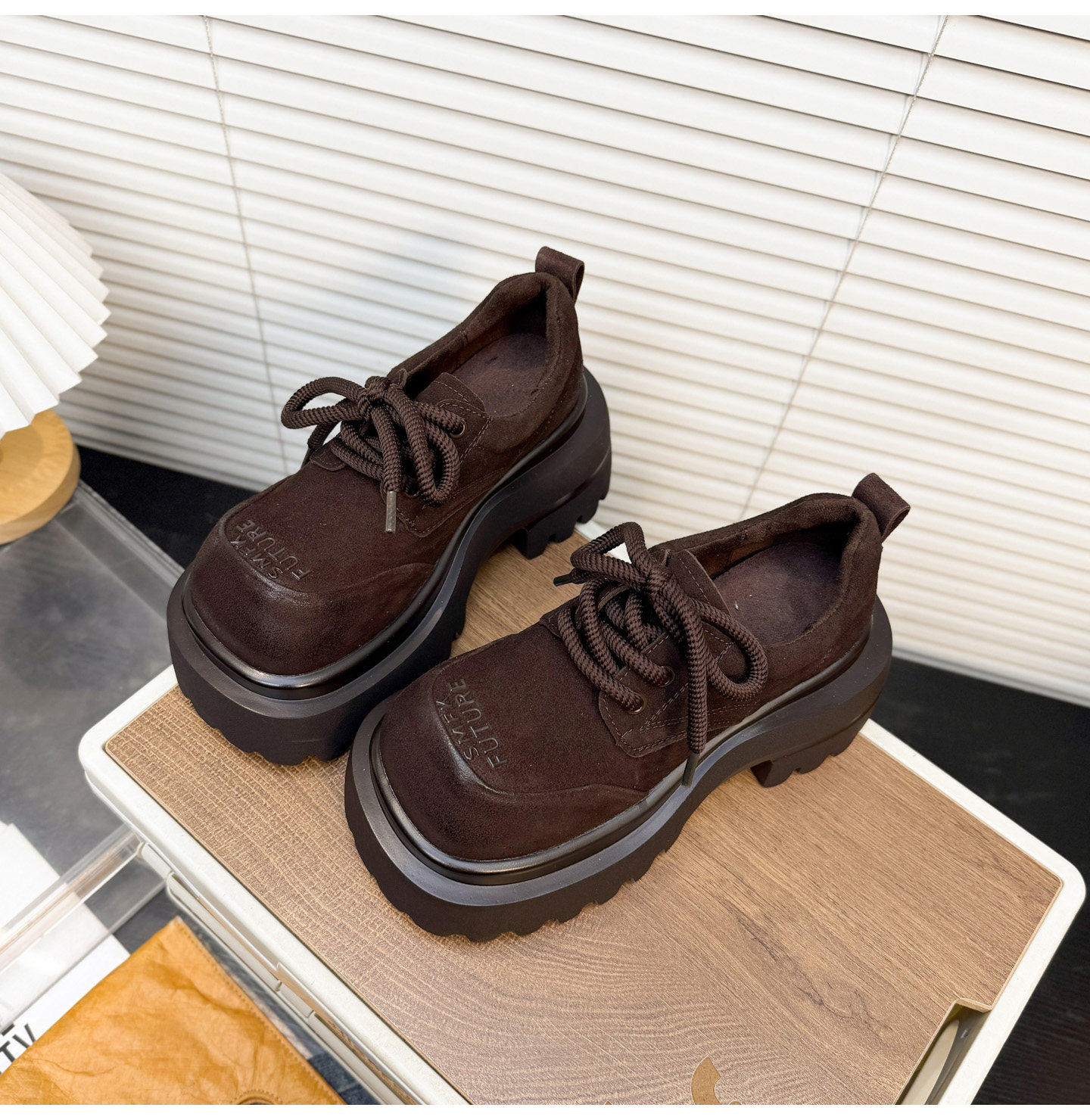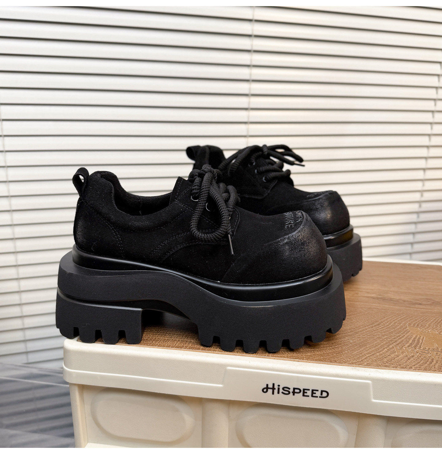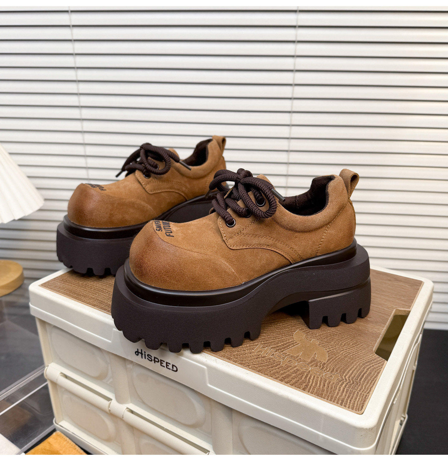 Hong Kong Matte Genuine Leather Large-Toe Small Leather Shoes for Women 2026 Spring and Autumn New Versatile Lace-Up Thick-Soled Height-Increasing Loafers