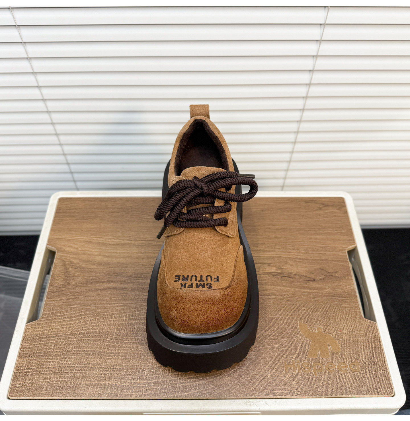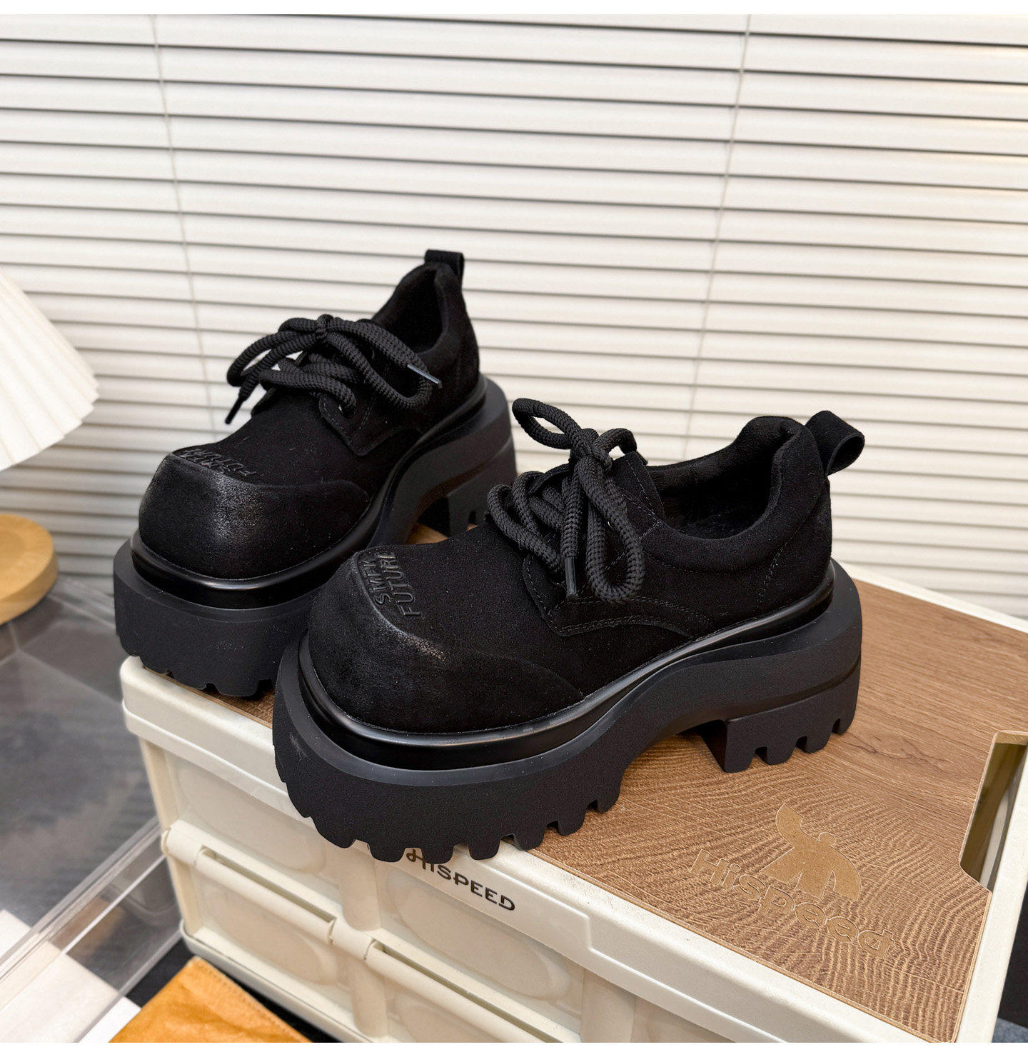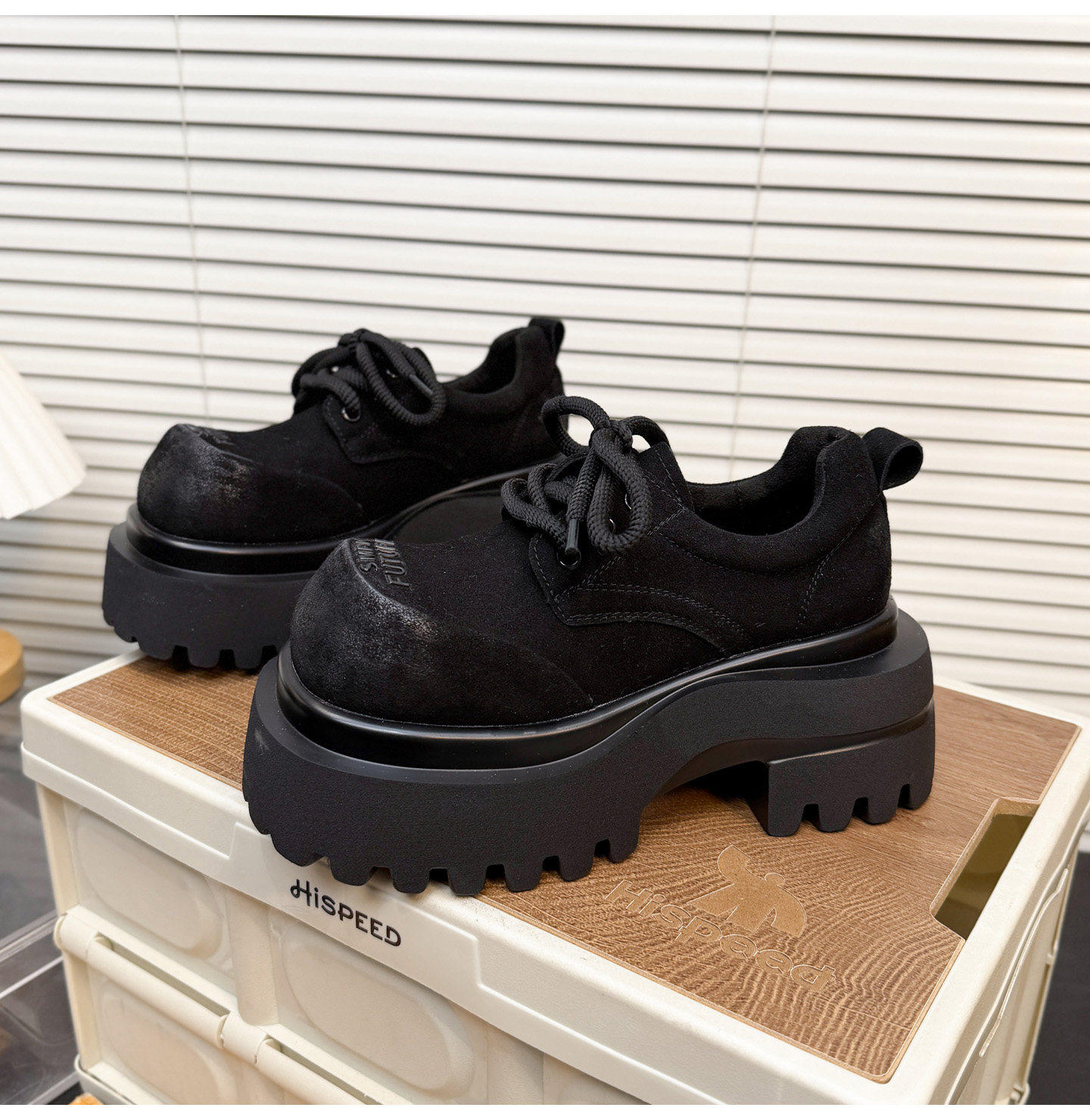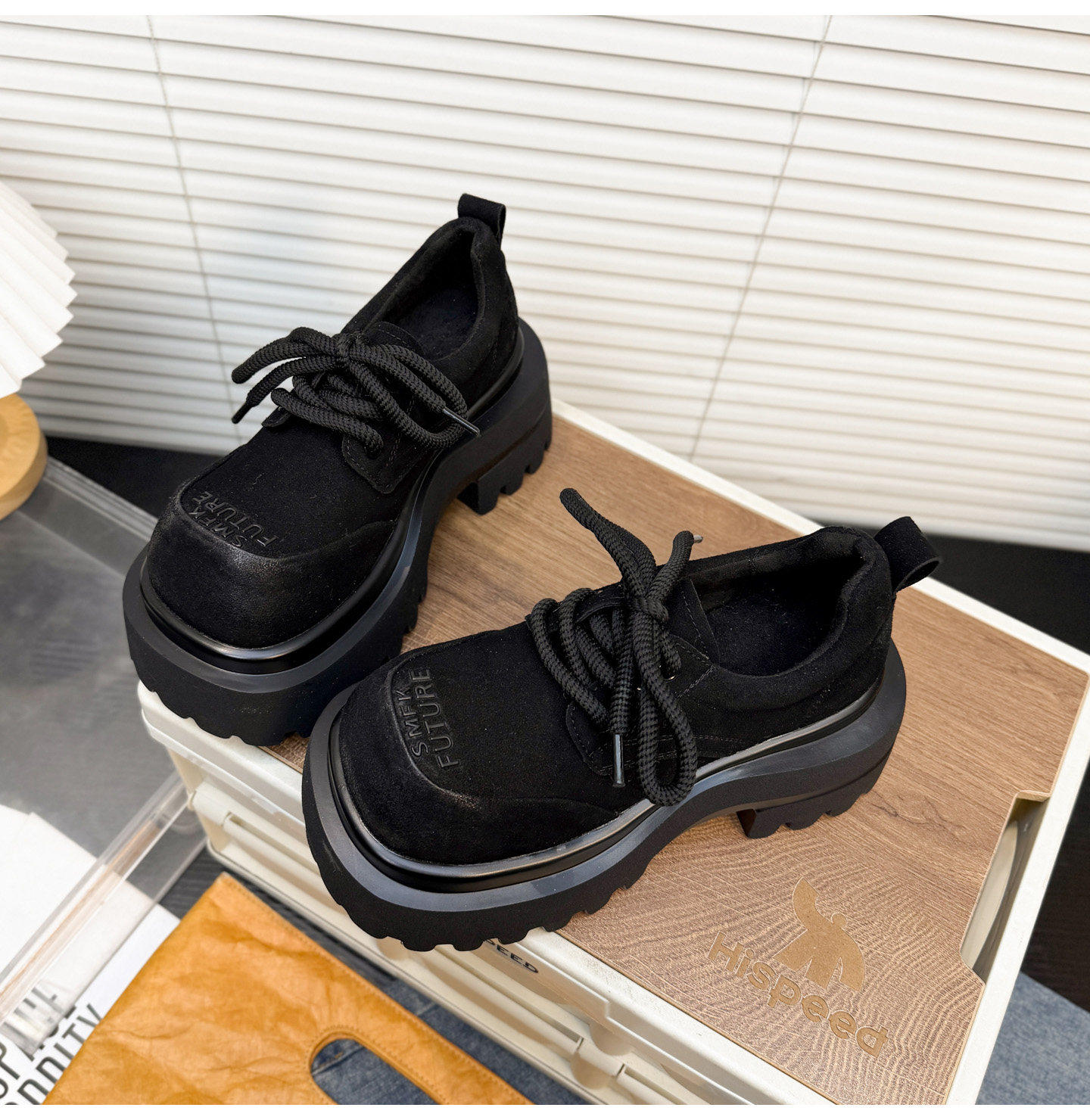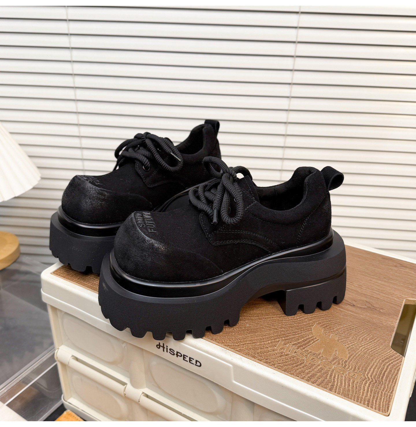 Hong Kong Matte Genuine Leather Large-Toe Small Leather Shoes for Women 2026 Spring and Autumn New Versatile Lace-Up Thick-Soled Height-Increasing Loafers