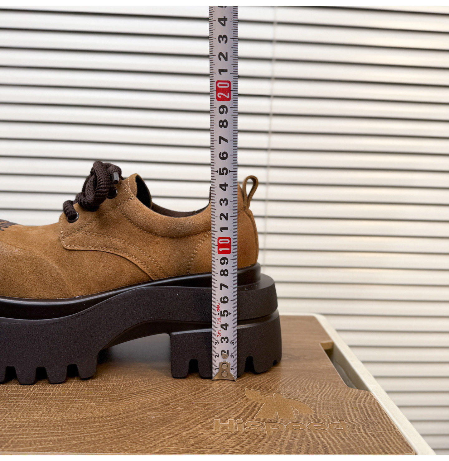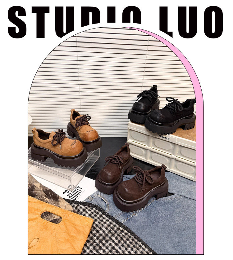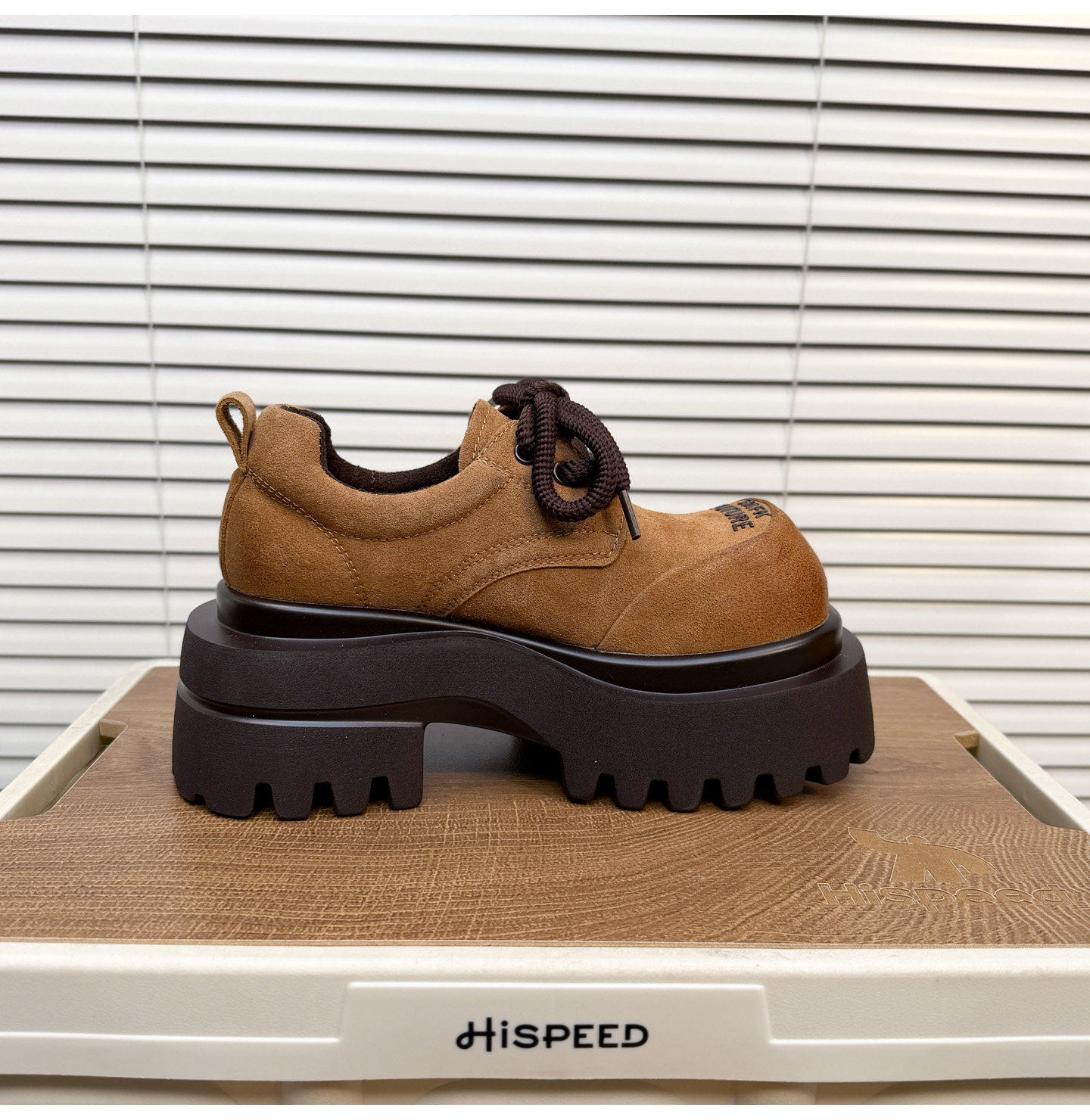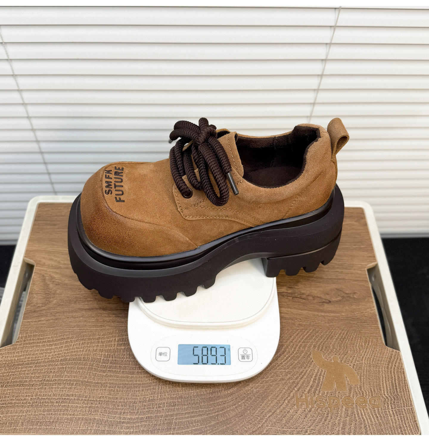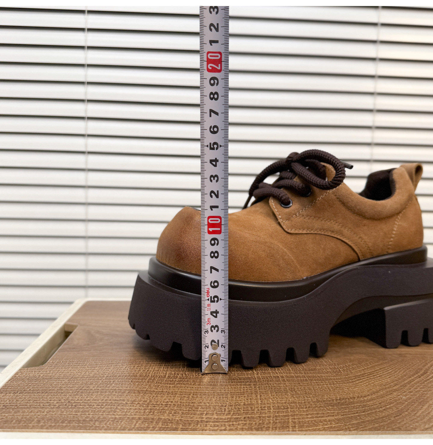 Hong Kong Matte Genuine Leather Large-Toe Small Leather Shoes for Women 2026 Spring and Autumn New Versatile Lace-Up Thick-Soled Height-Increasing Loafers