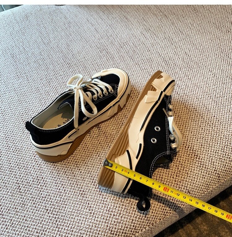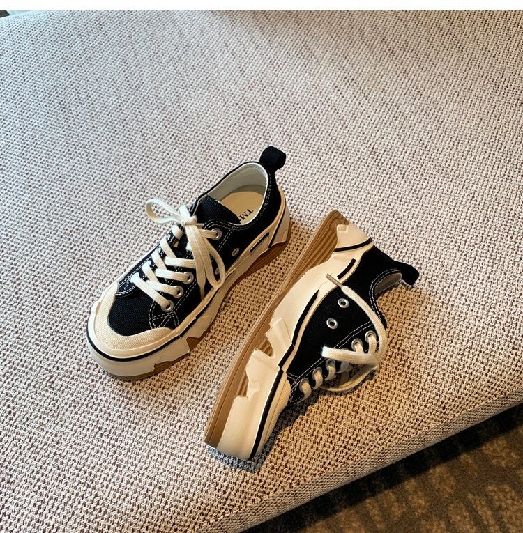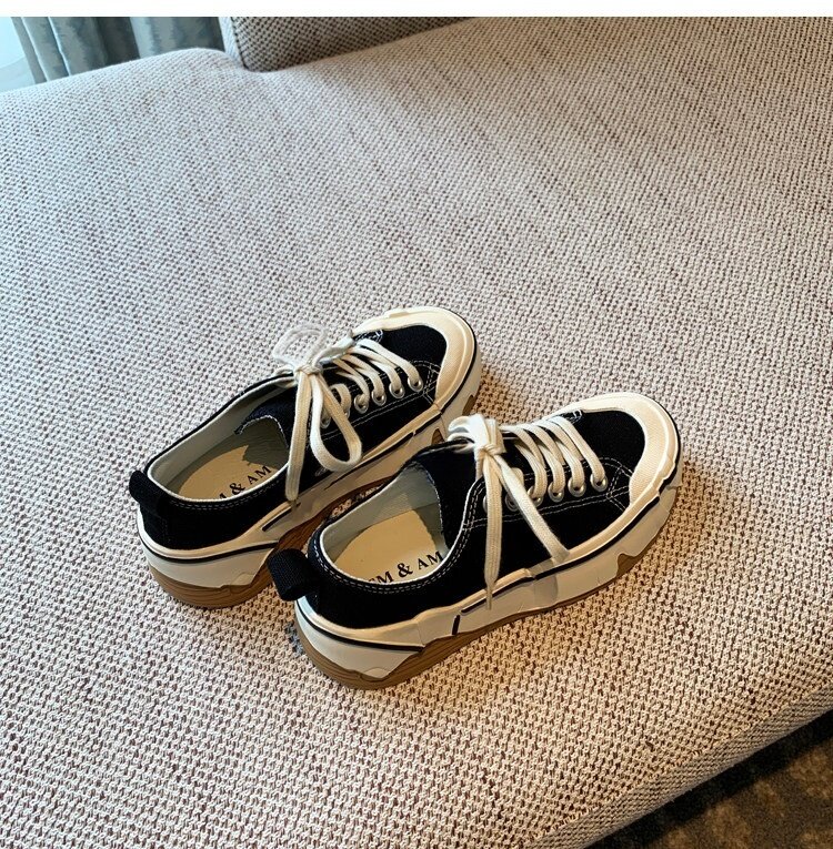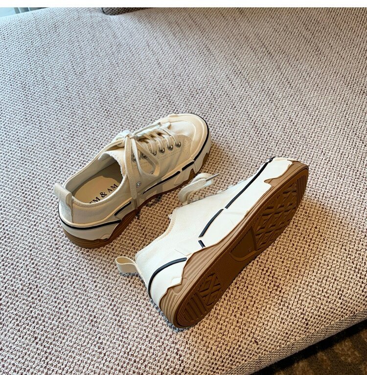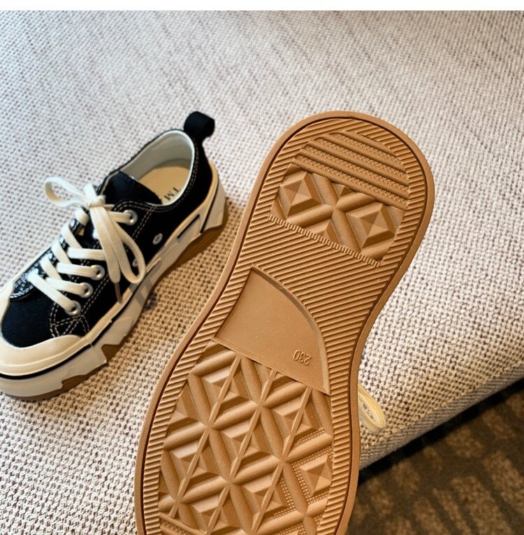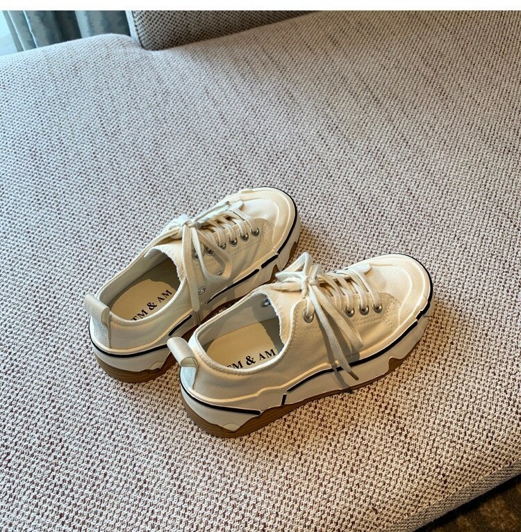 Hong Kong Canvas Shoes for Women 2026 Spring and Autumn New Fashion Versatile Lace-Up Sports Casual Shoes Thick-Soled Low-Top Sneakers