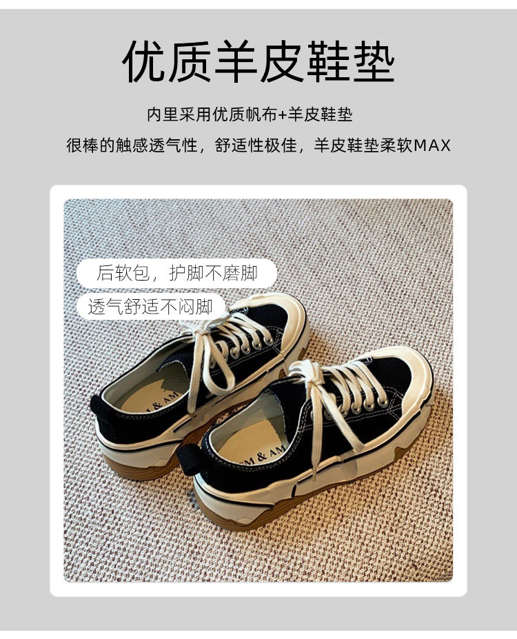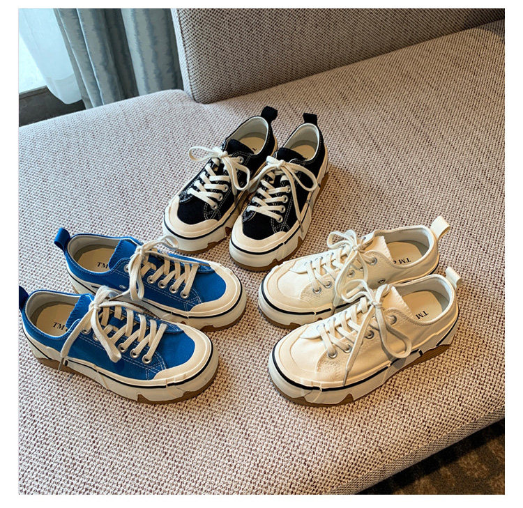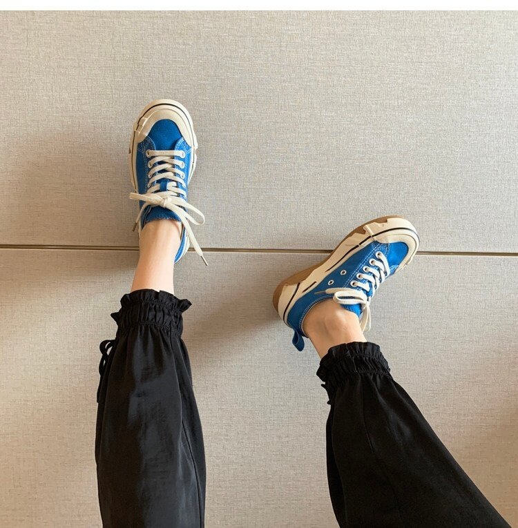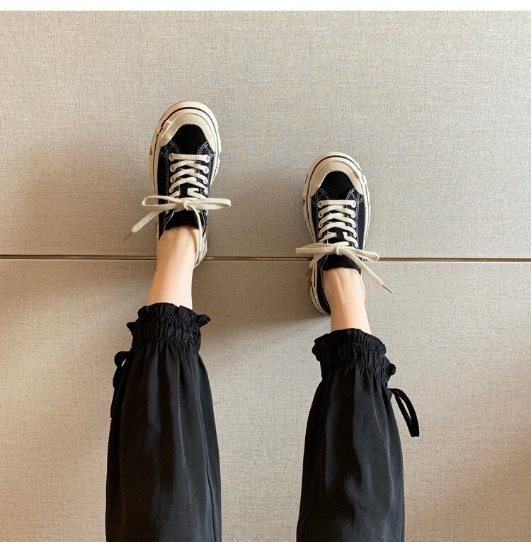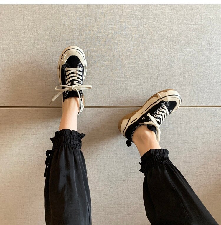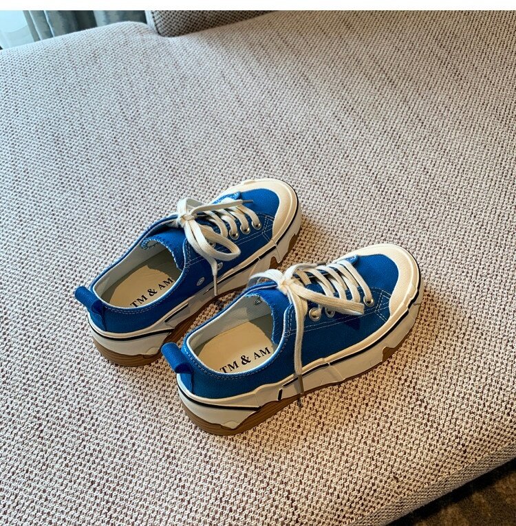 Hong Kong Canvas Shoes for Women 2026 Spring and Autumn New Fashion Versatile Lace-Up Sports Casual Shoes Thick-Soled Low-Top Sneakers