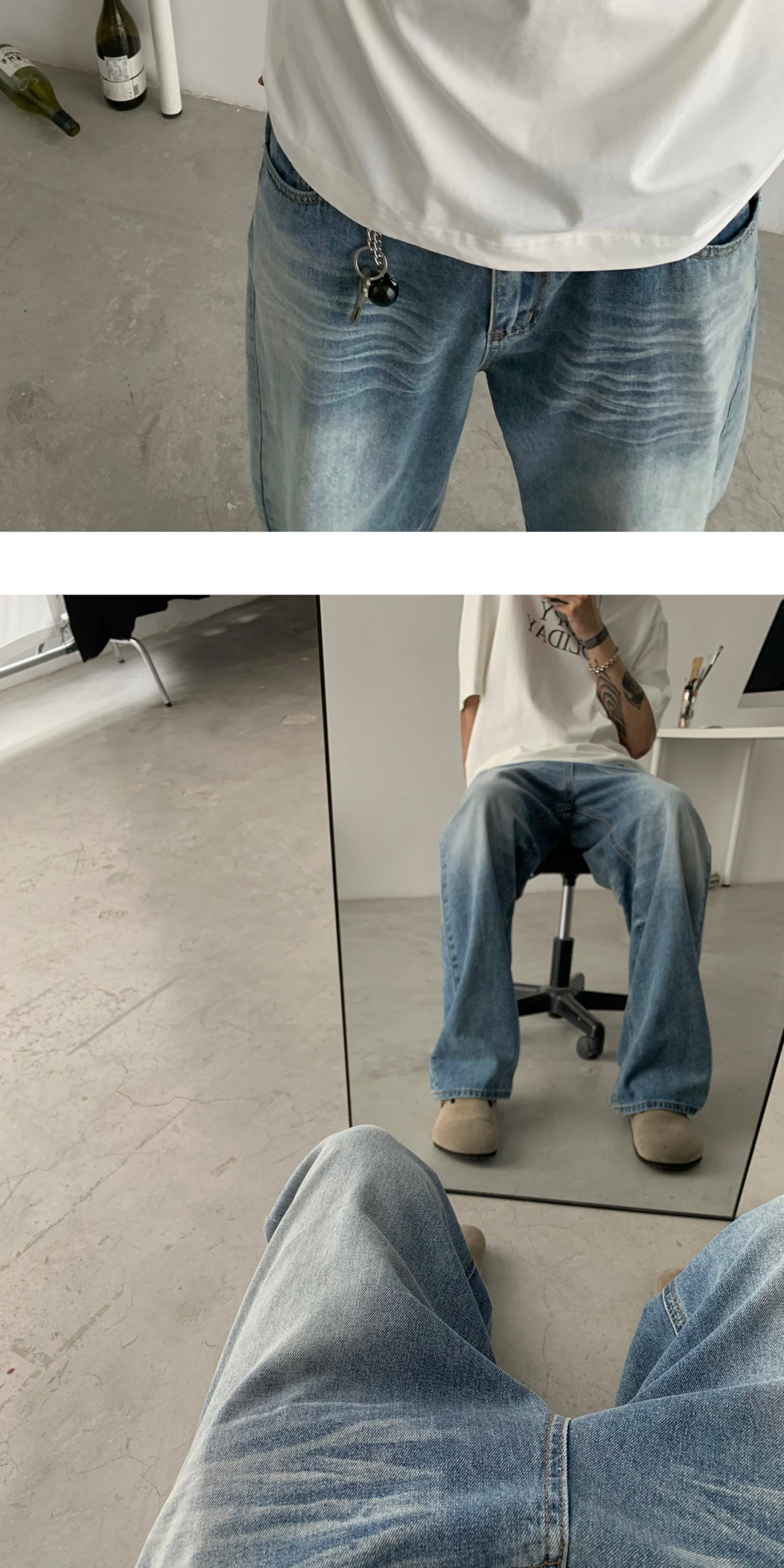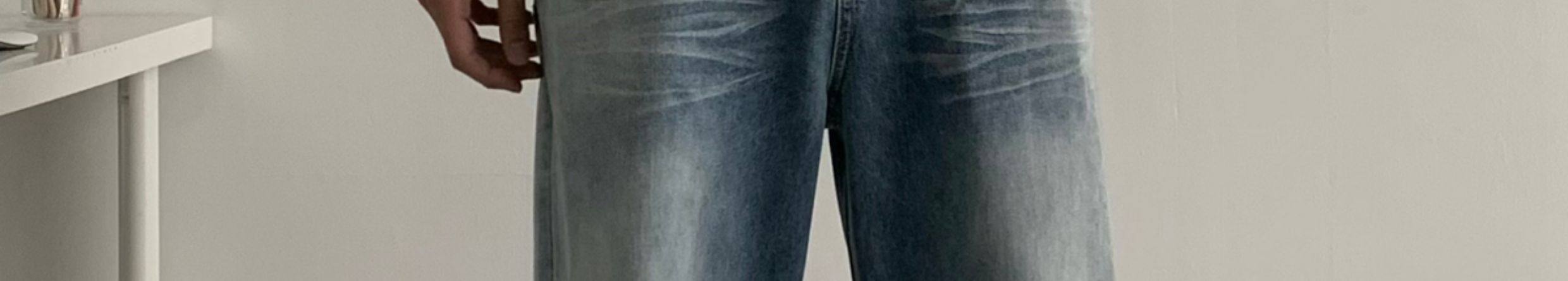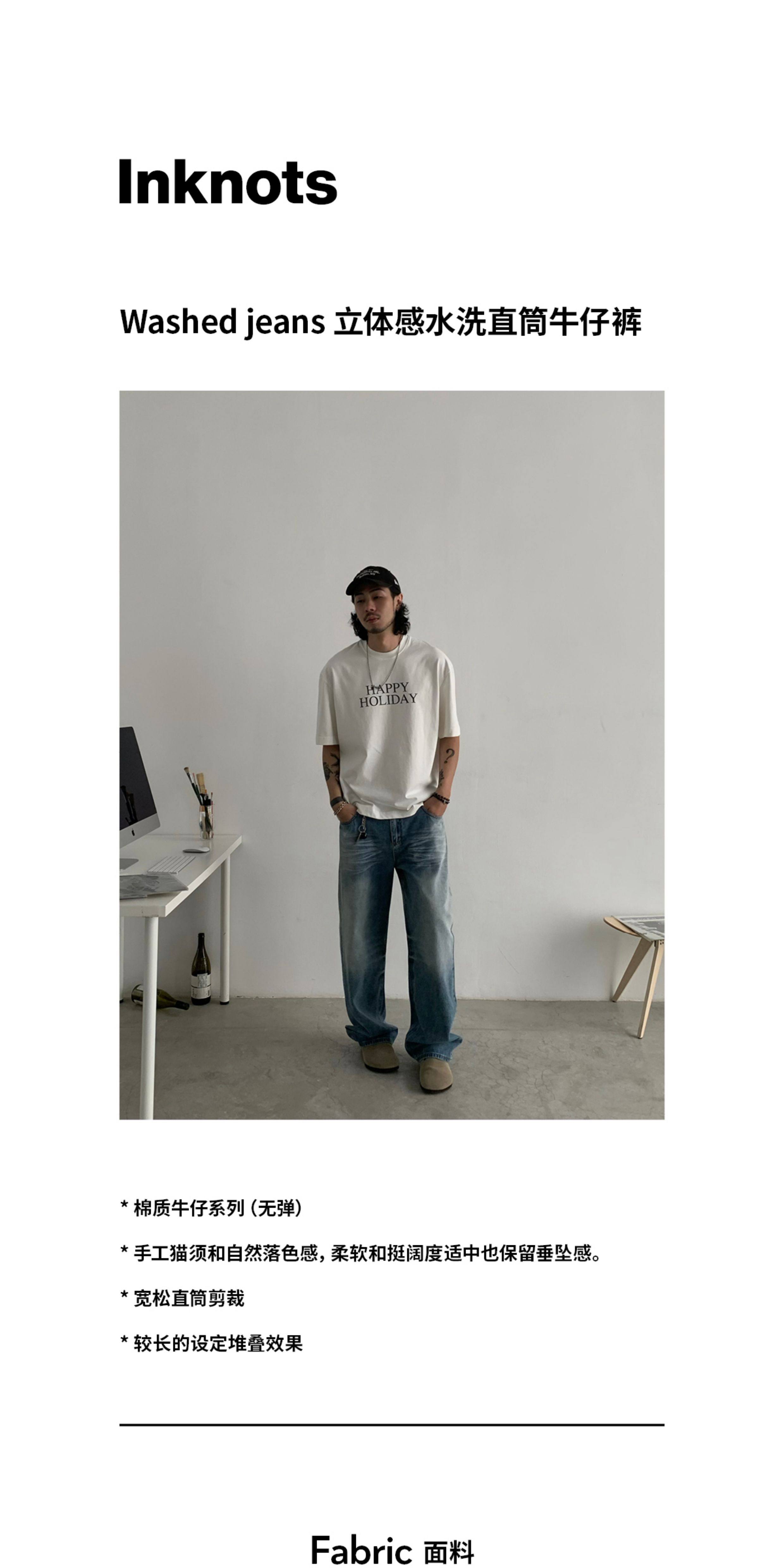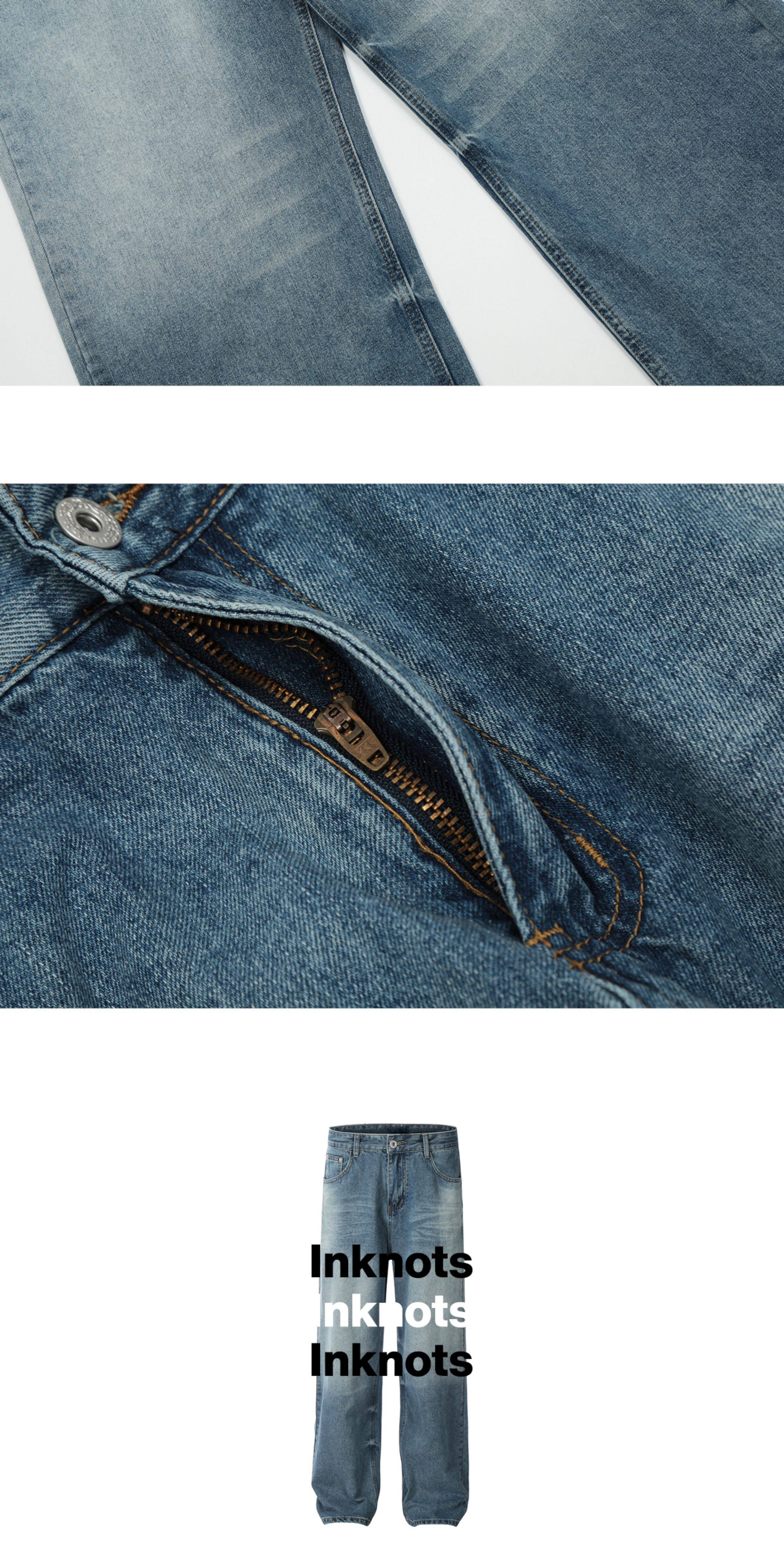 Inknots American Retro Washed Clean Fit Straight-Leg Jeans Unisex Trendy Loose Casual Pants